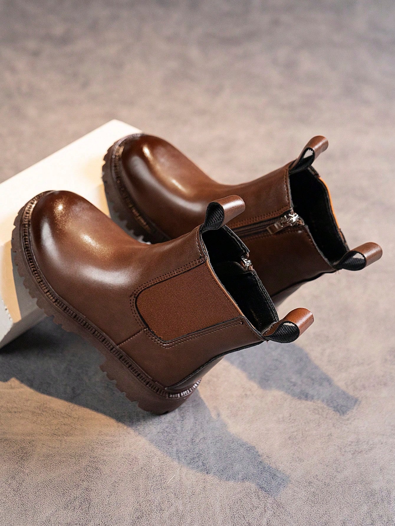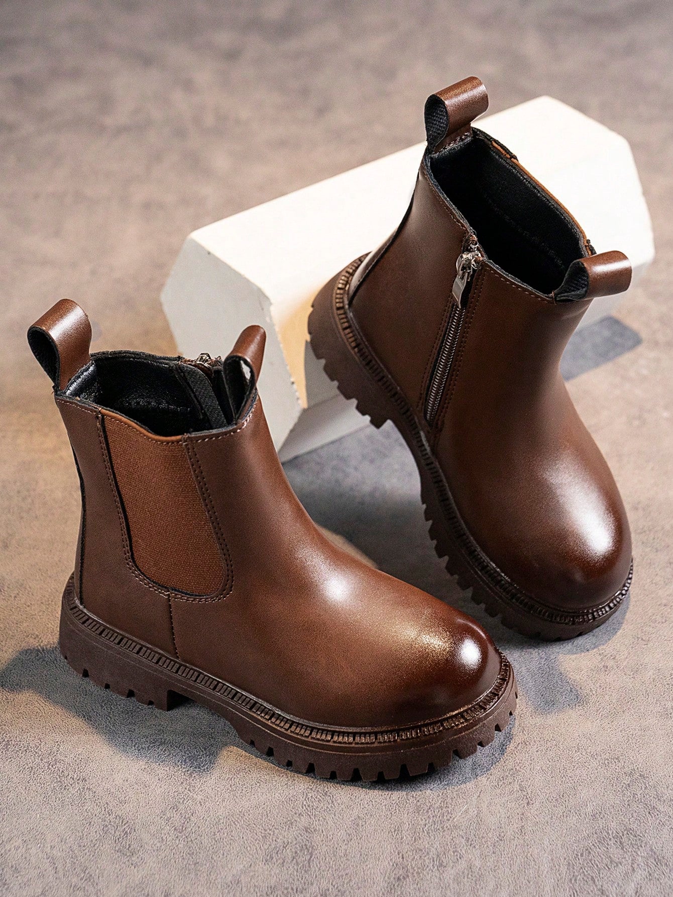 1pair Kids' Pu Leather Patchwork Flat Ankle Boots With Anti-slip & Wear-resistant Sole For Spring And