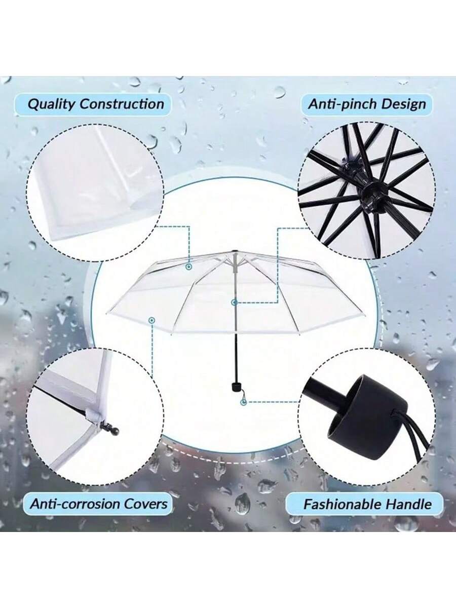 1pc 8-Rib Reinforced PVC Transparent Folding Umbrella