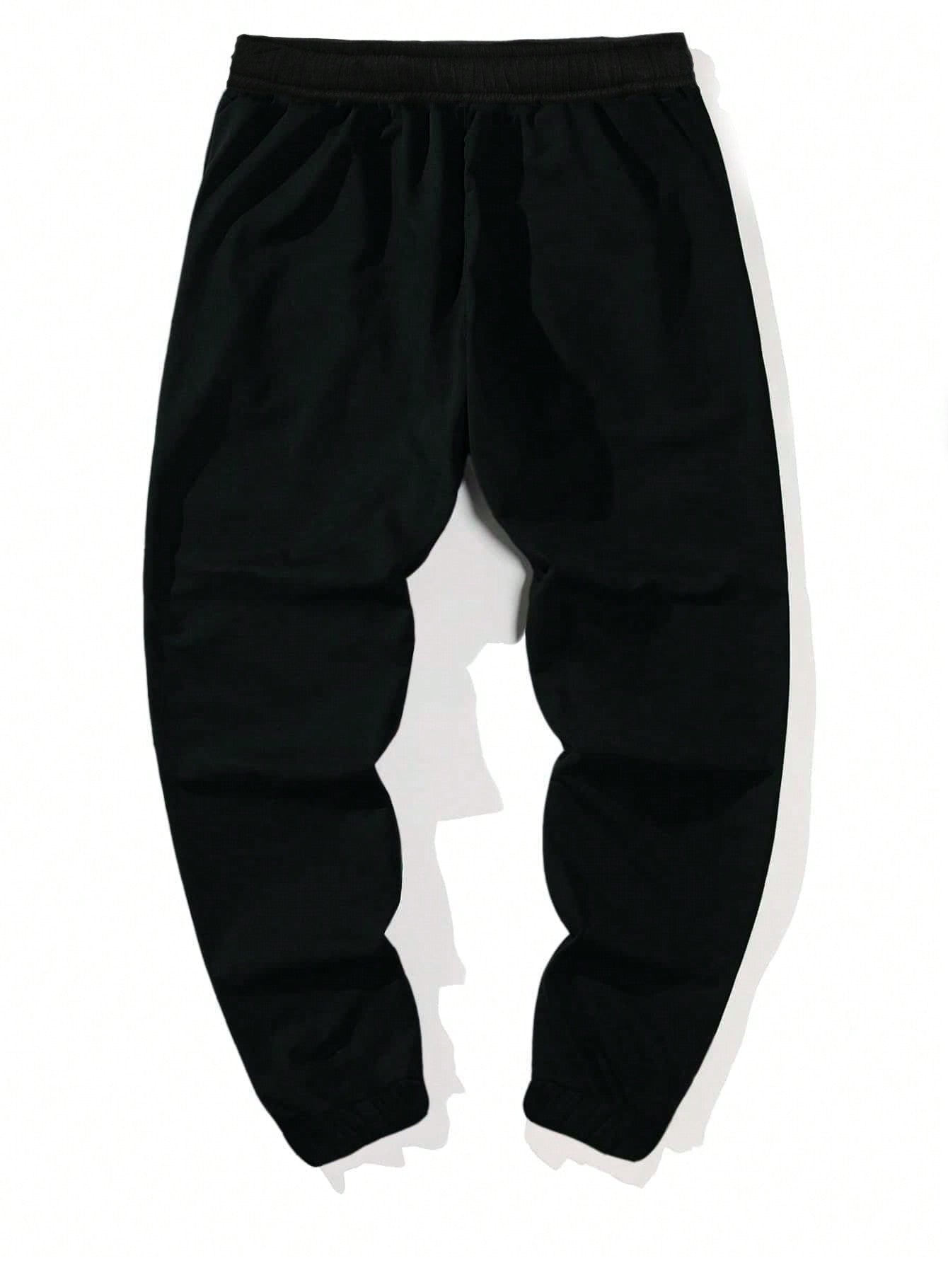 1pc Boys & Teens Loose Casual Versatile Solid Color Letter Print Decorative Fleece Jogger Pants