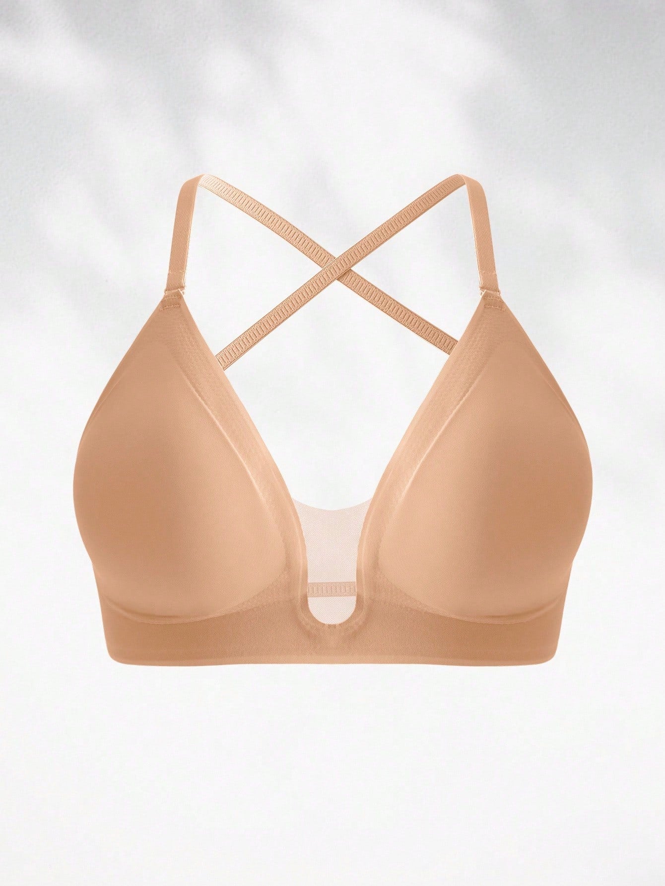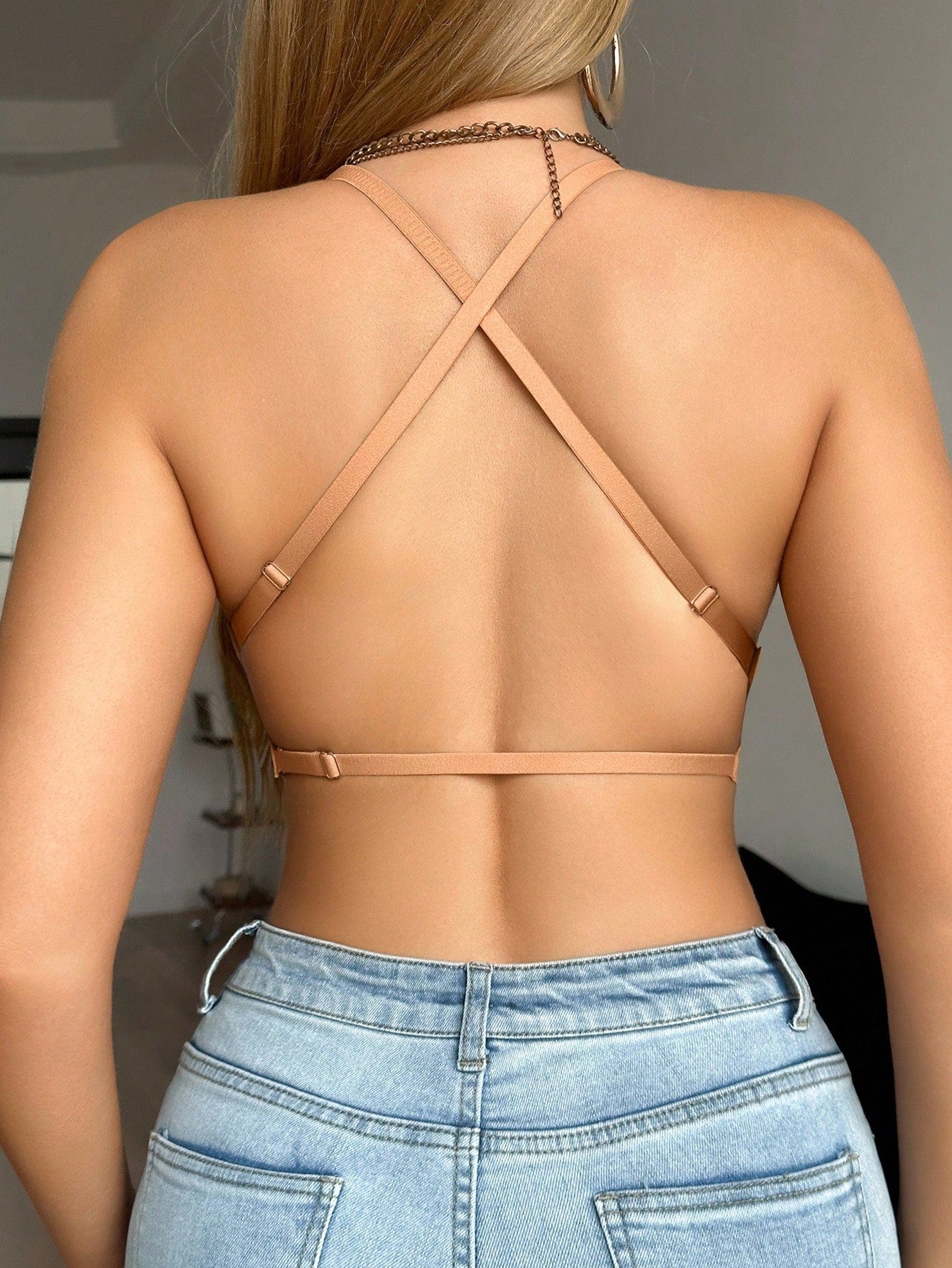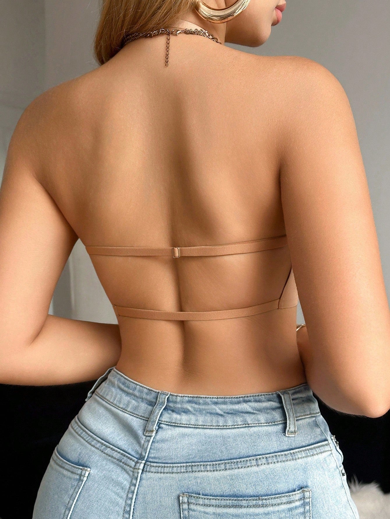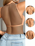 1pc Casual Minimalist Solid Color Deep V-Neck Thin Strap Backless Women Braآ Cozy And Elegant