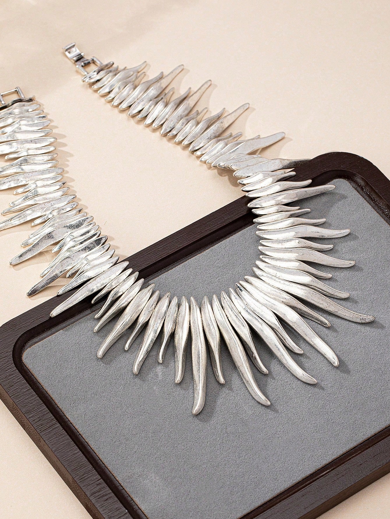 1pc European Retro Gothic Asymmetrical Geometric Metal Necklace