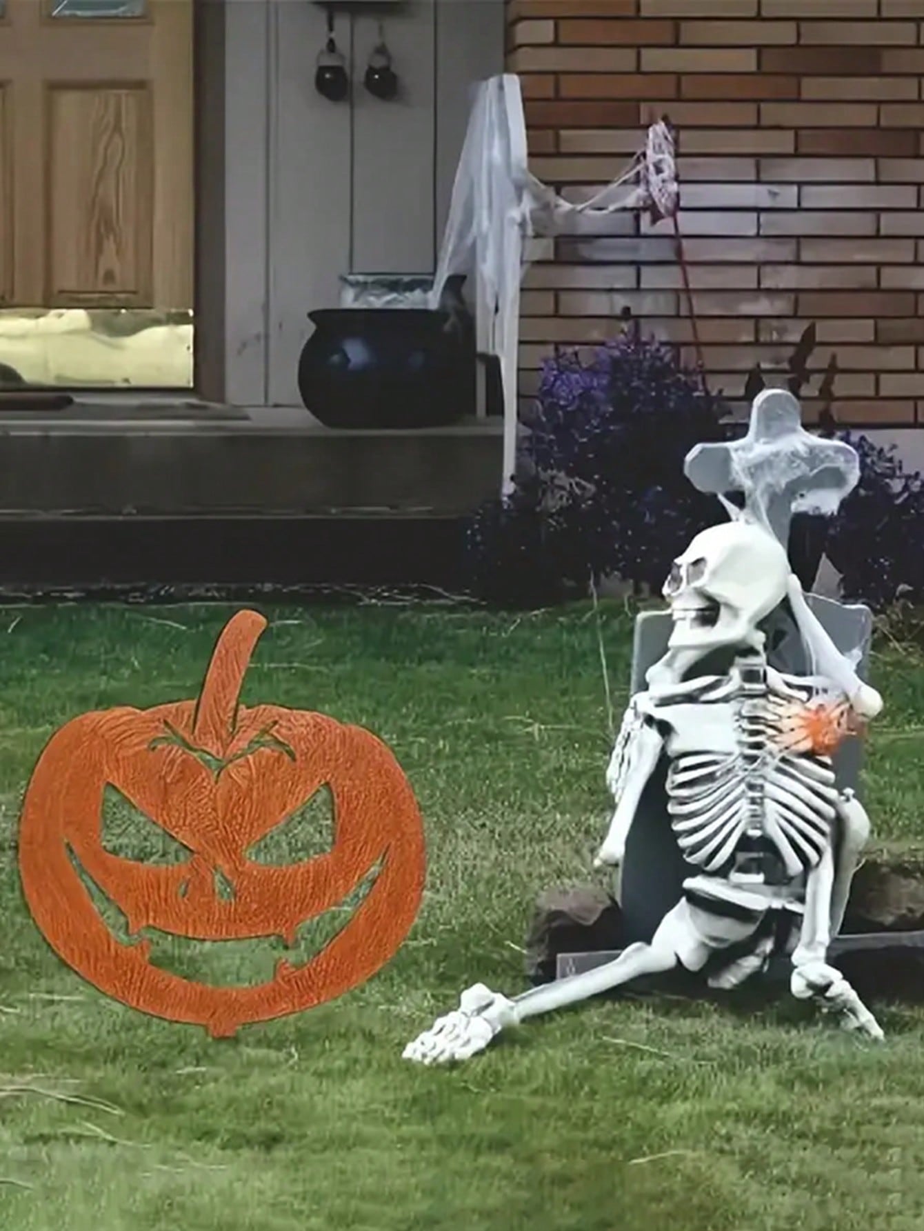 1pc Halloween Pumpkin Silhouette Wooden Garden Stake