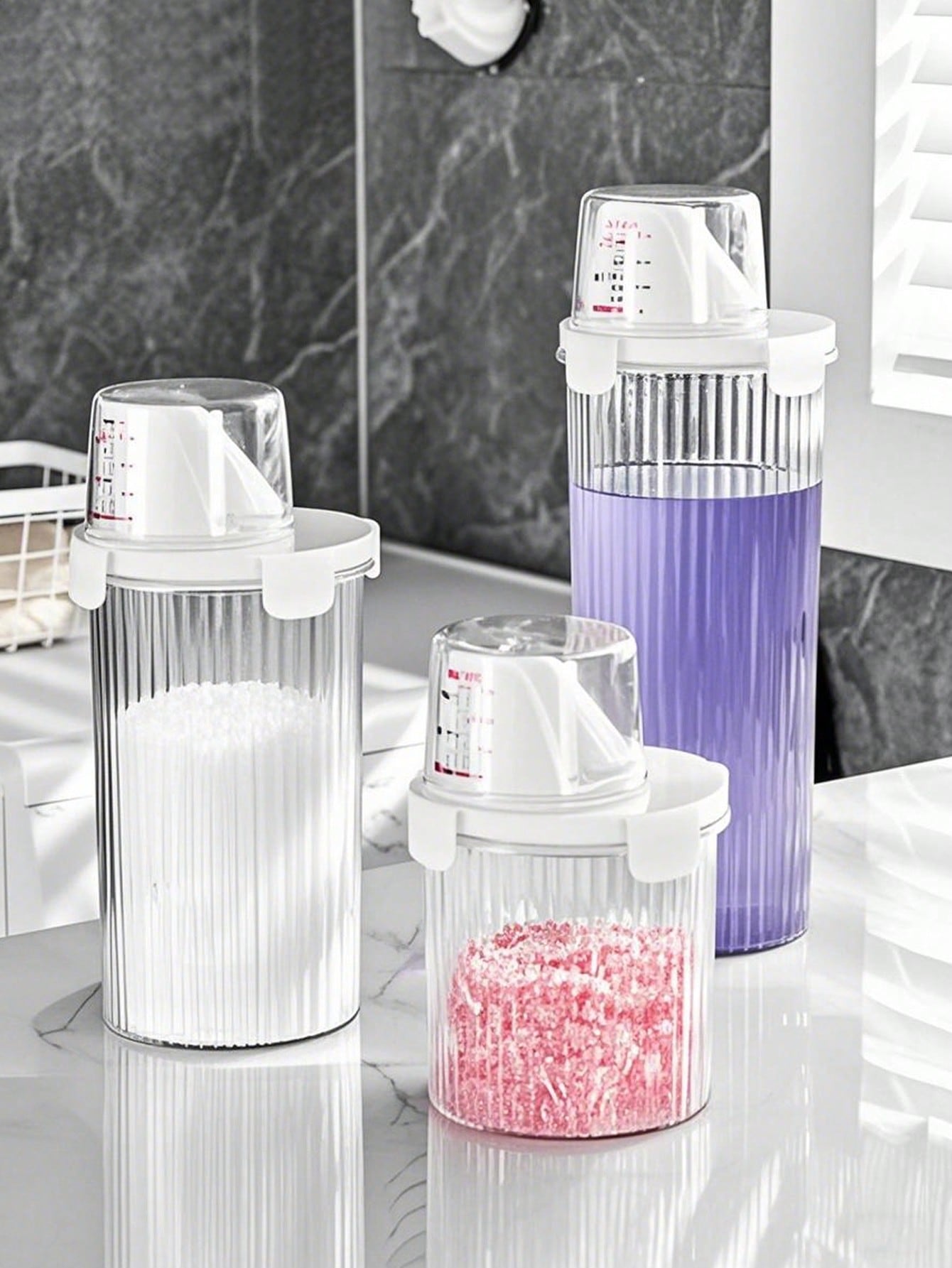1pc Heavy-Duty Laundry Detergent Storage Container With Measuring Cup - Airtight Leakproof Plastic Canister For Powder & Liquid Detergents | Dual Lock Moisture-Proof Lid