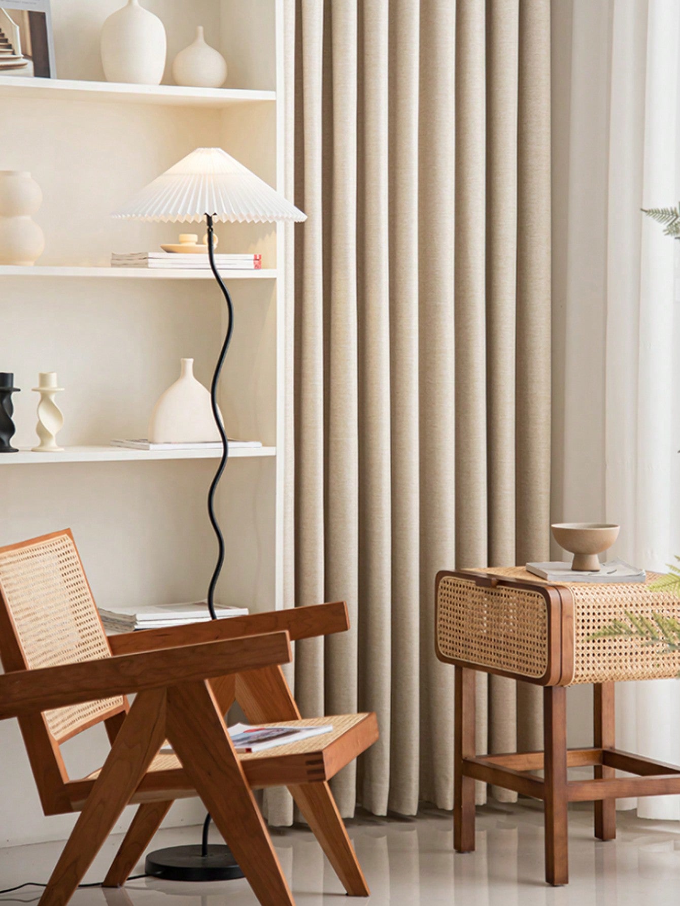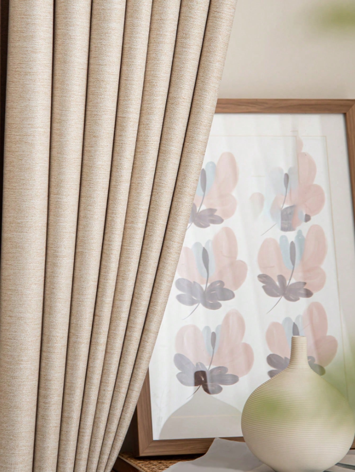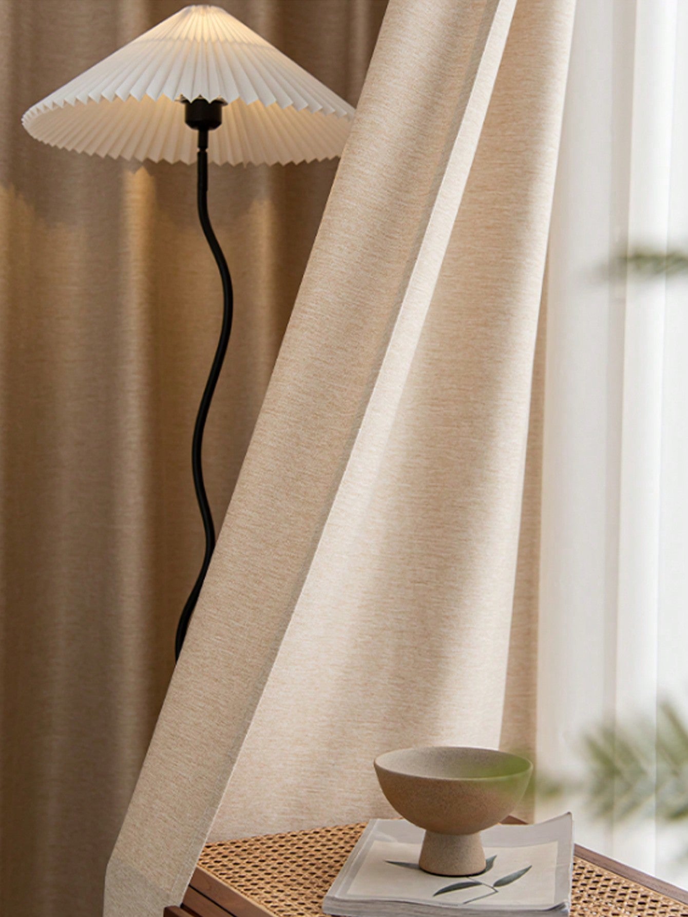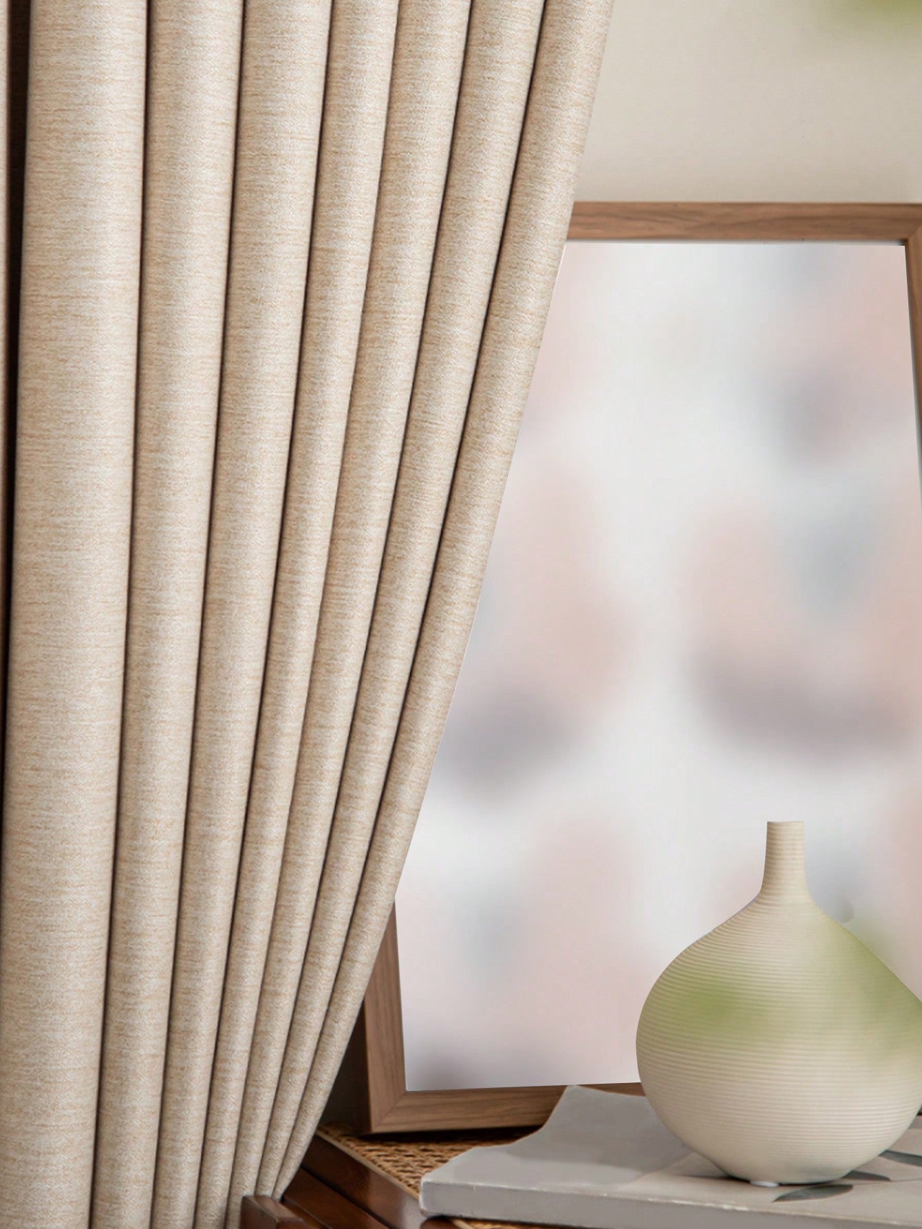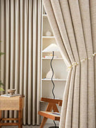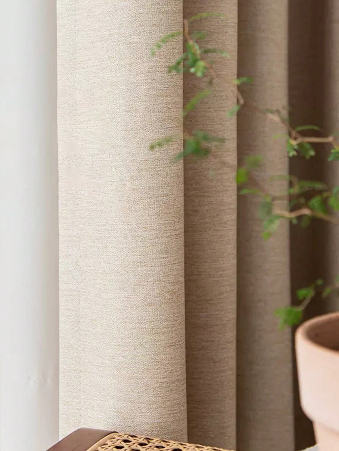 1pc Modern Simple Imitation Linen Curtain Solid Color Blackout Heat Insulation Curtain