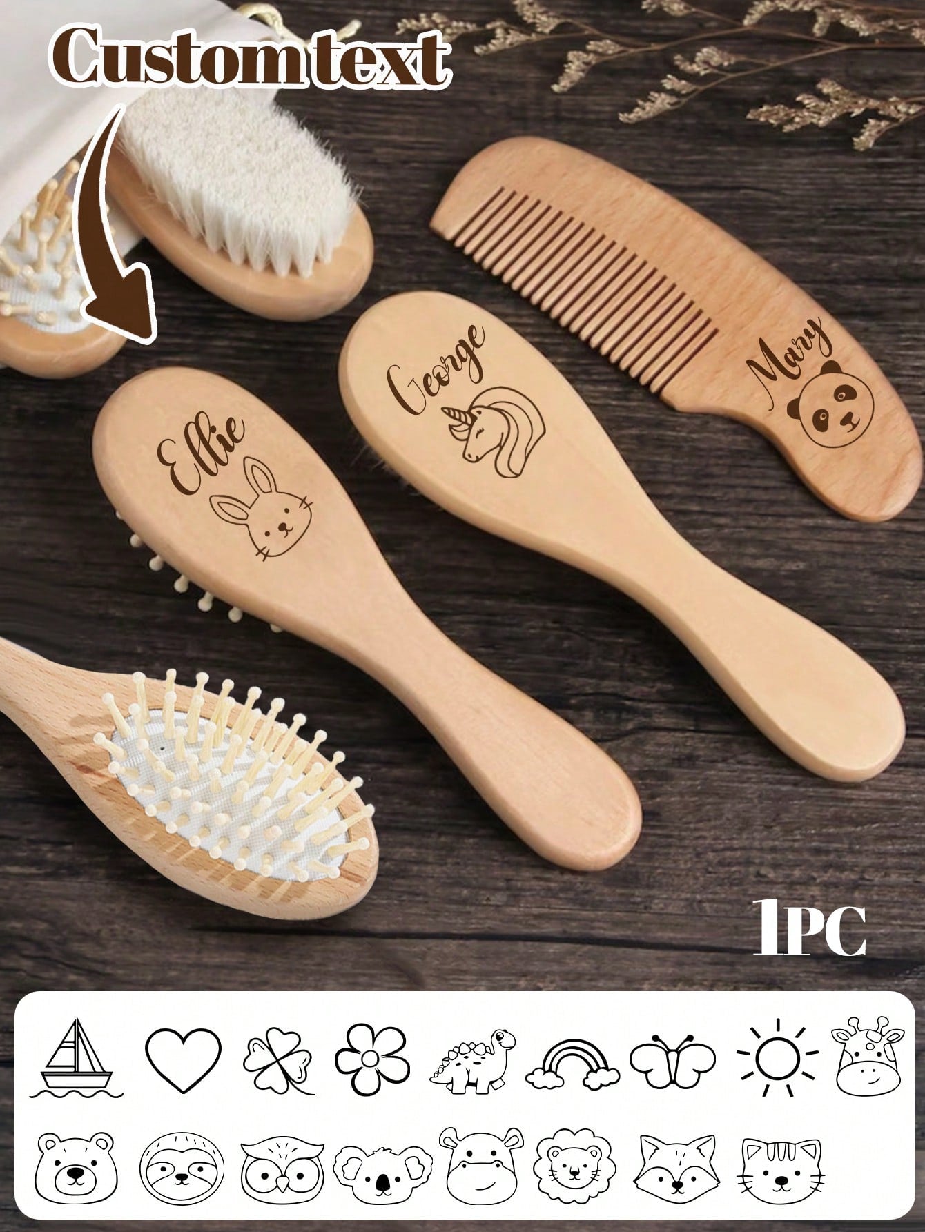 1pc Personalized Baby Brush And Comb Set - Custom Name Baby Hairbrush