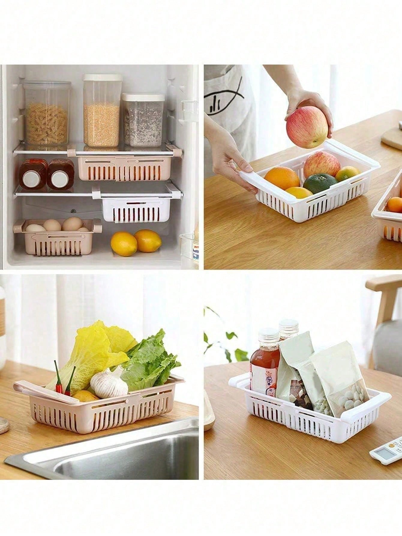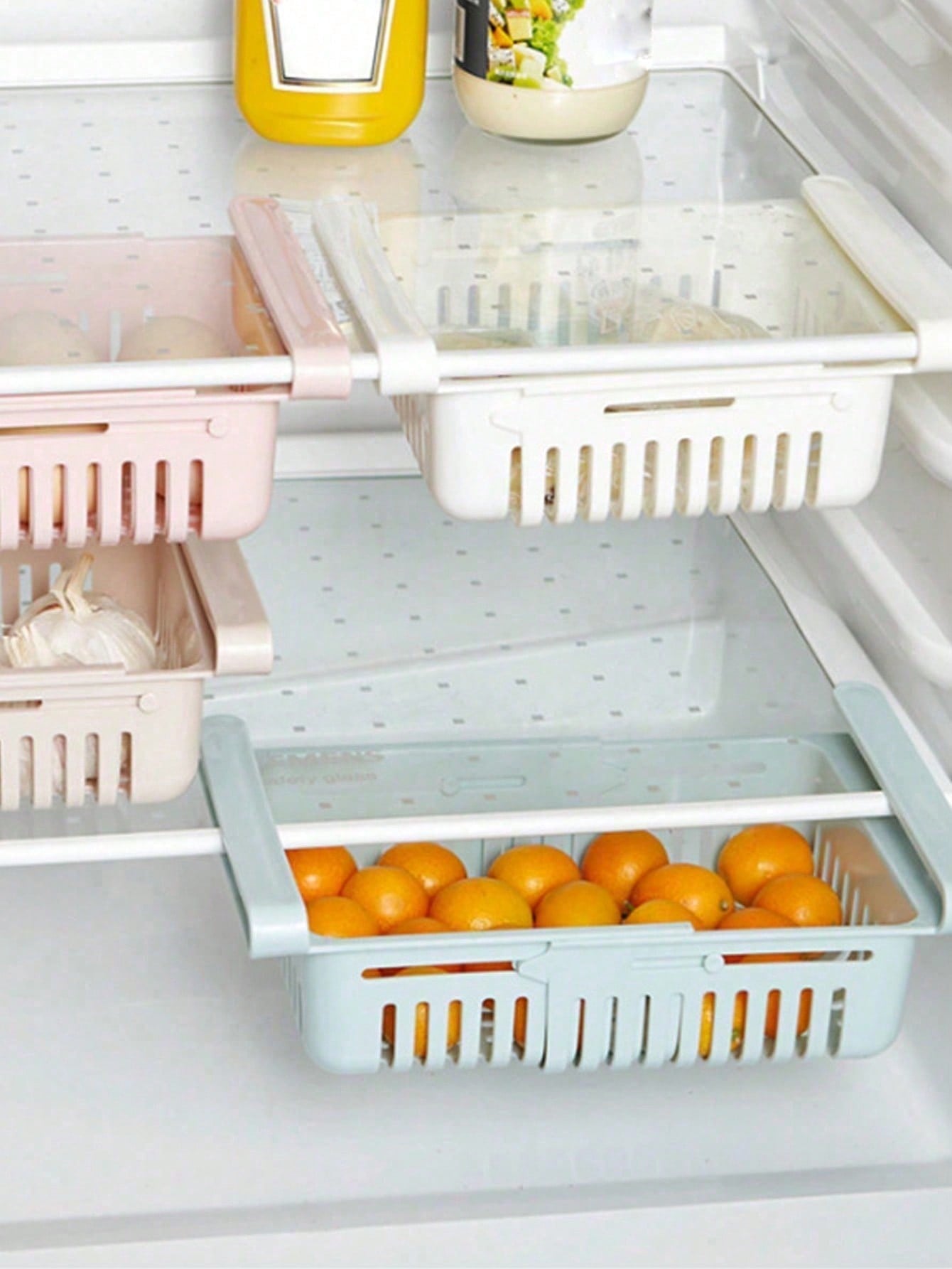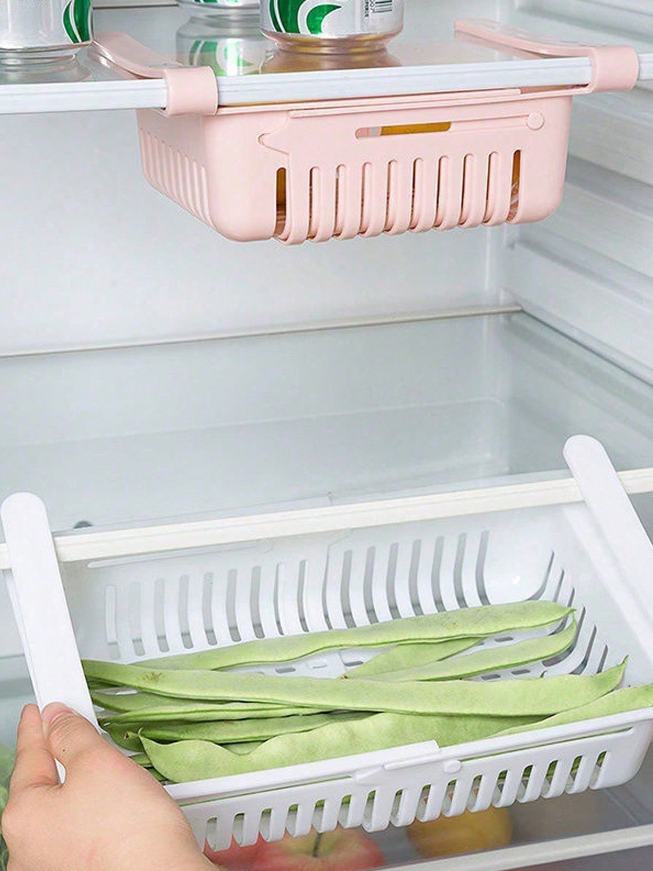 1pc Plastic Refrigerator Storage Basket - Retractable Drawer