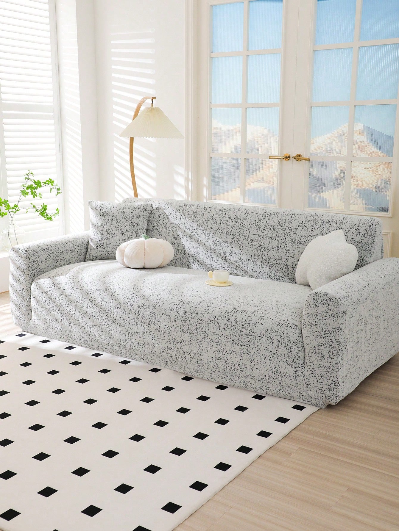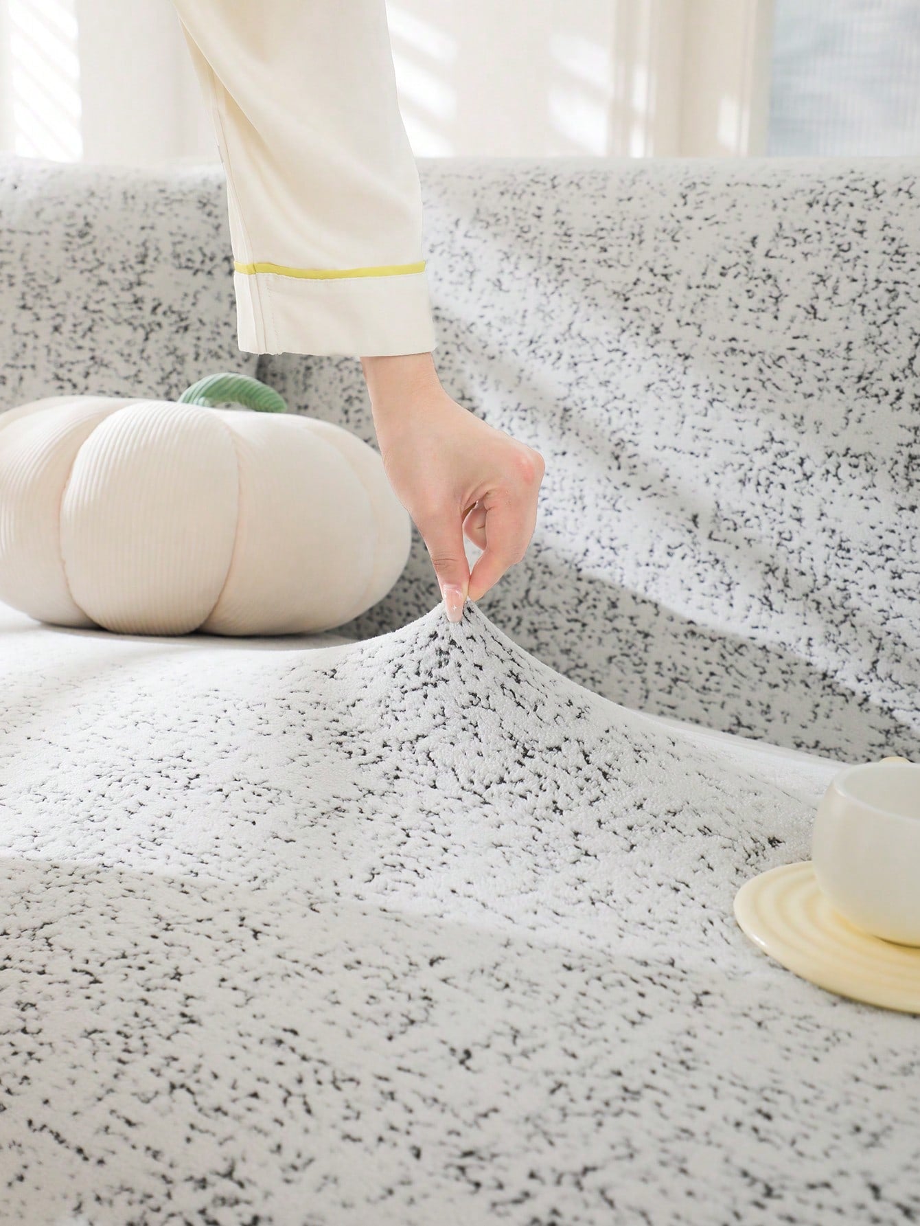 1pc Solid Color Bohemian Style Jacquard Sofa Cover