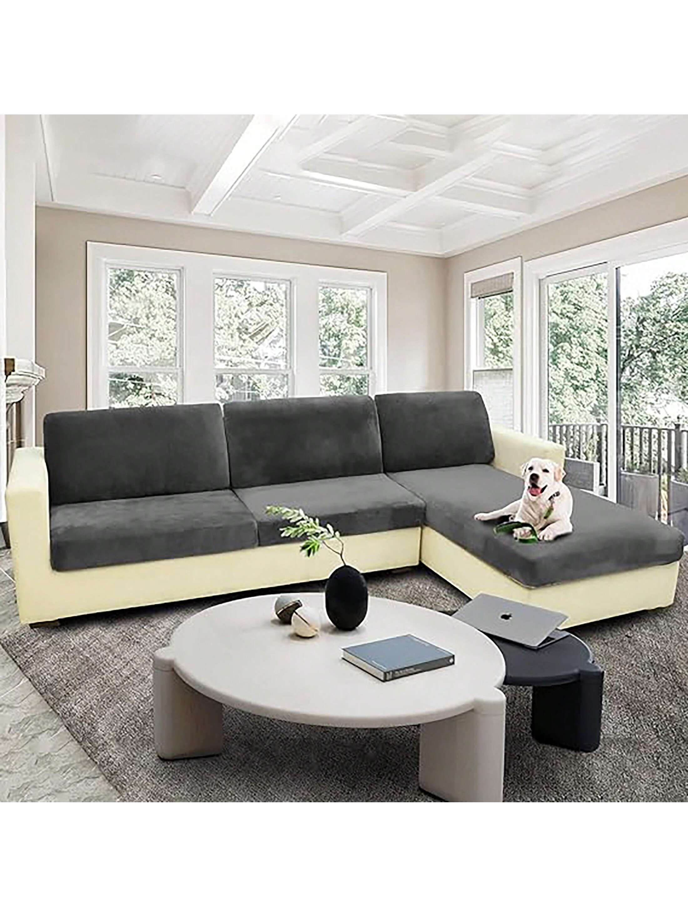 1pc Solid Color Silver Fox Fleece Sofa Cushion Cover