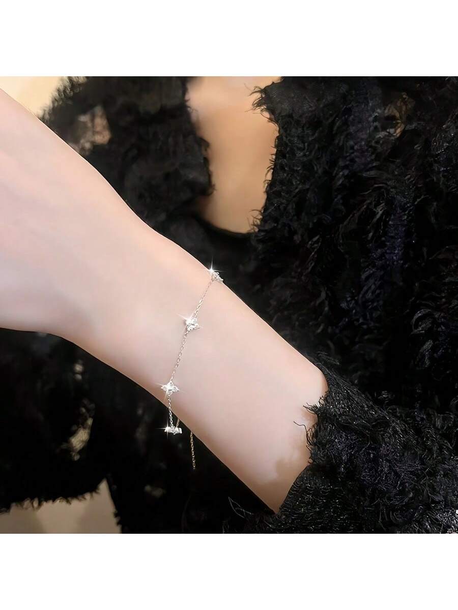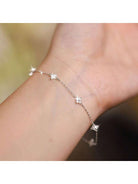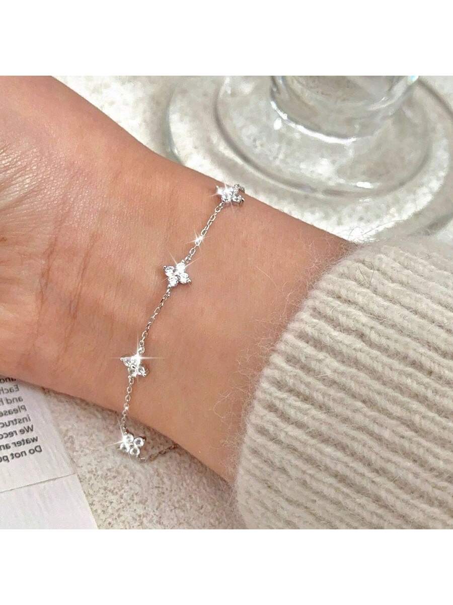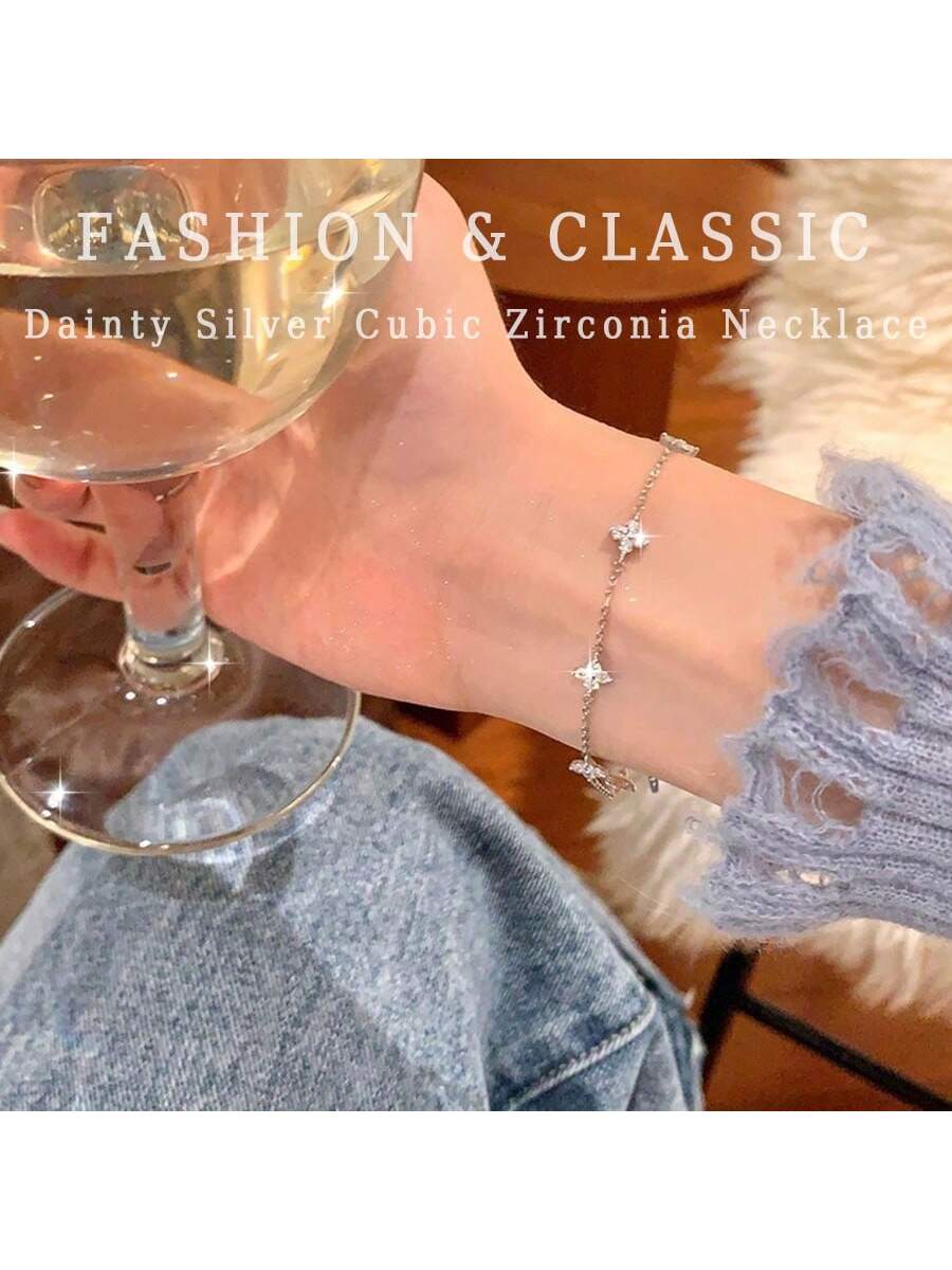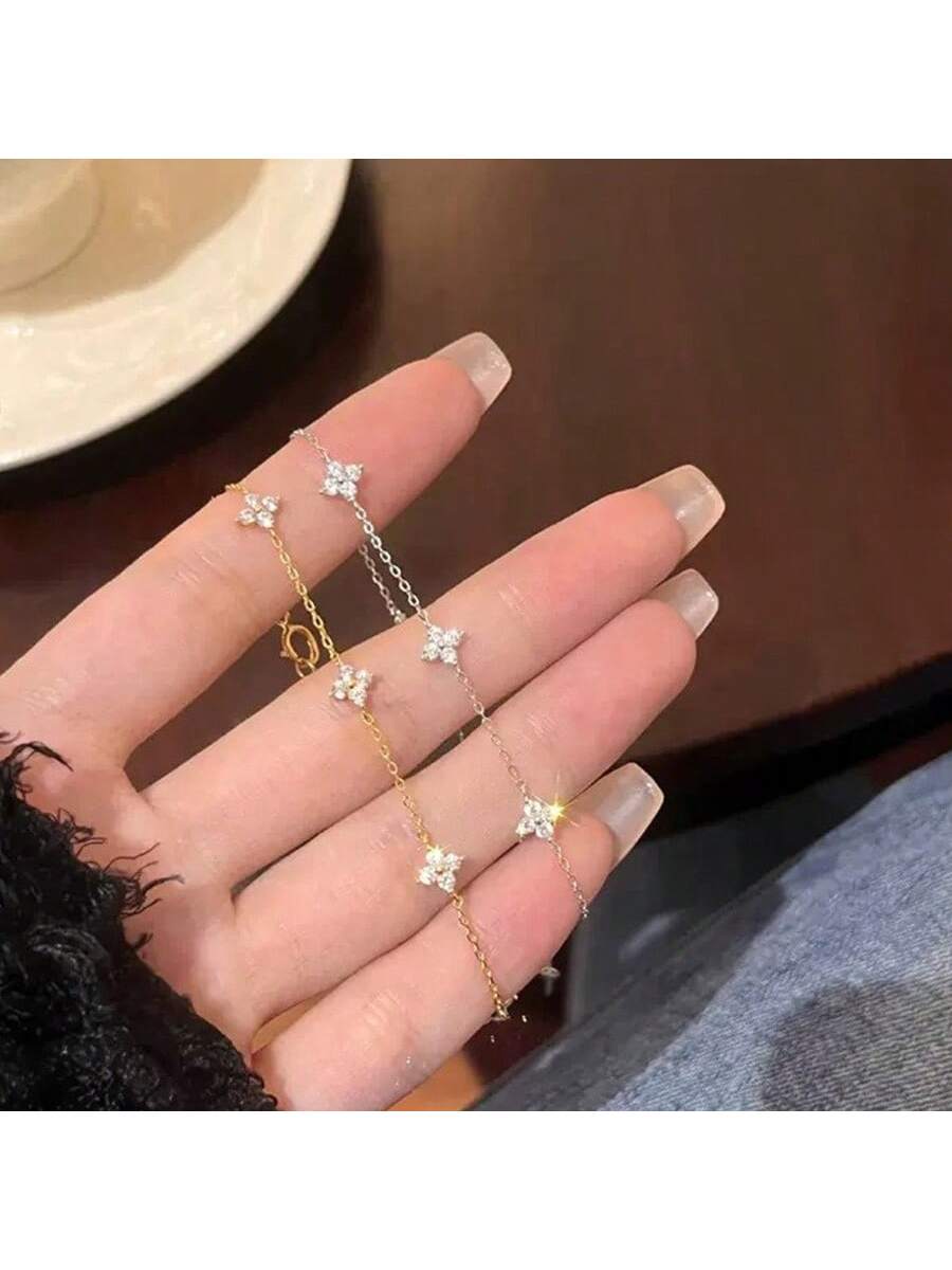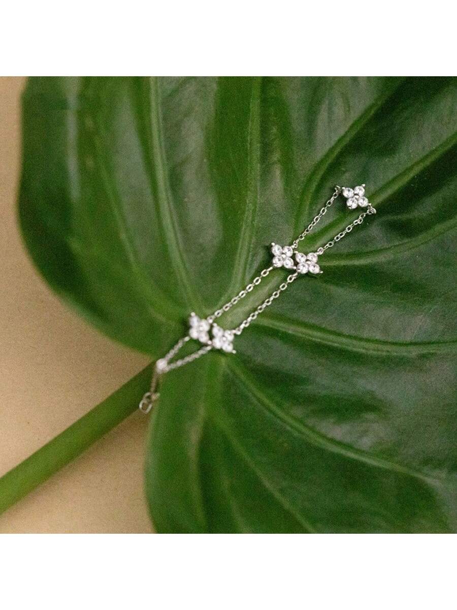 1pc Waterproof Silver-Tone Plated Zirconia Flower Pendant Bracelet Chain