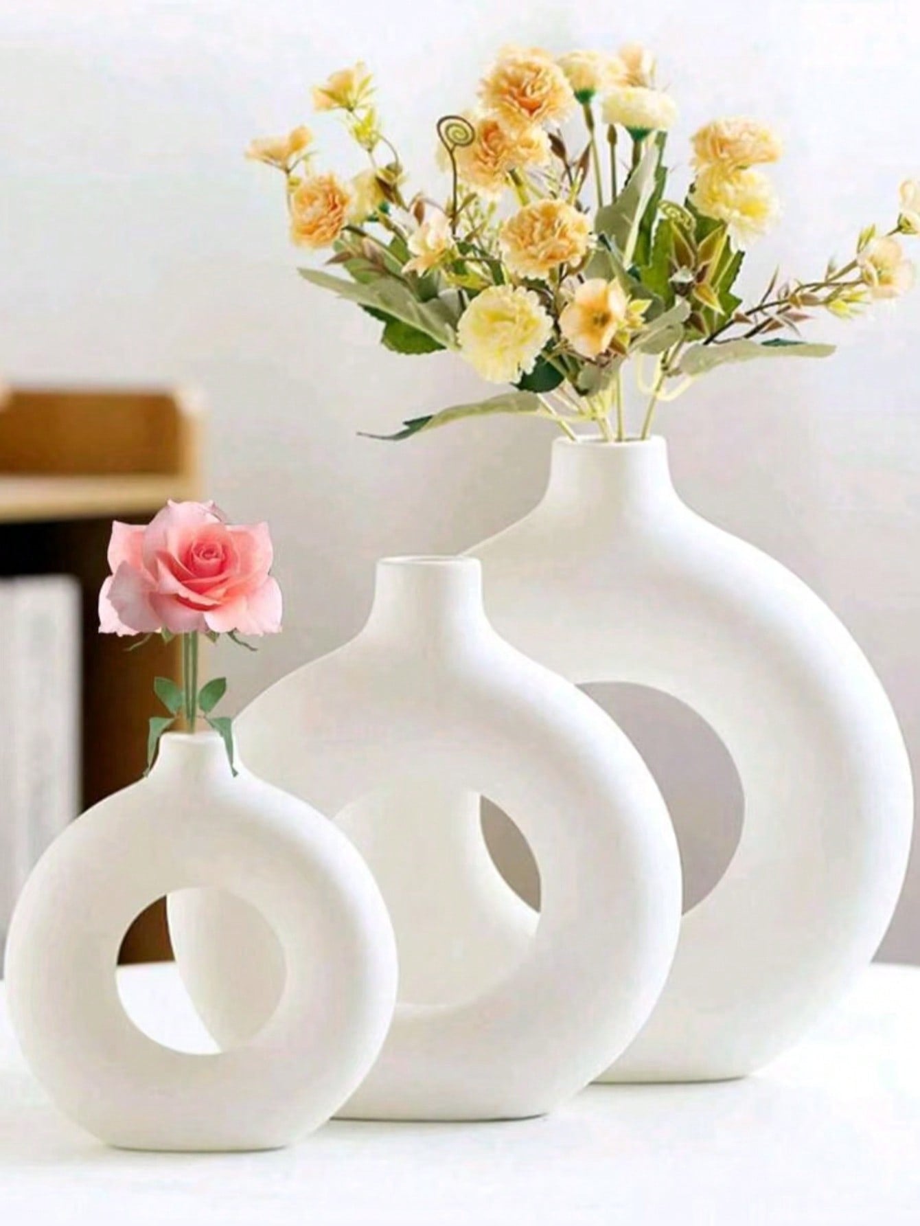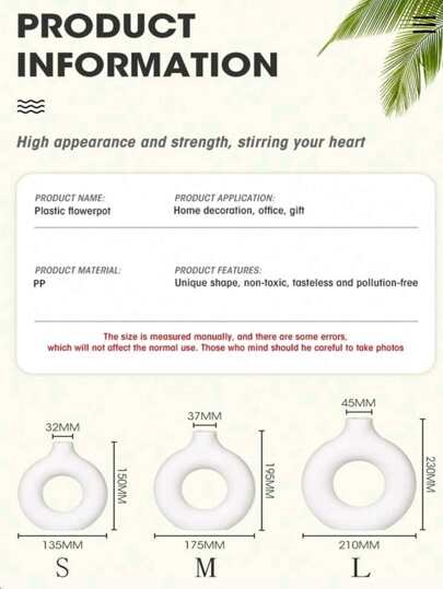 1pc White Plastic Circular Flower Vase Decoration