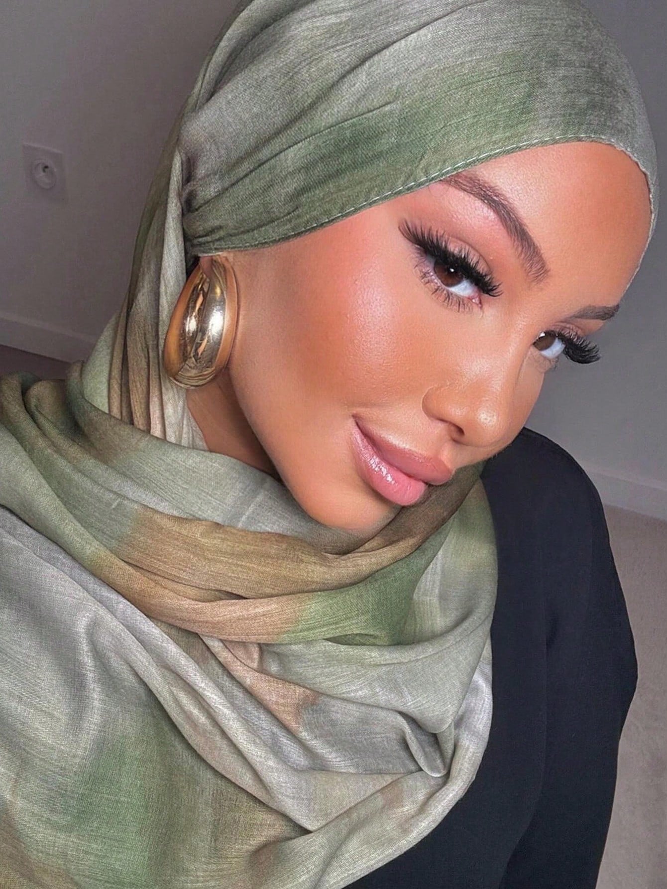 1pc Women Bohemian Style Watercolor Tie-Dye Printed VELA Headscarf/Scarf, Casual Soft Windproof Shawl,