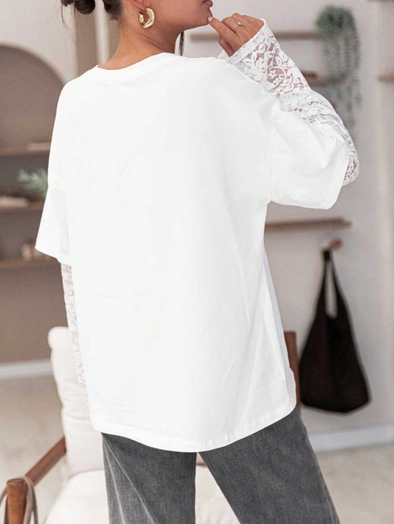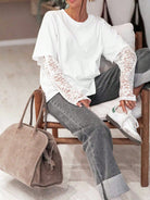 1pc Women's Casual Lace Patchwork Long Sleeve T-Shirt