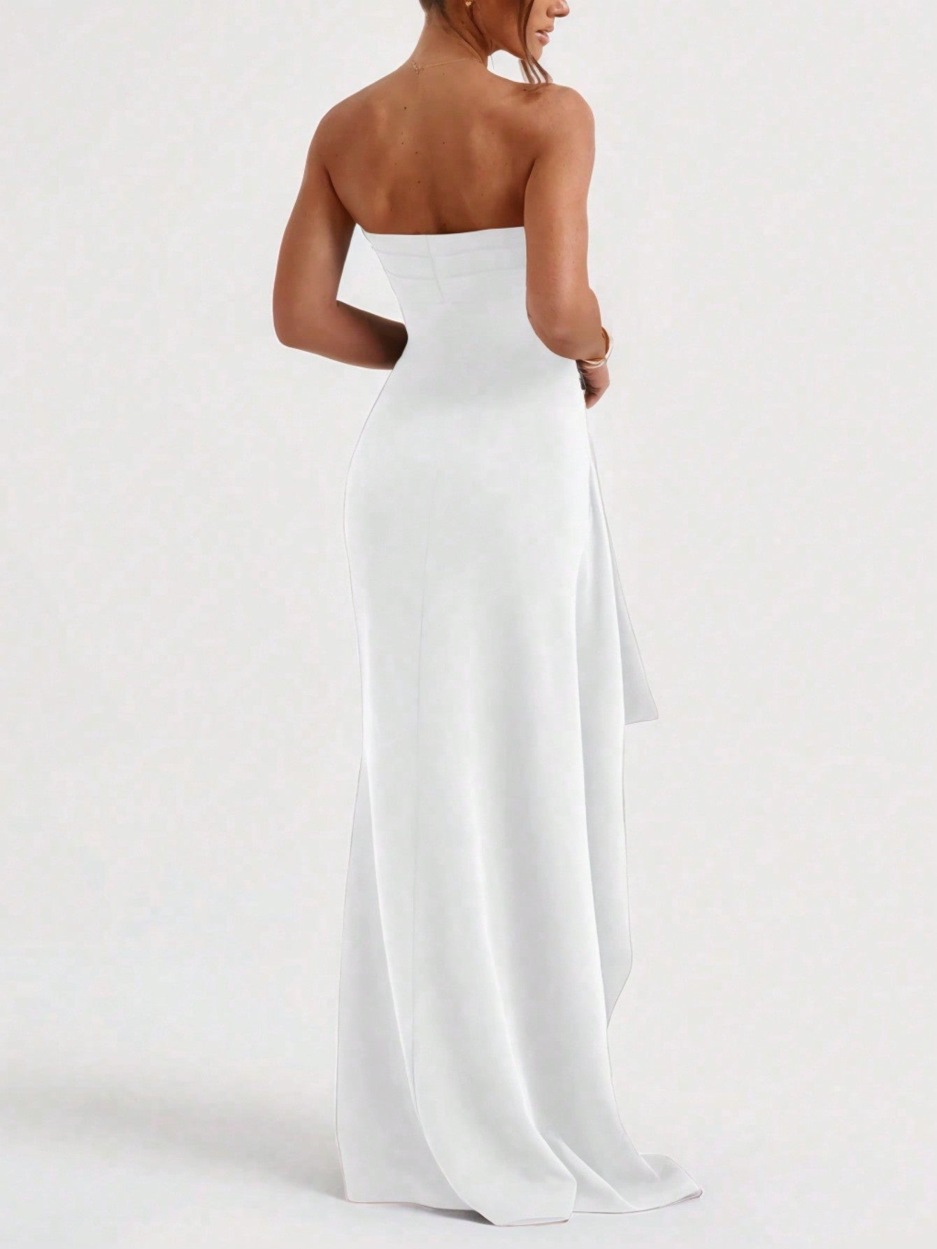 1pc Women's Fashion Sexy Solid Color Strapless Side Slit Hem Dress