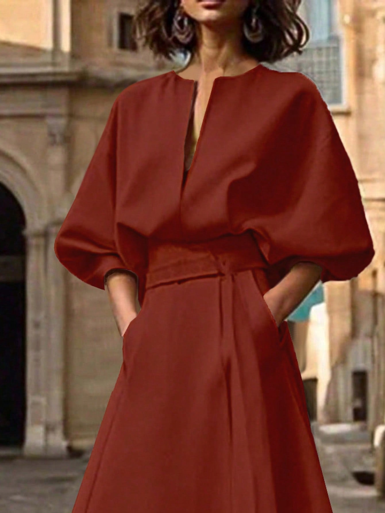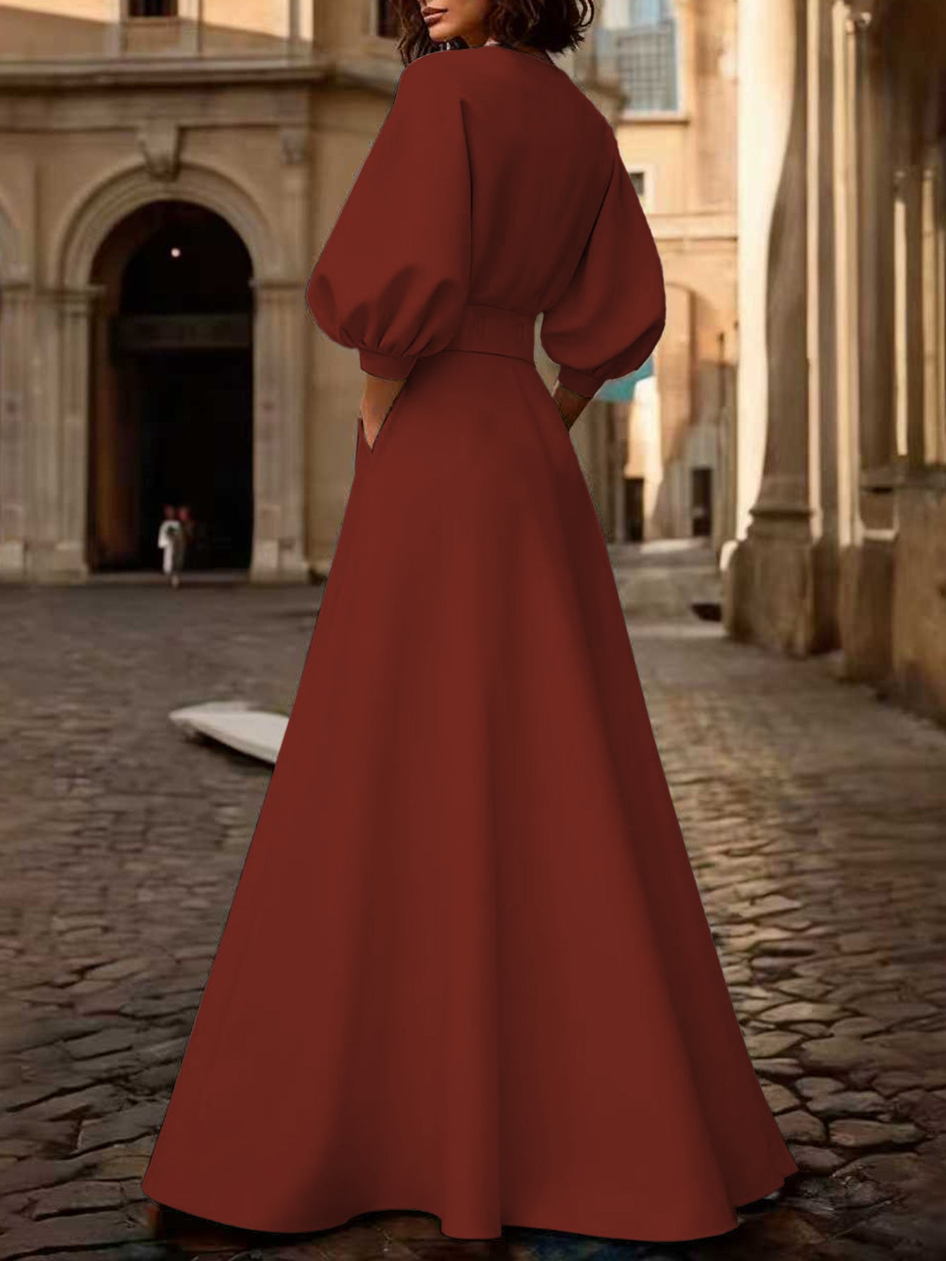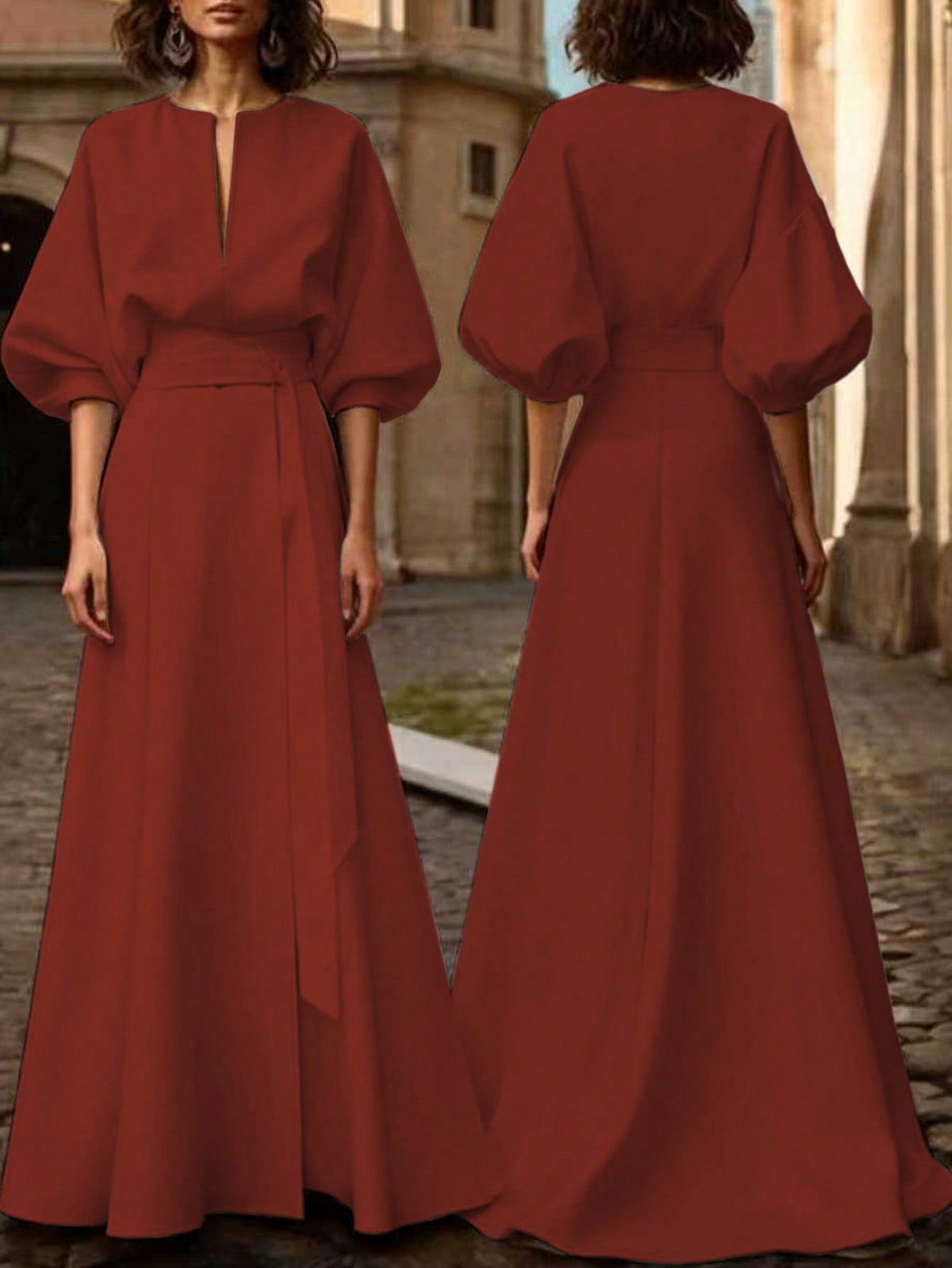 2025 Spring/Autumn New Casual Fashion Batwing Sleeve V-Neck Asymmetric Waist A-Line Split Maxi Dress