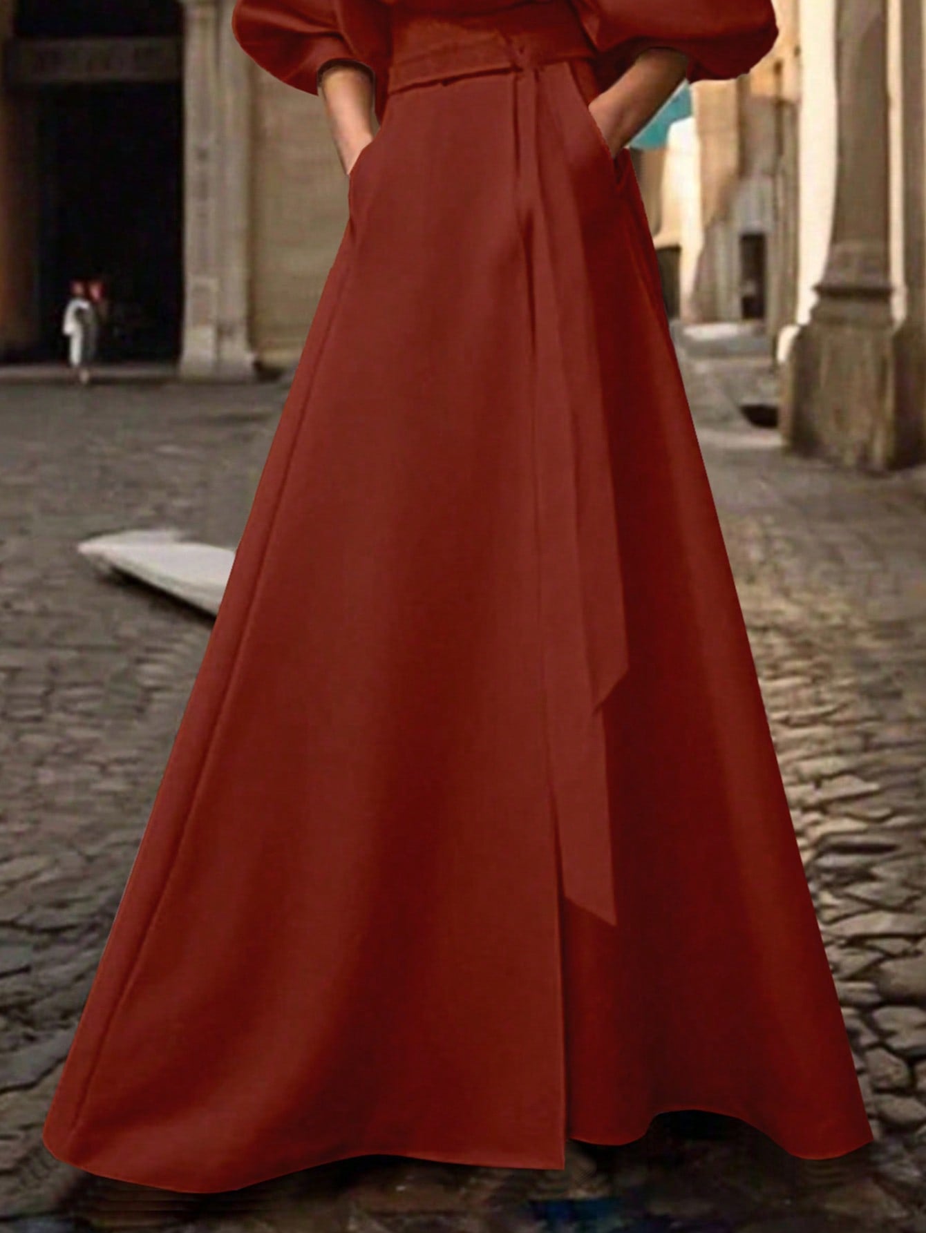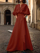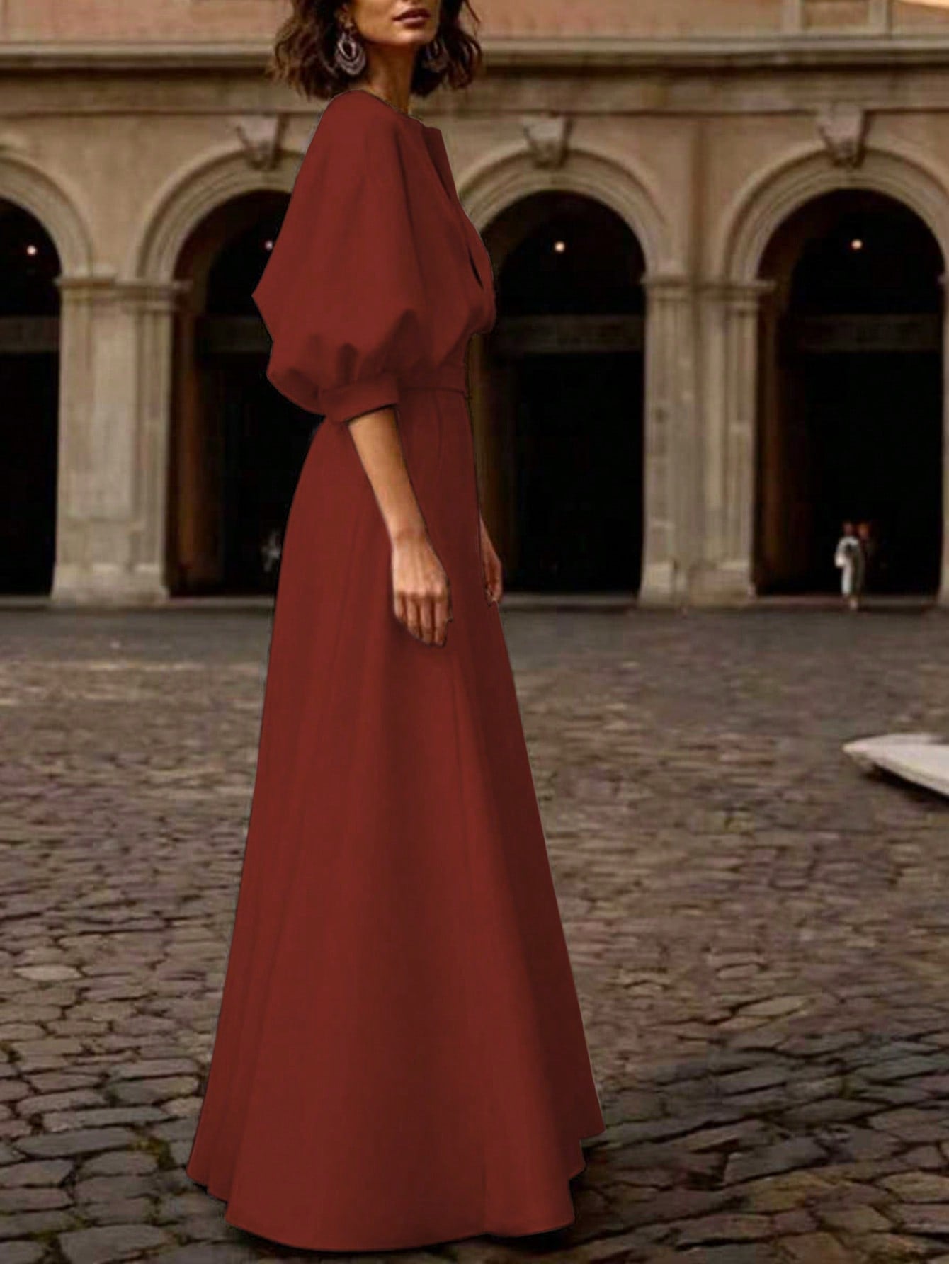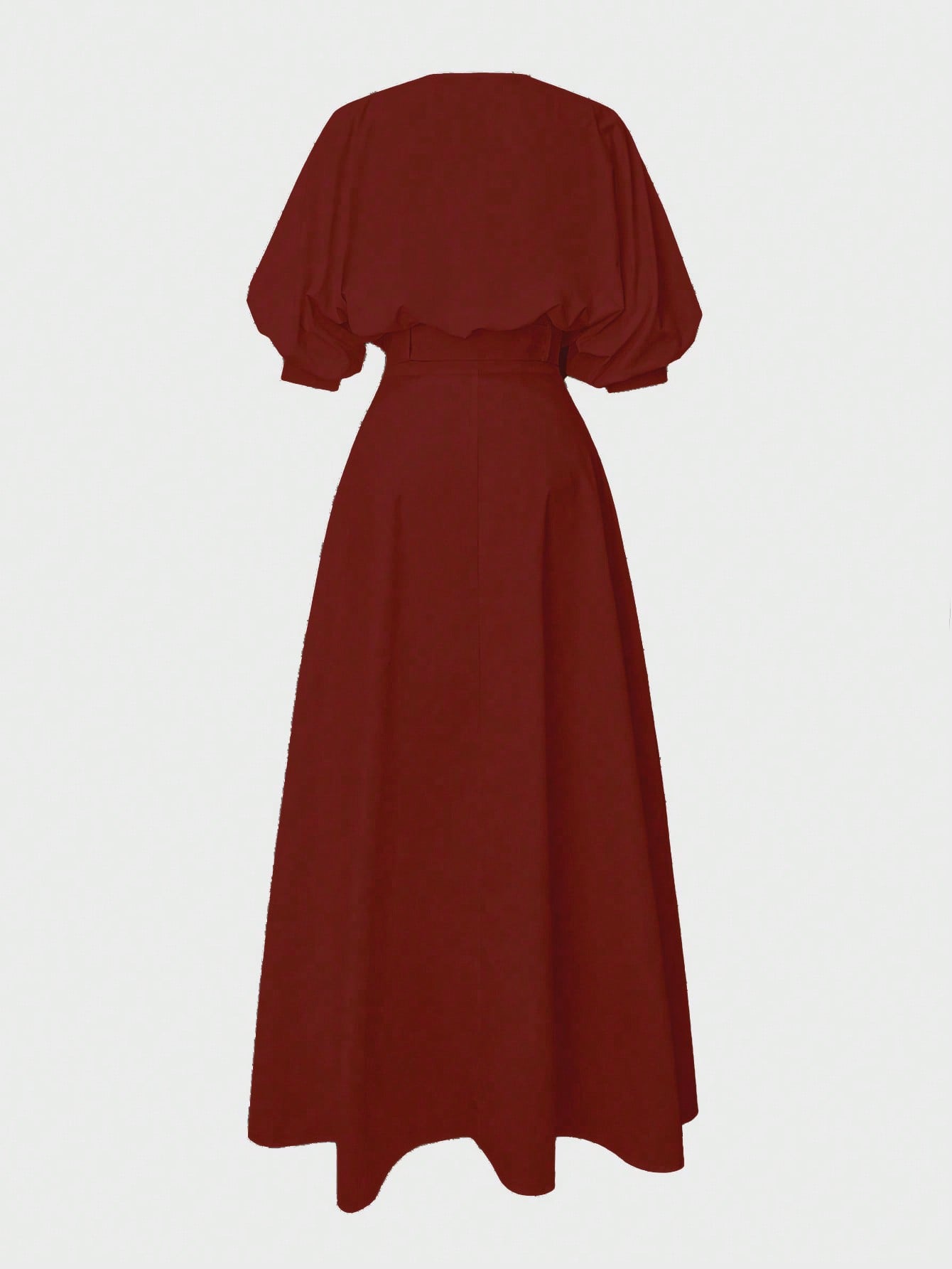 2025 Spring/Autumn New Casual Fashion Batwing Sleeve V-Neck Asymmetric Waist A-Line Split Maxi Dress