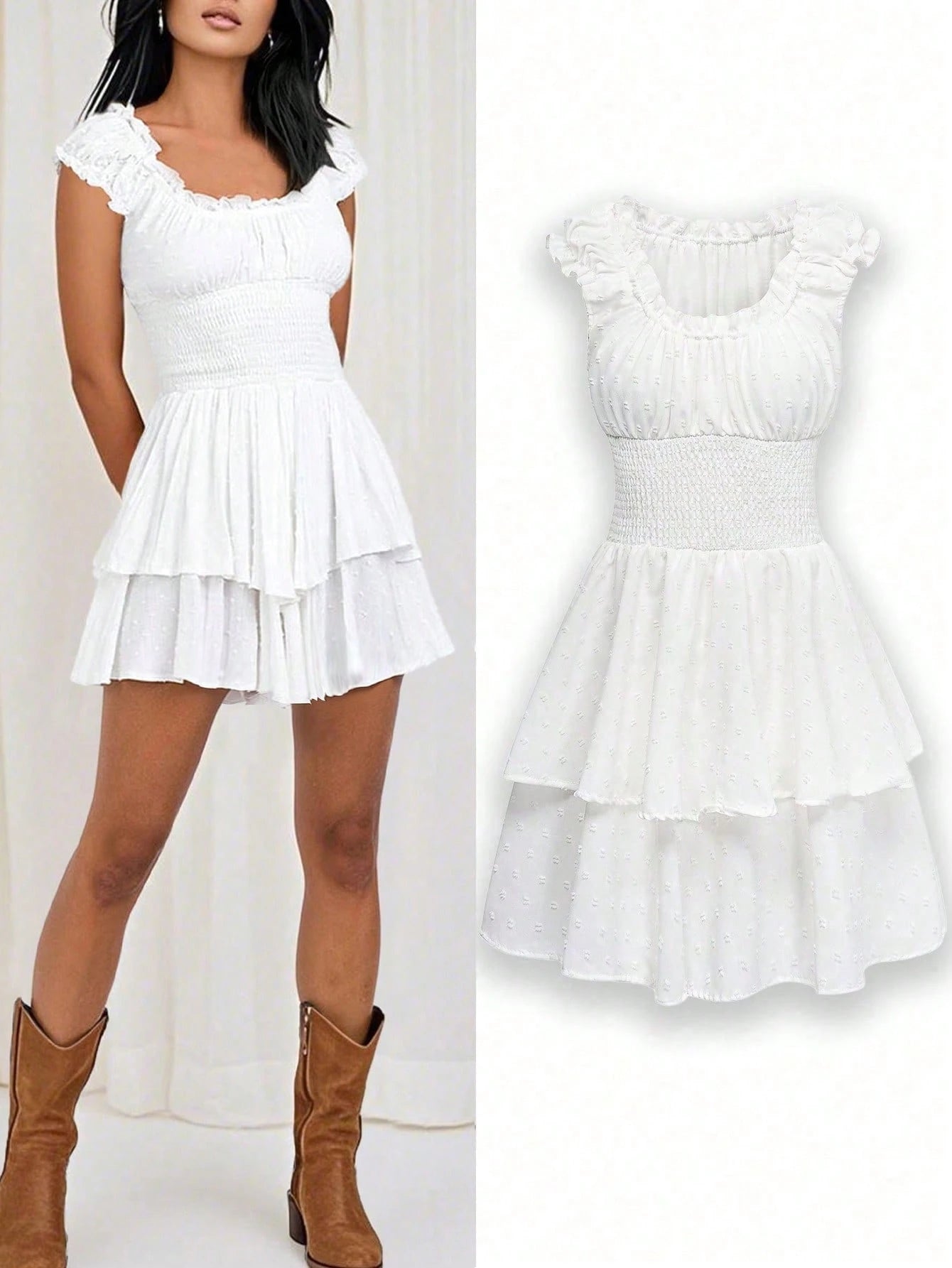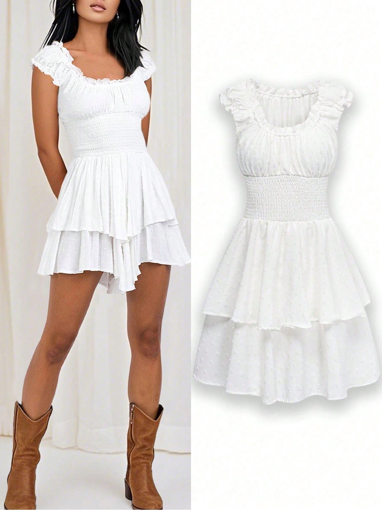 2025 Spring/Summer New White Layered Jumpsuit | Chiffon A-Line Shorts With Fluffy Ruffle Hem | Sweet