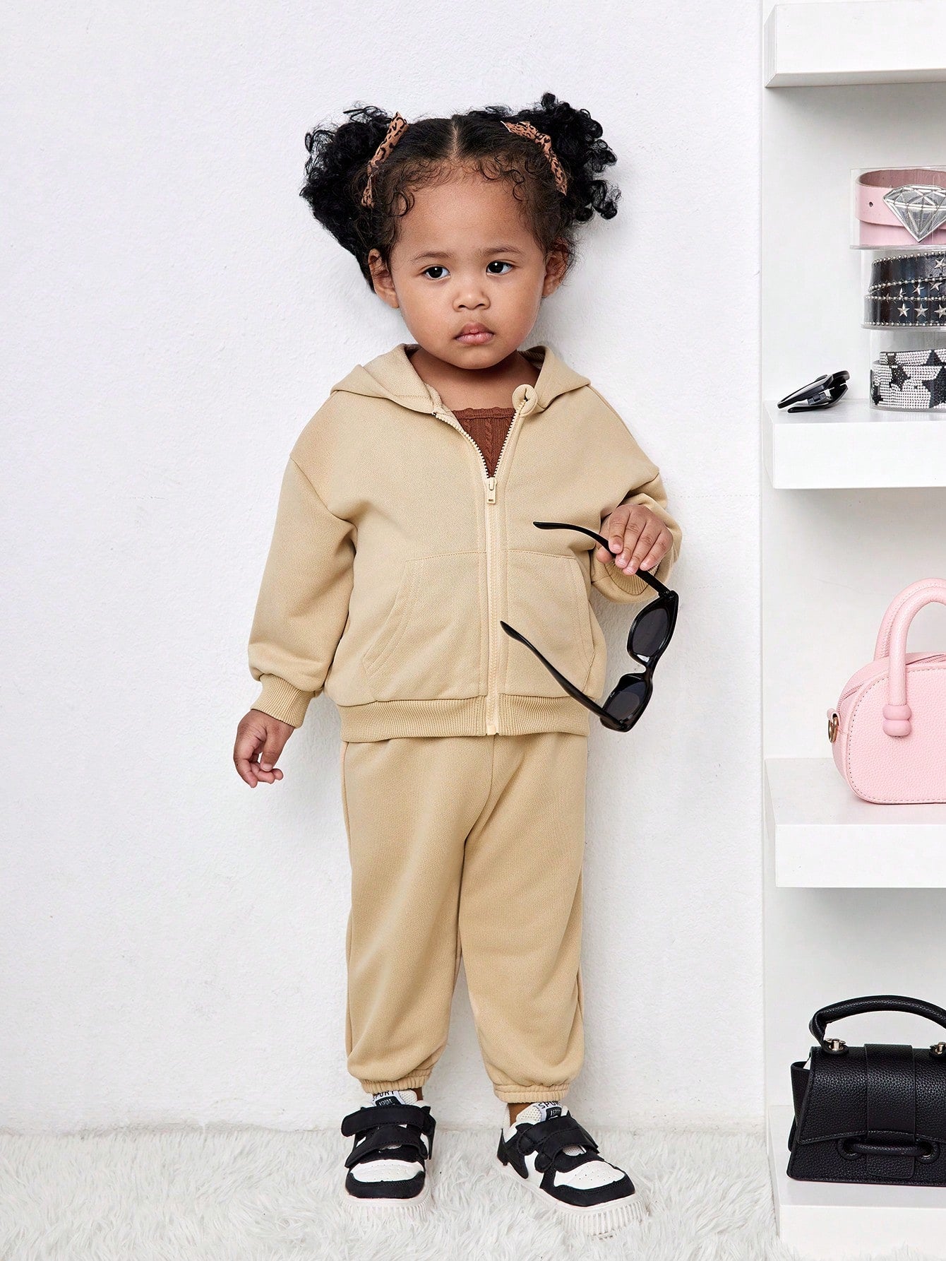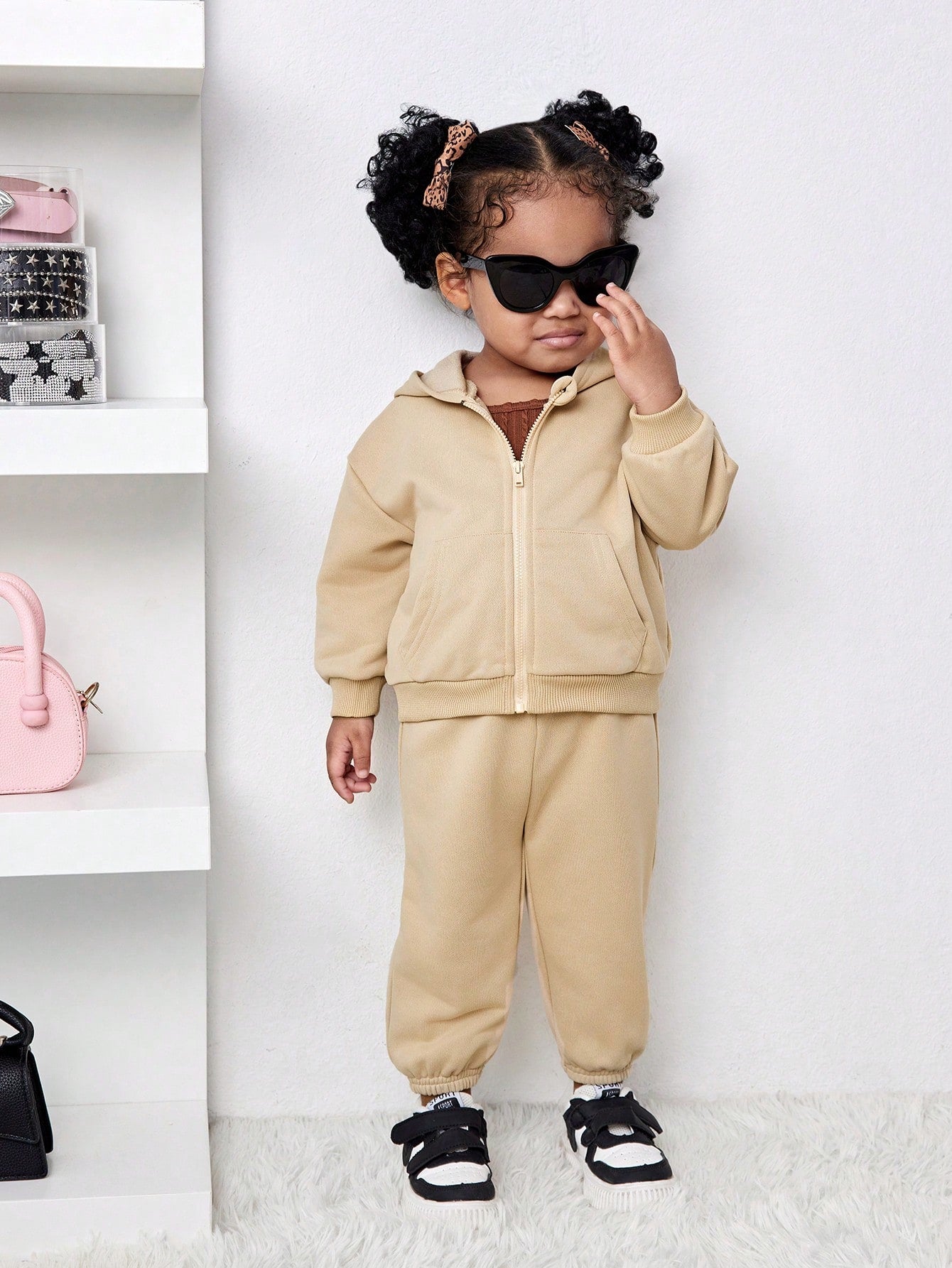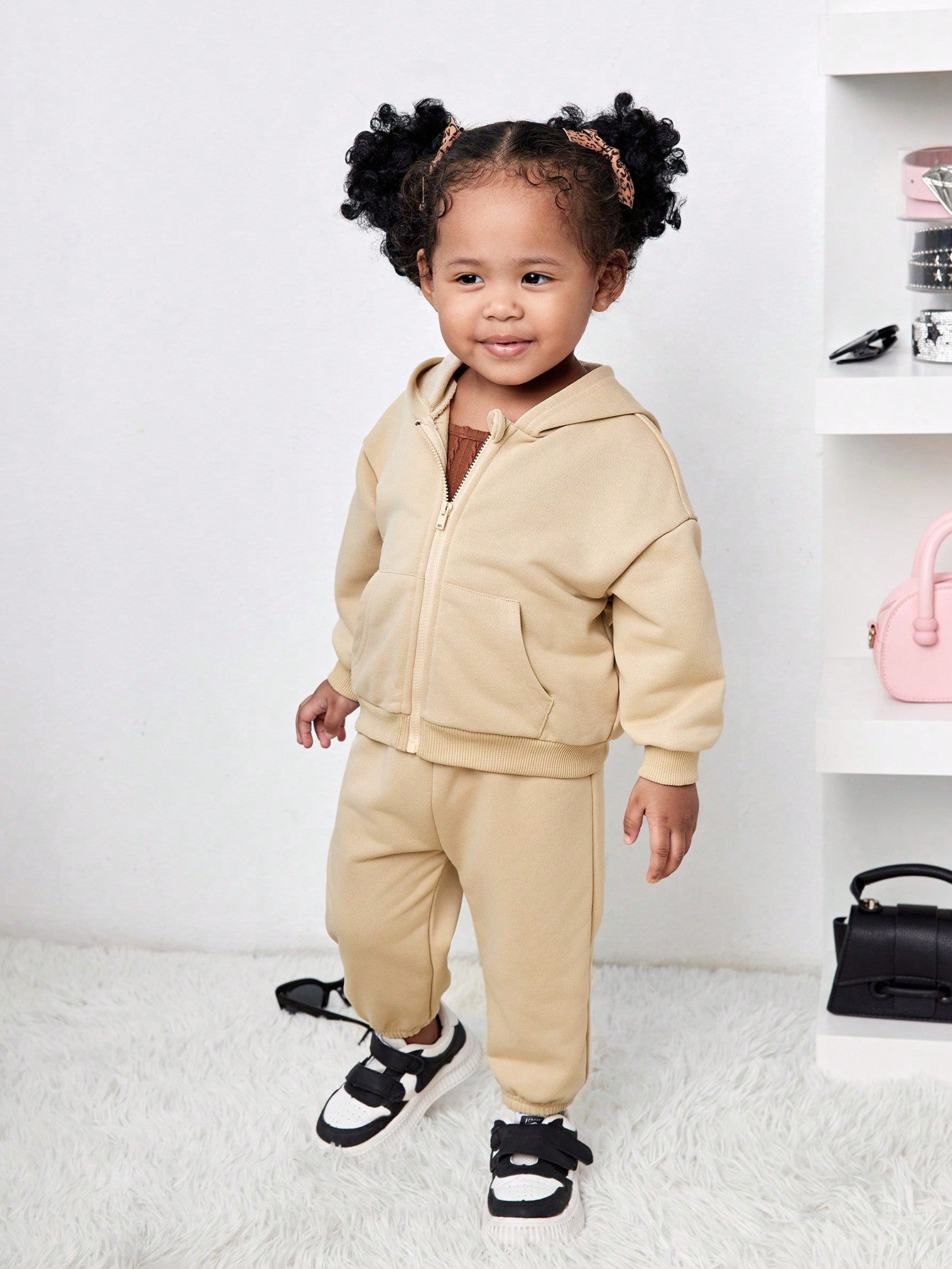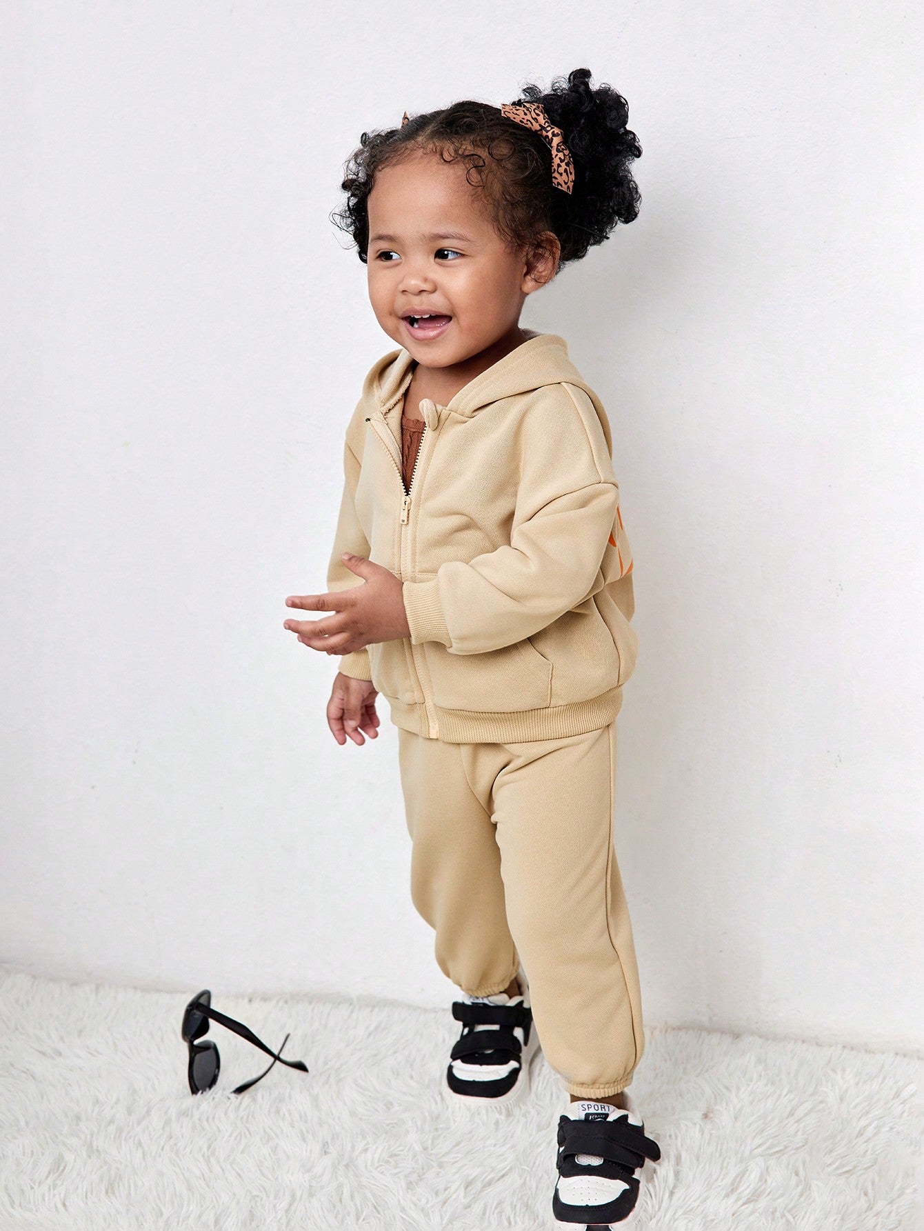 2pcs/Set Baby Girl Fashionable Oversized Slogan Print Sweatshirt And Fleece Pants For Campus, Casual
