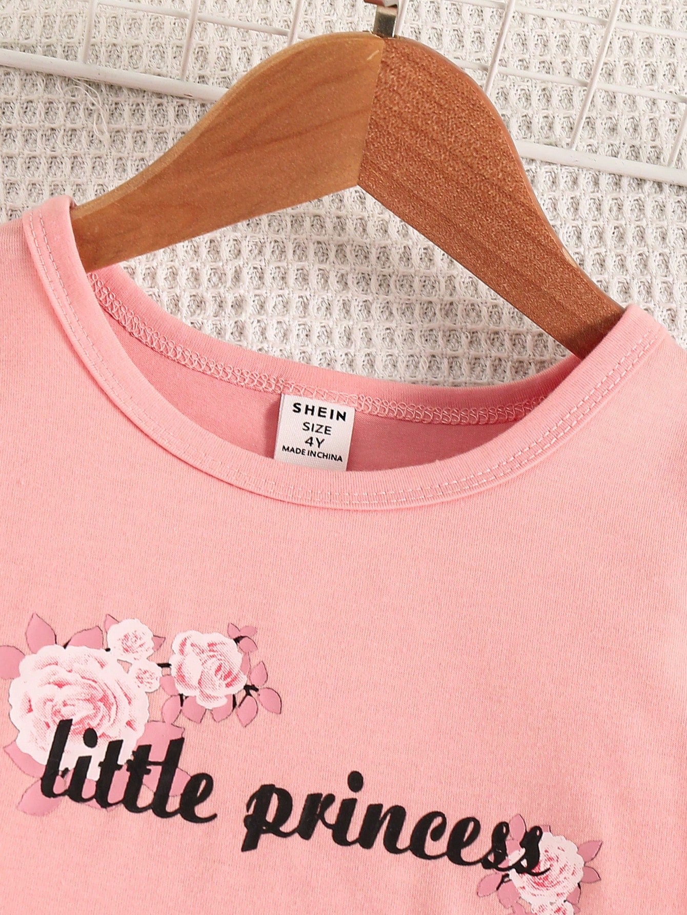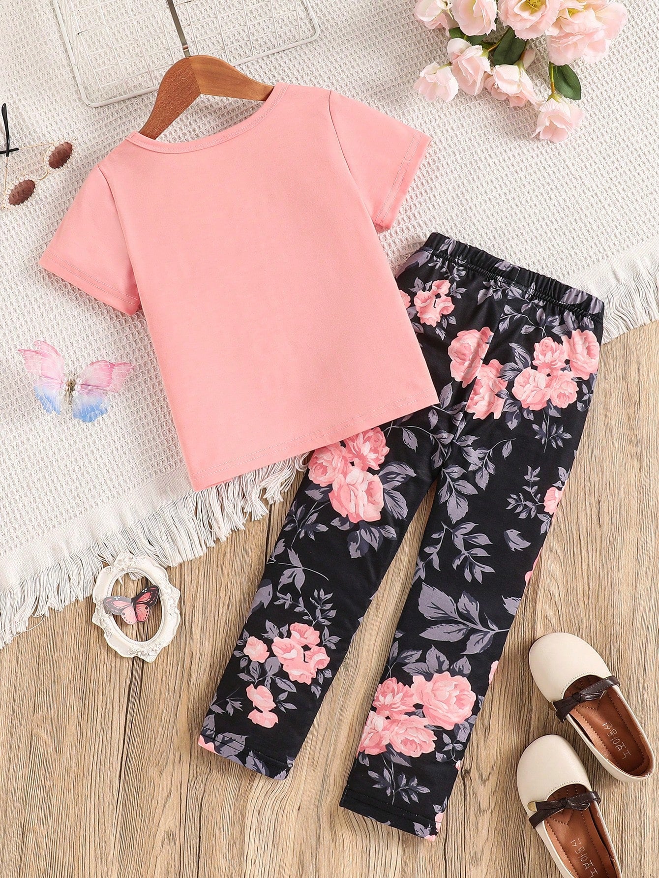 2pcs Set: Girl's Letter Print Round Neck Short Sleeve T-Shirt And Pants Young Girls Clothes Young Girls