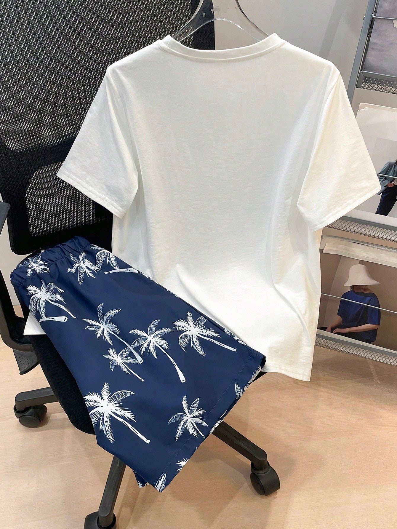 2pcs/Set Teen Boys Casual Short Sleeve T-Shirt And Shorts Set, Street Punk Rock Style, Suitable For Outdoor,