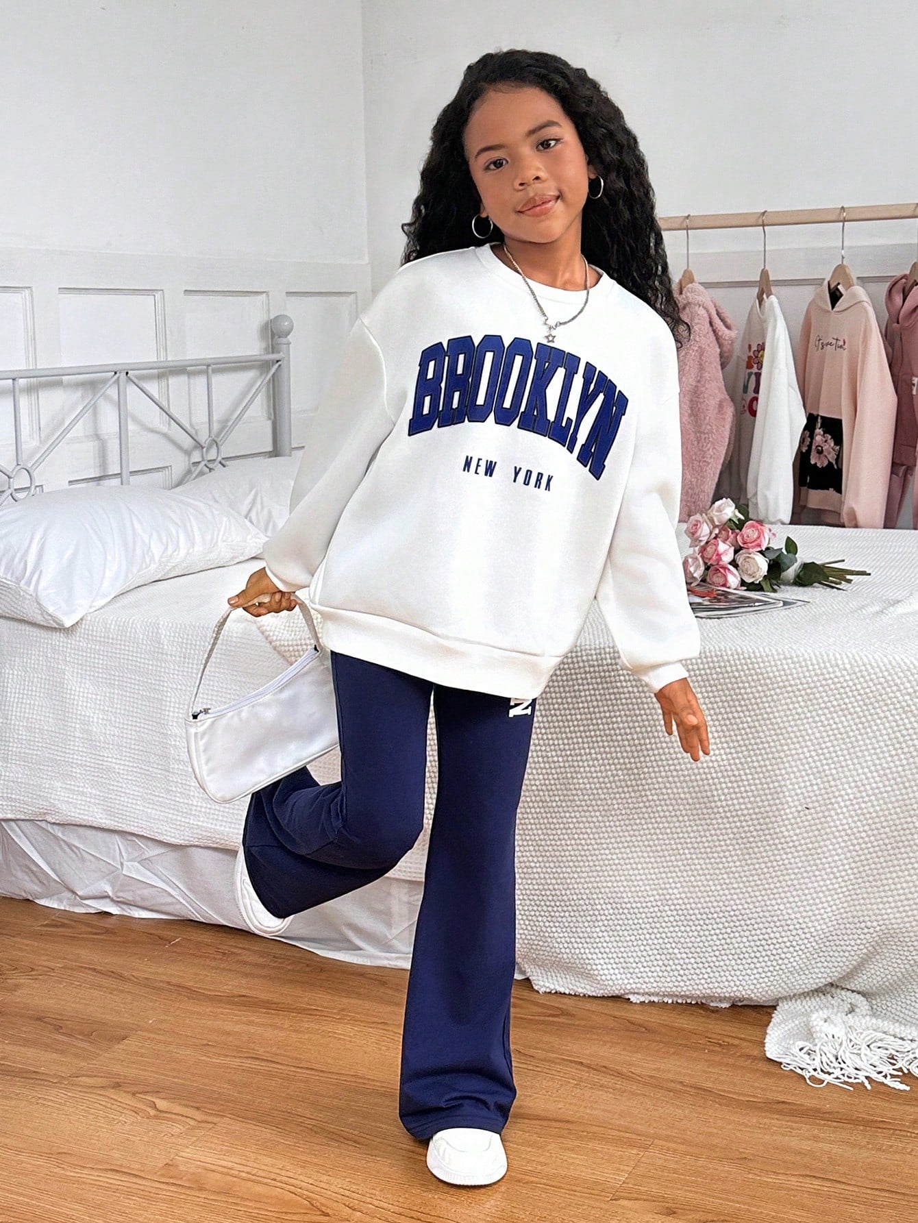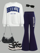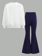 2pcs/Set Tween Girls' Casual School Style Contrast Color Print Crew Neck Long Sleeve Sweatshirt