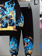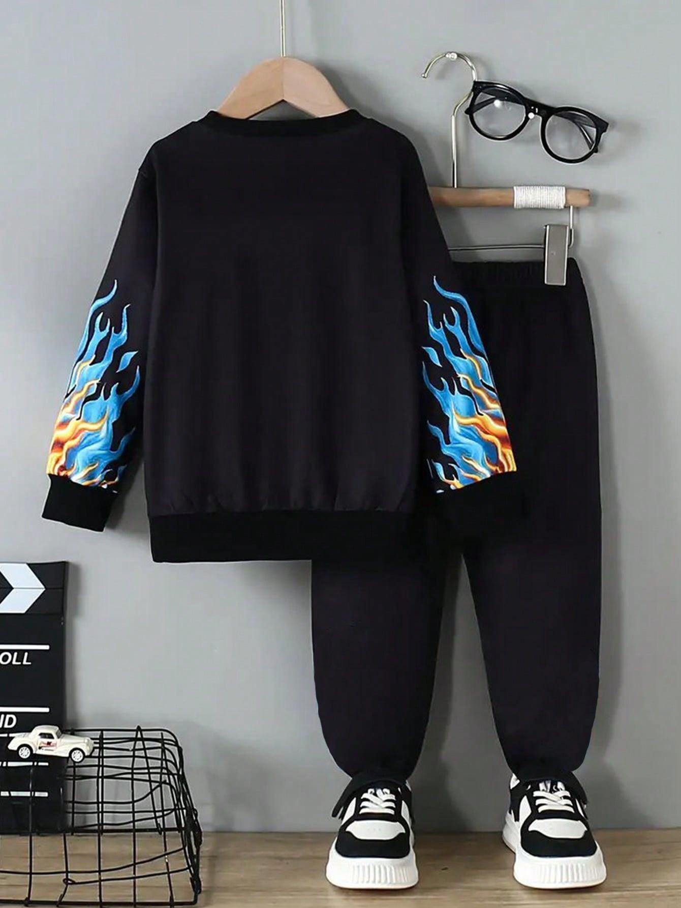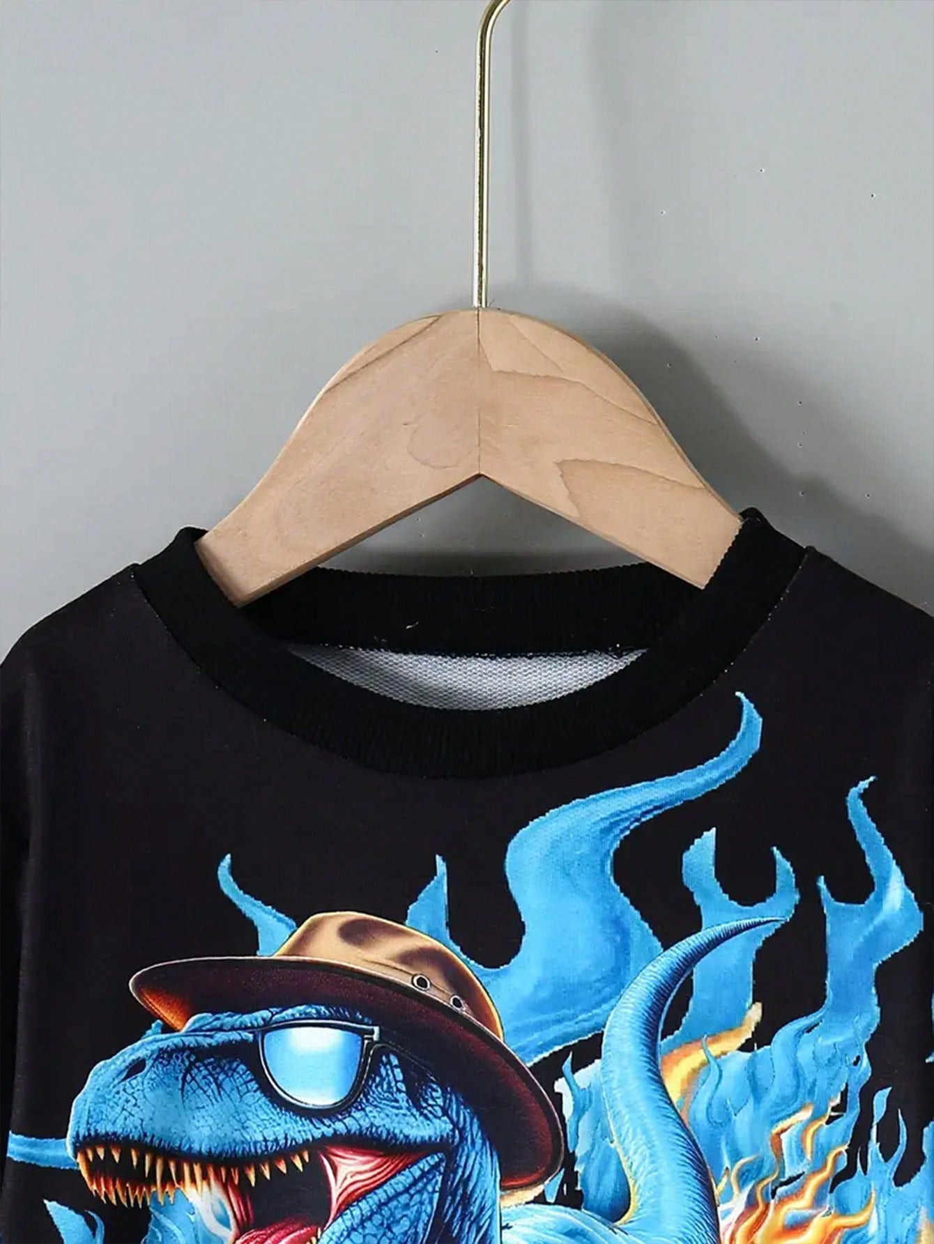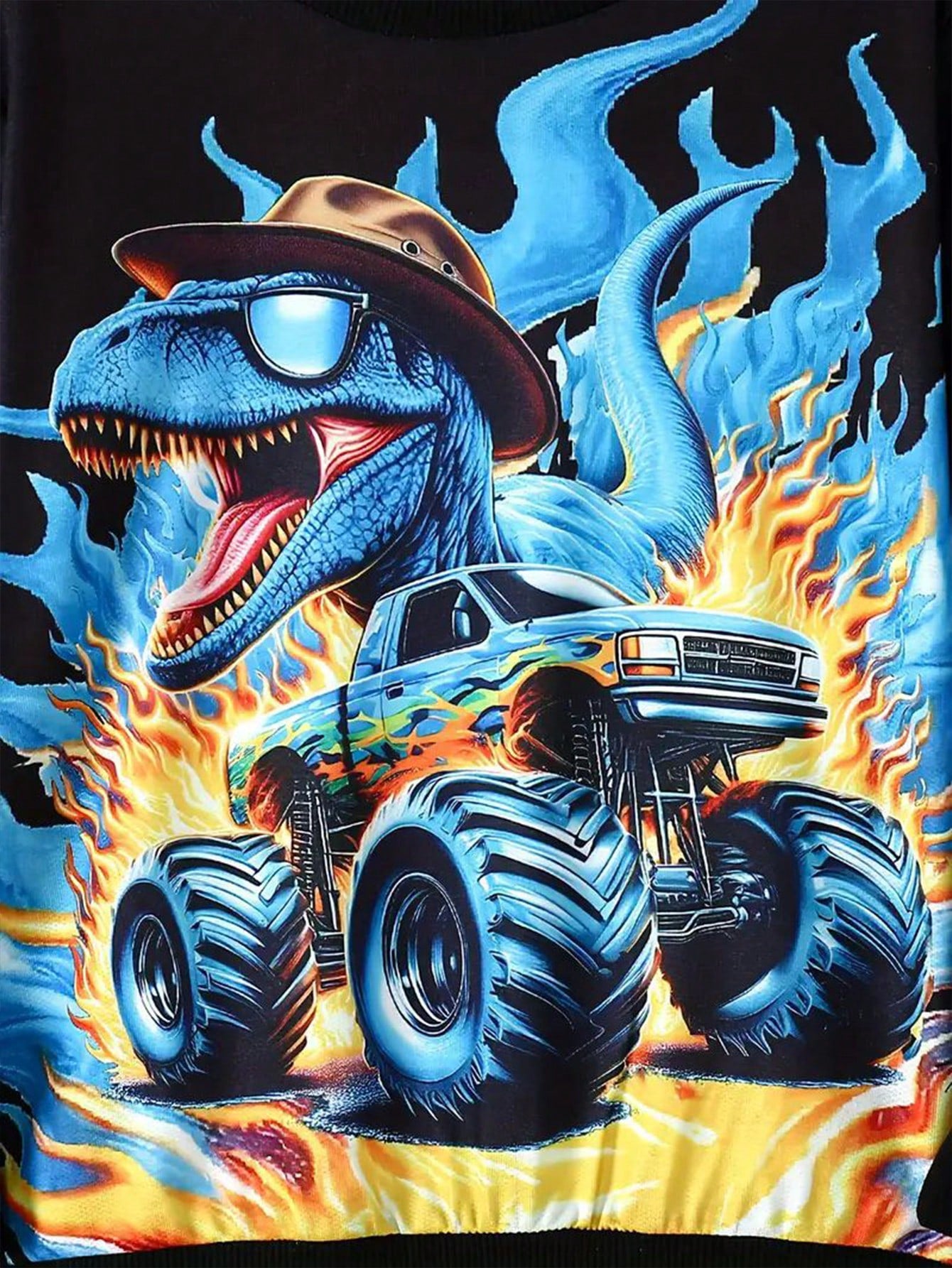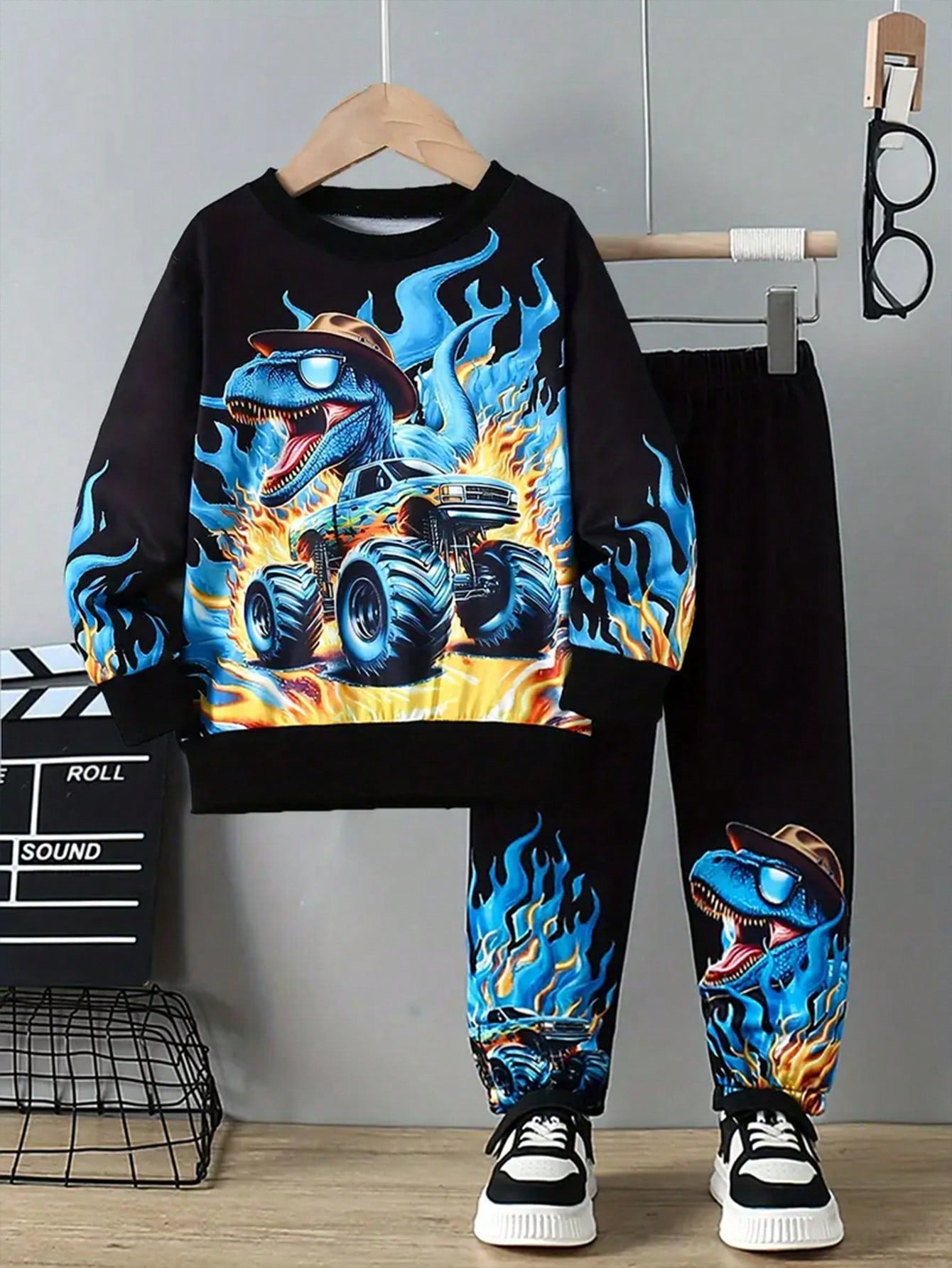 2pcs/Set Young Boy Knitted Sweatshirt & Car Dinosaur Print Suit