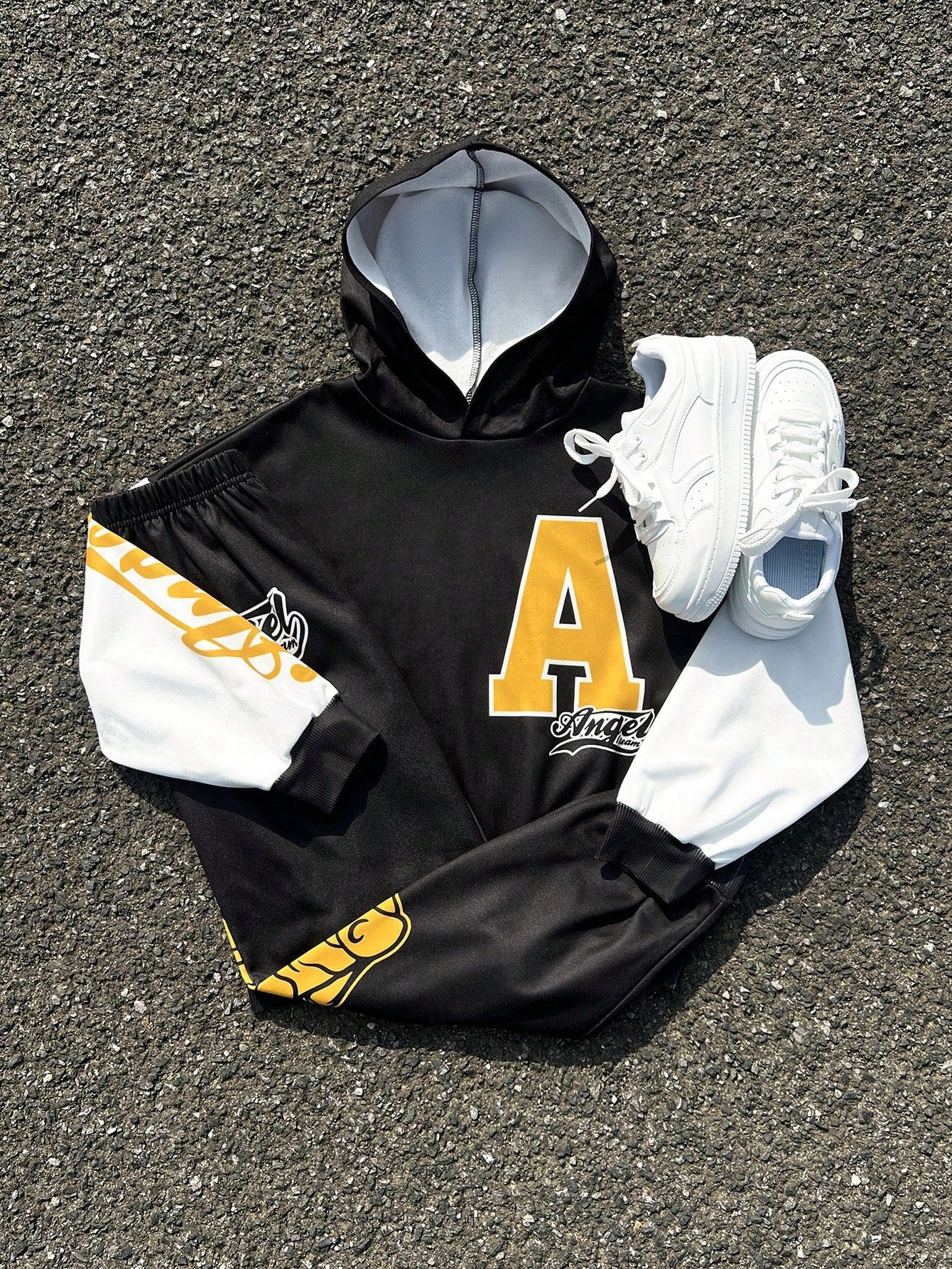 2pcs Tween Boy Letter Graphic Print Hoodie And Sweatpants Set