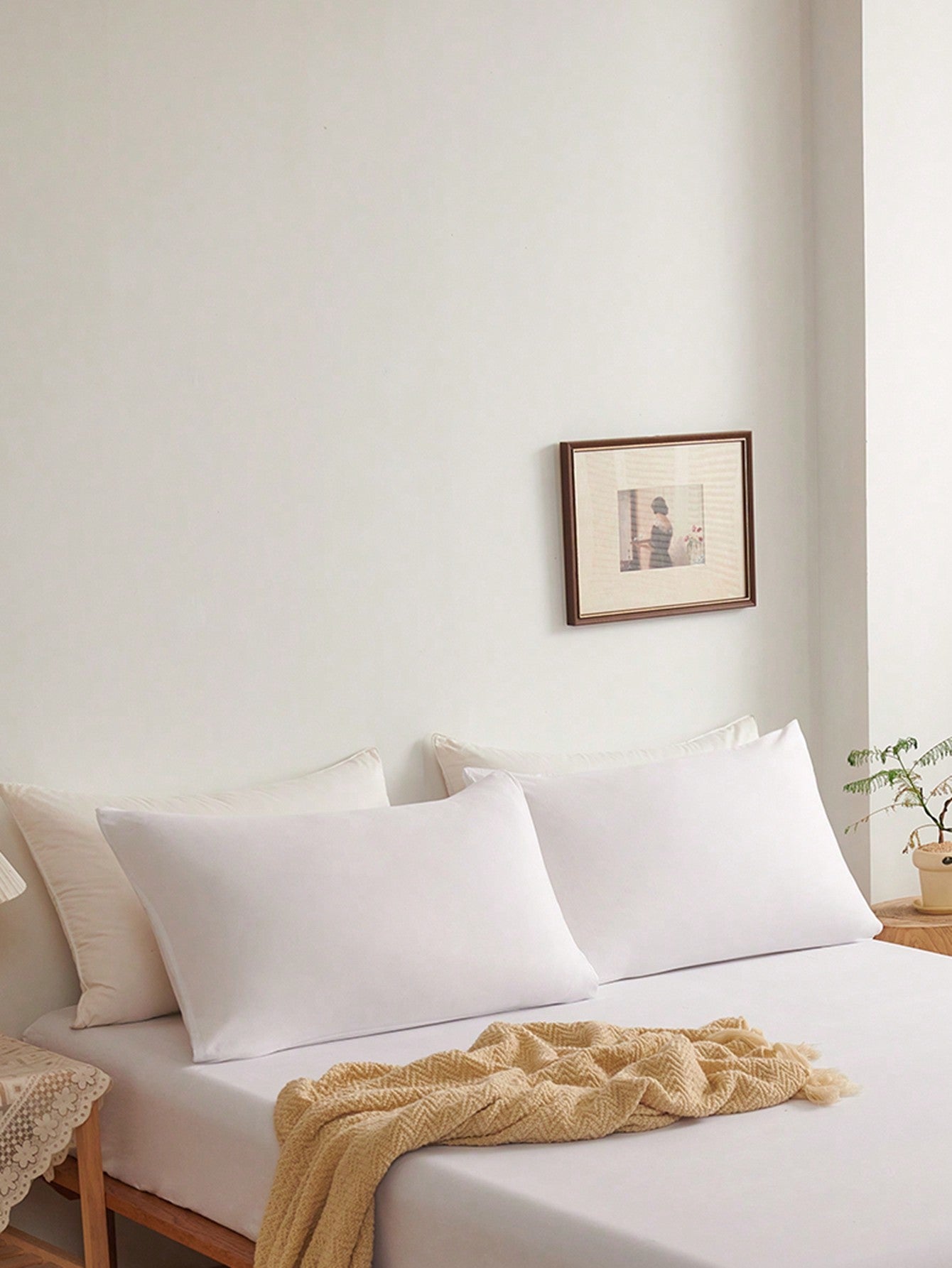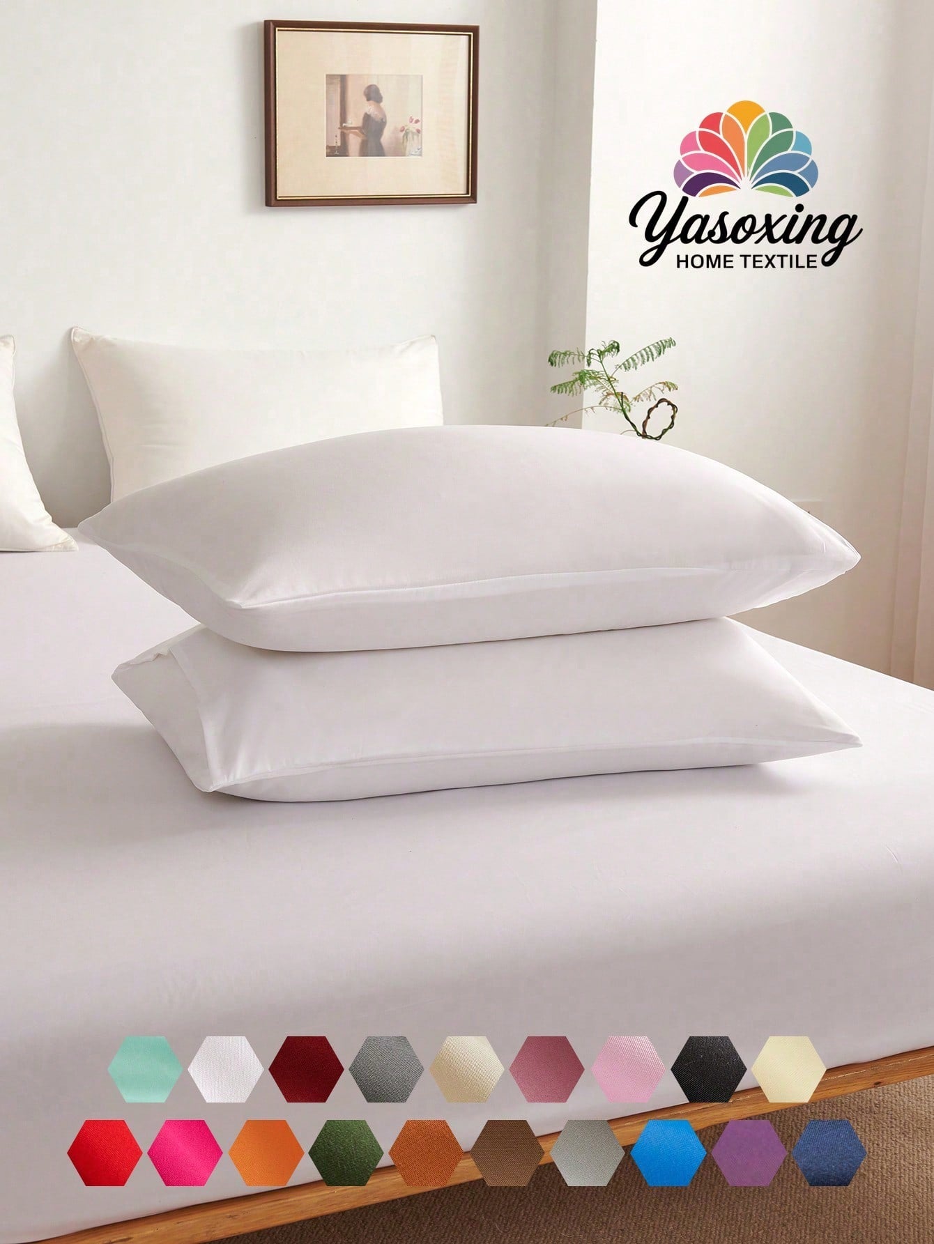 2pcs White Super Soft Plain Pillowcase Lightweight Bedding Envelope Closure Solid Color Bed Pillow Cover