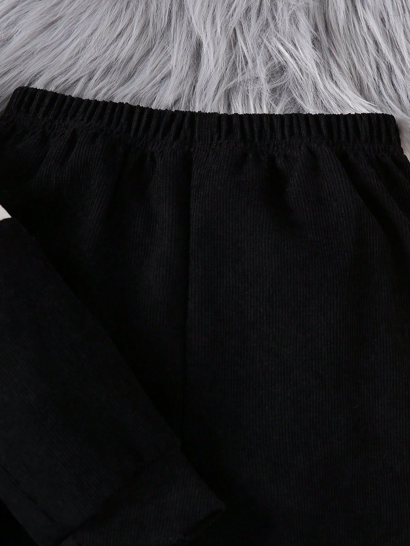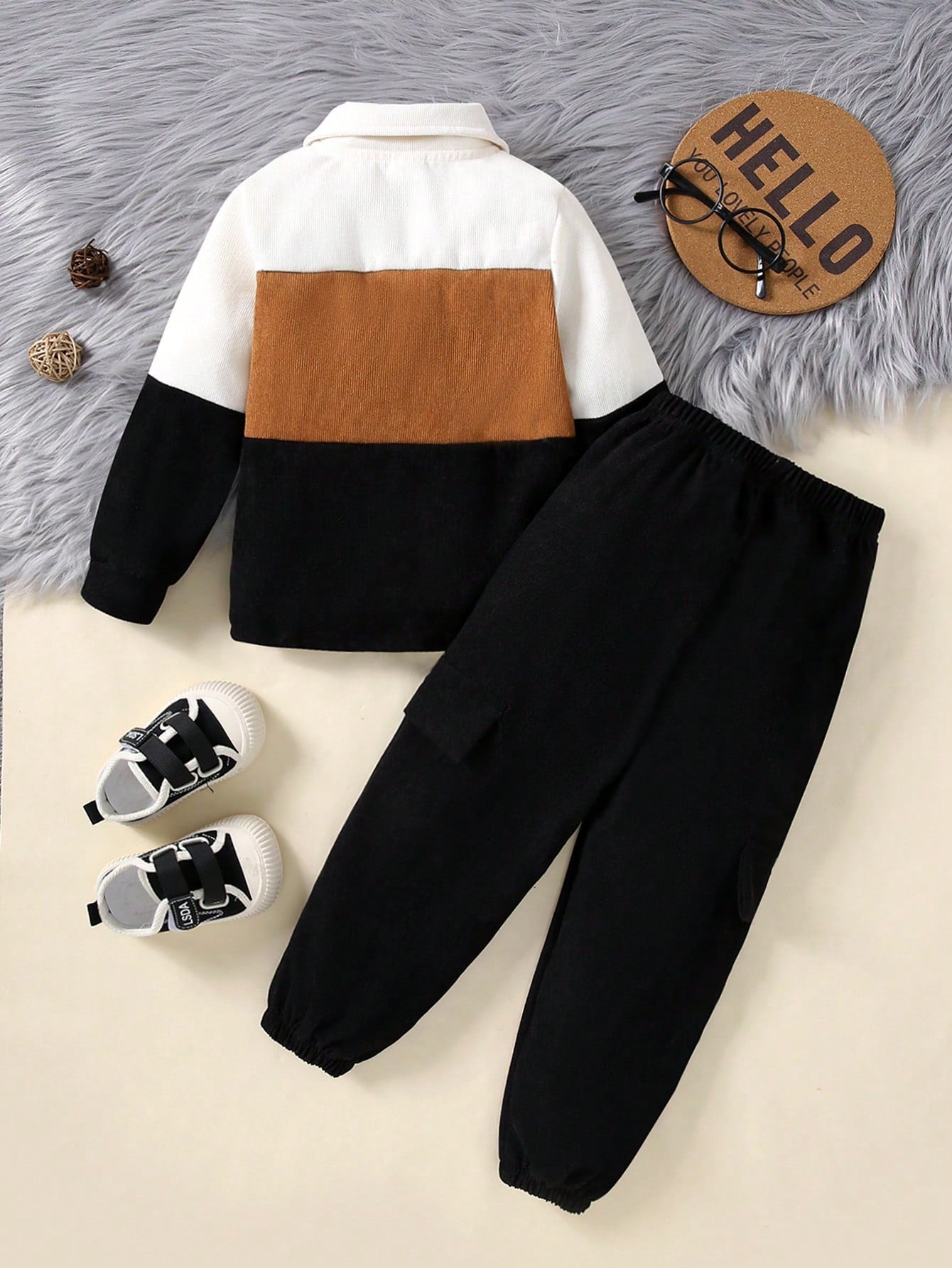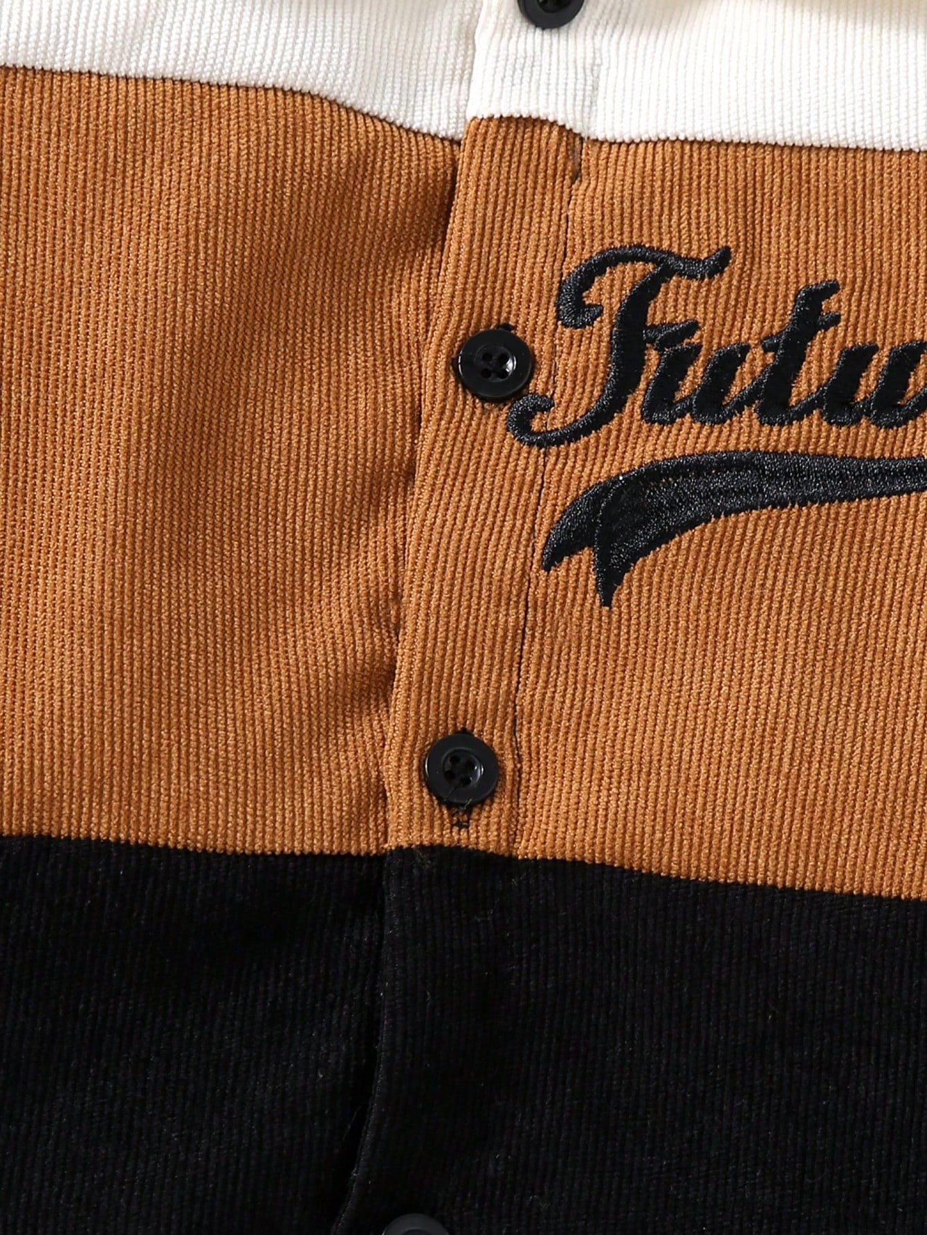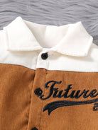 2pcs Young Boys Letter Embroidery Corduroy Splice Jacket And Solid Color Pants Outfit