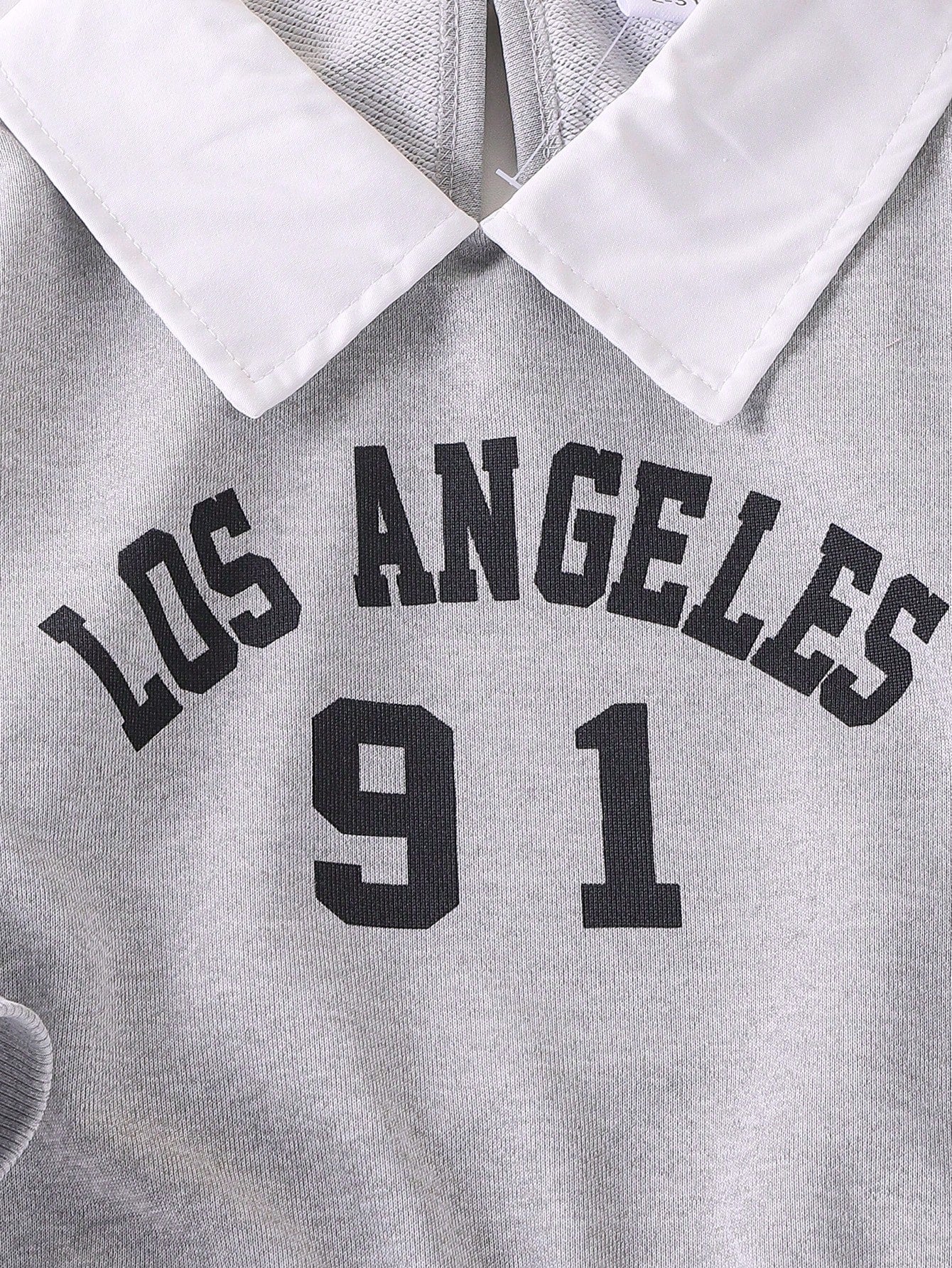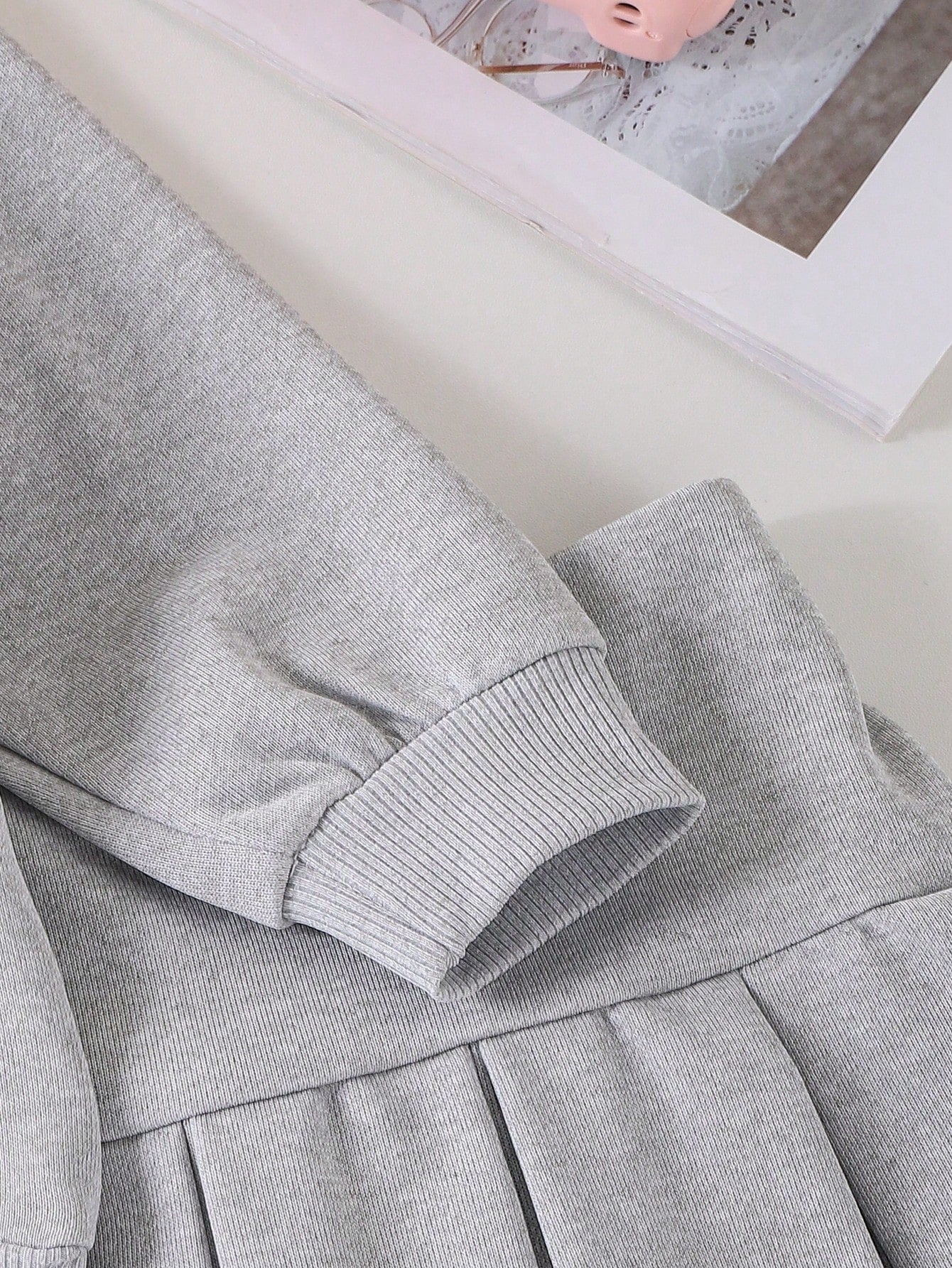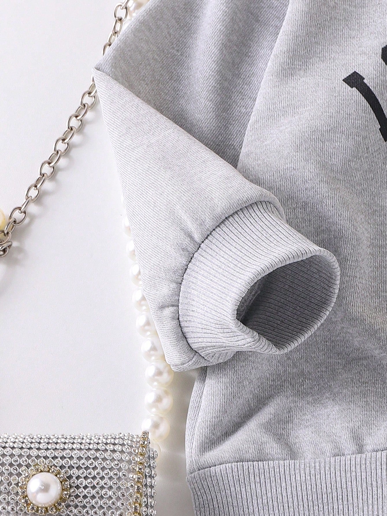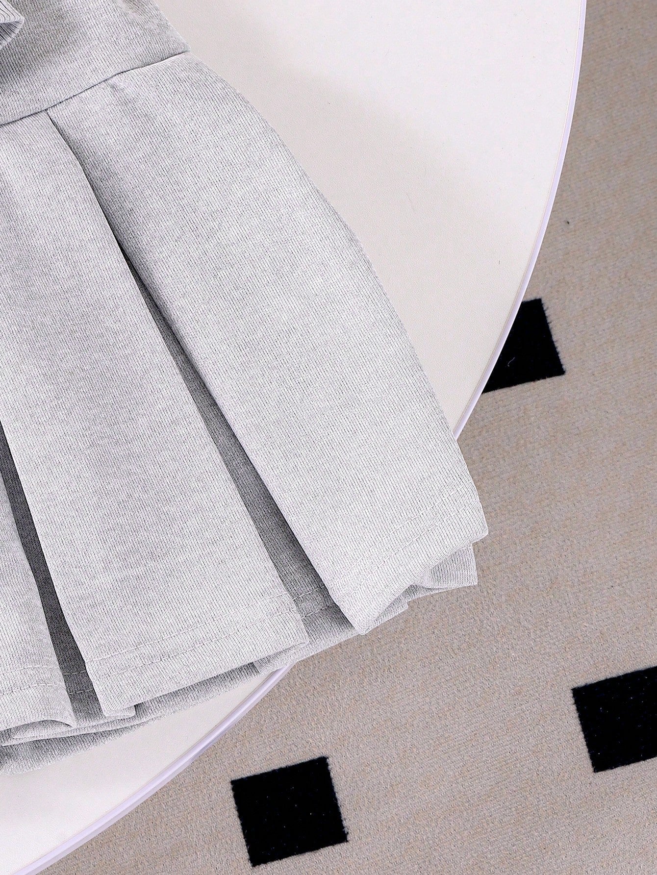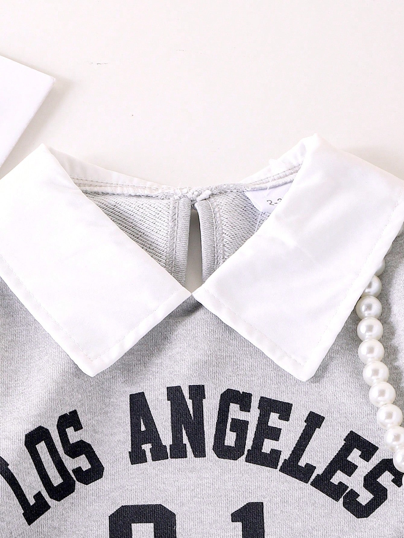 2pcs Young Girl Casual School Style Letter Print Collar Sweatshirt And Pleated Skirt Set