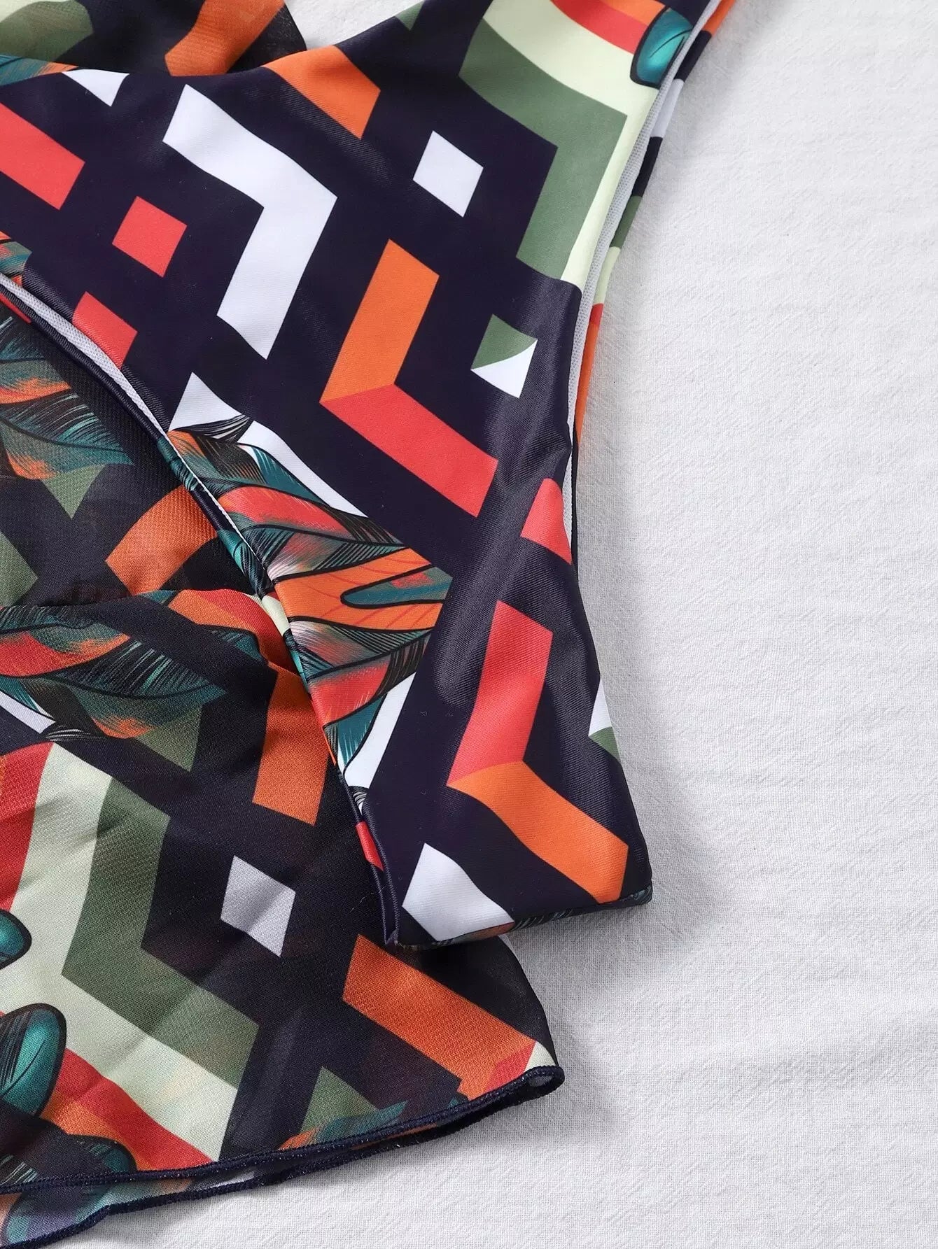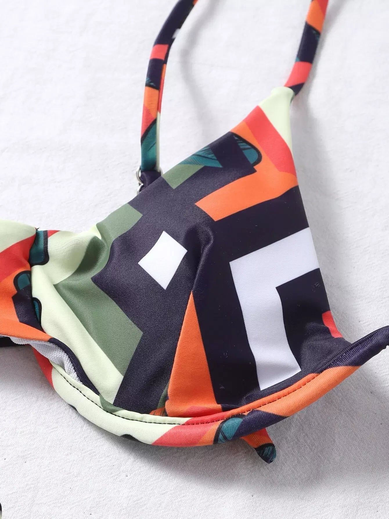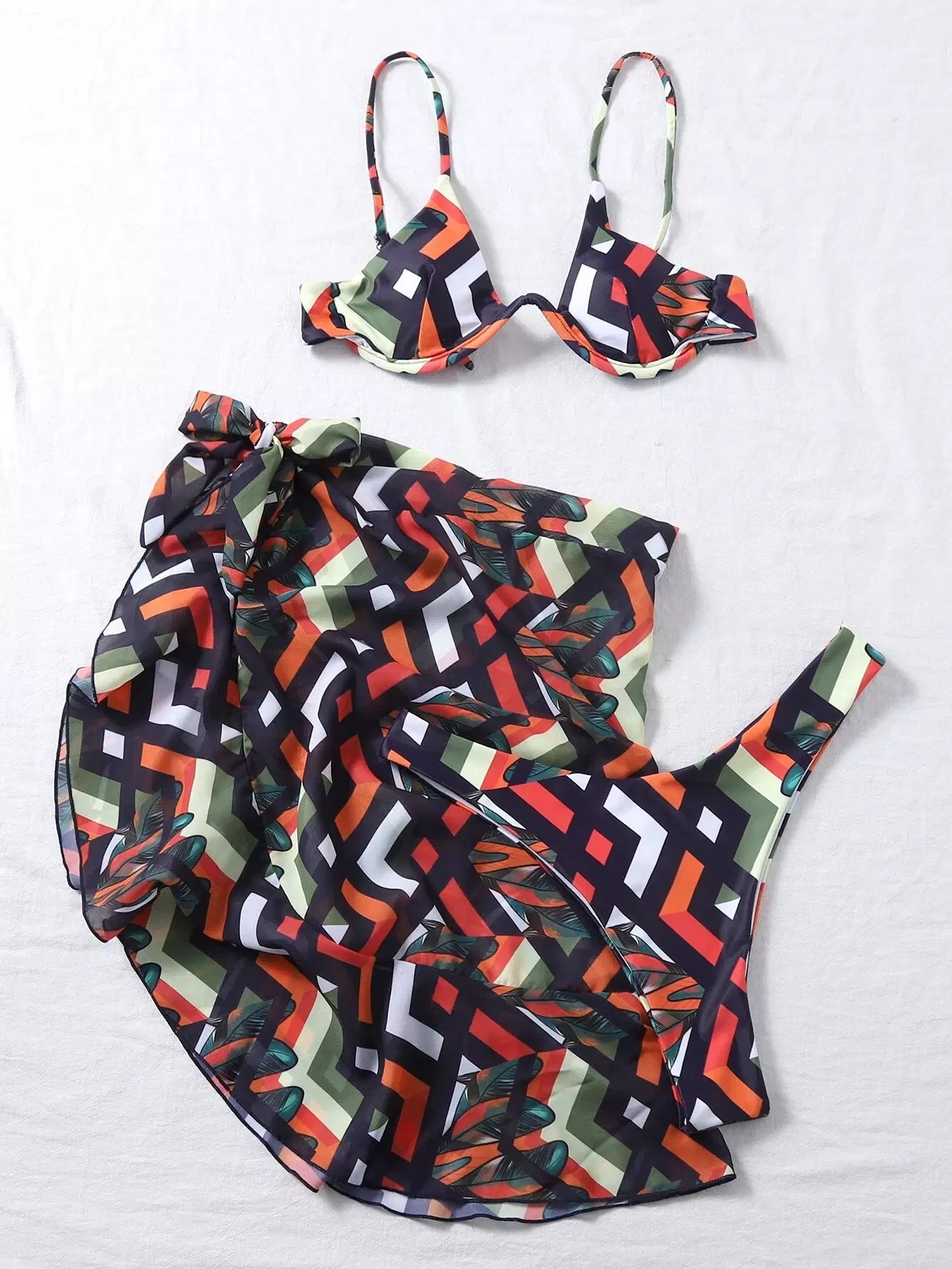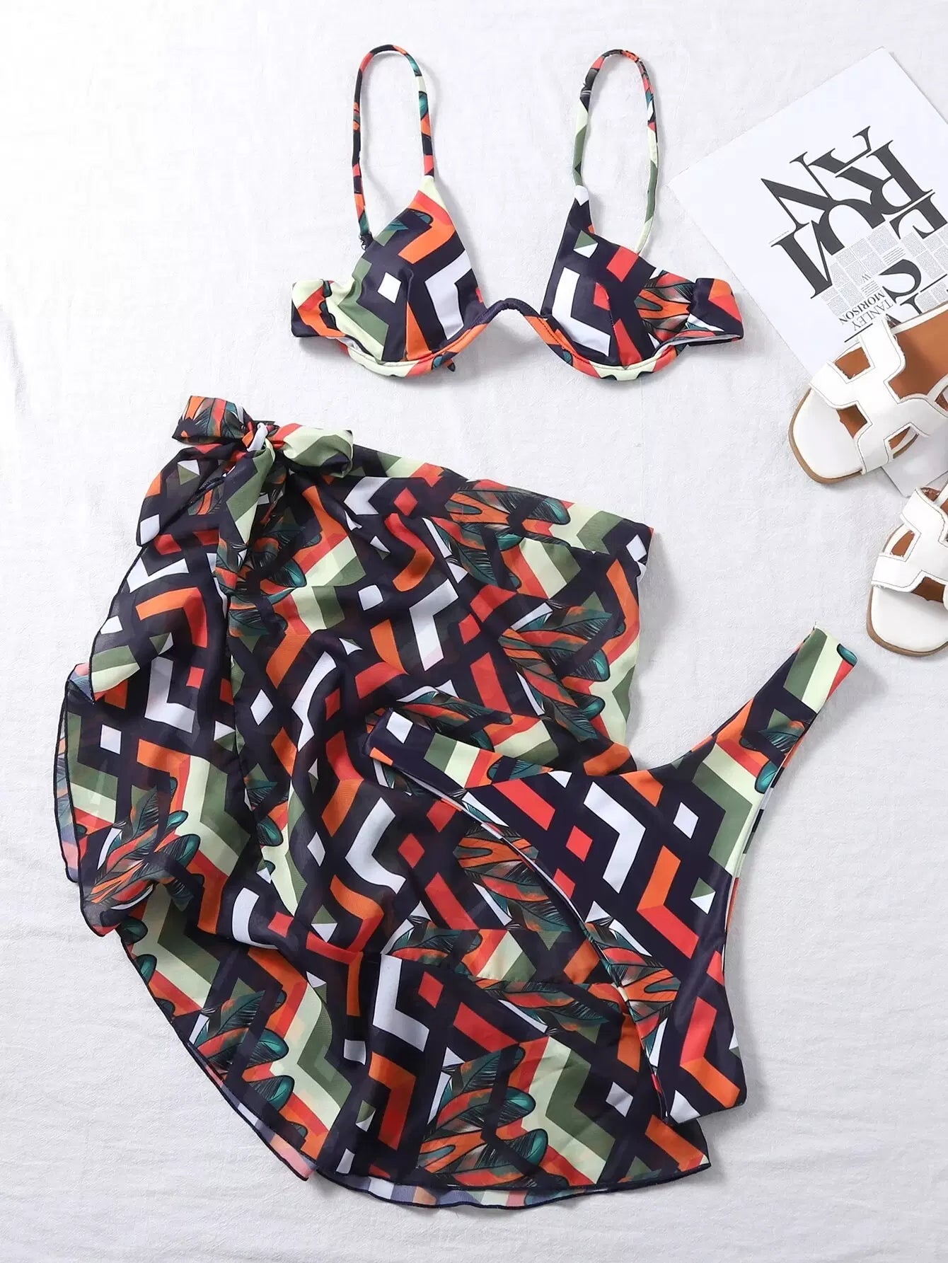3pack Geo Print Underwire Bikini Swimsuit & Beach Skirt