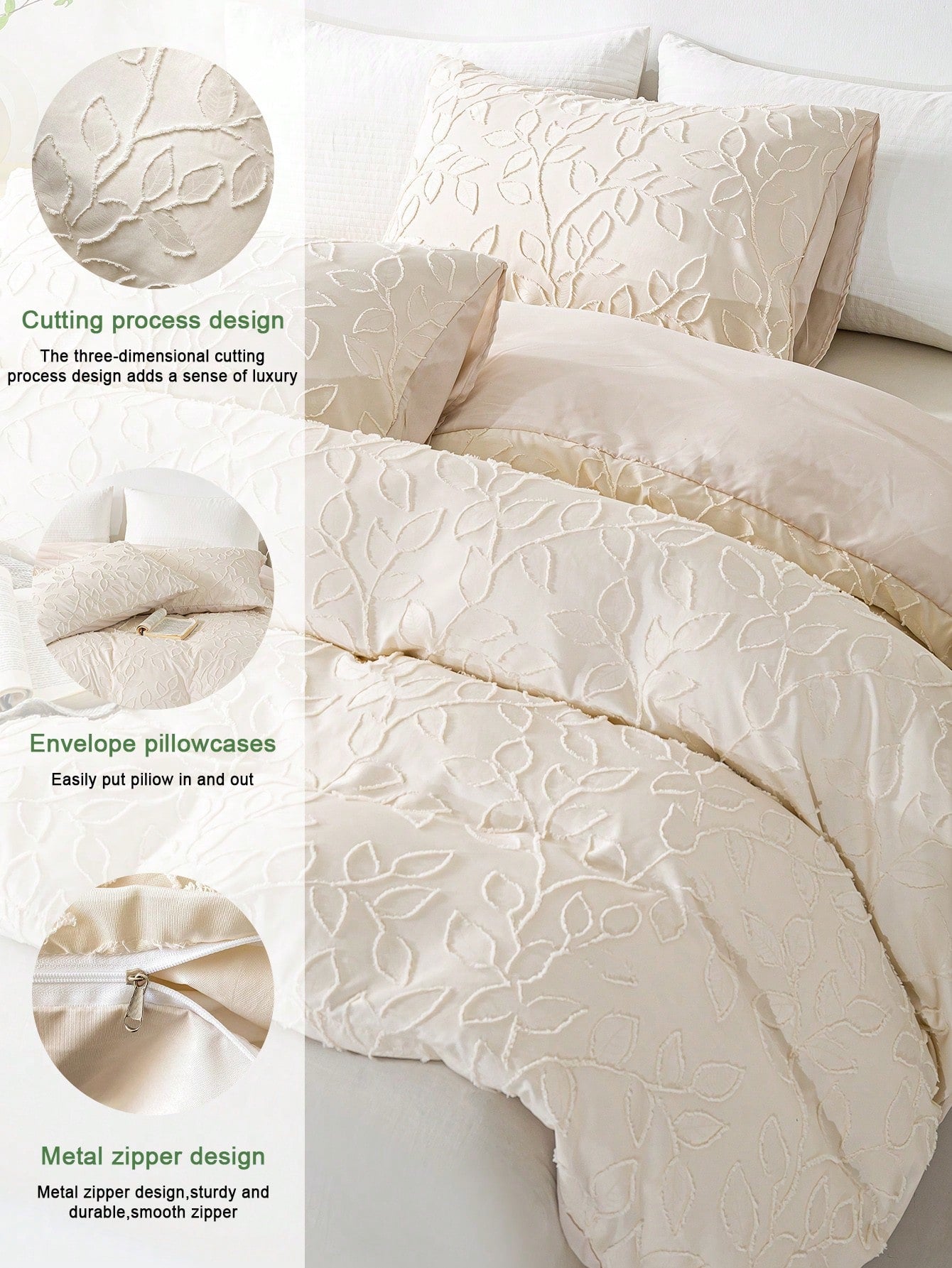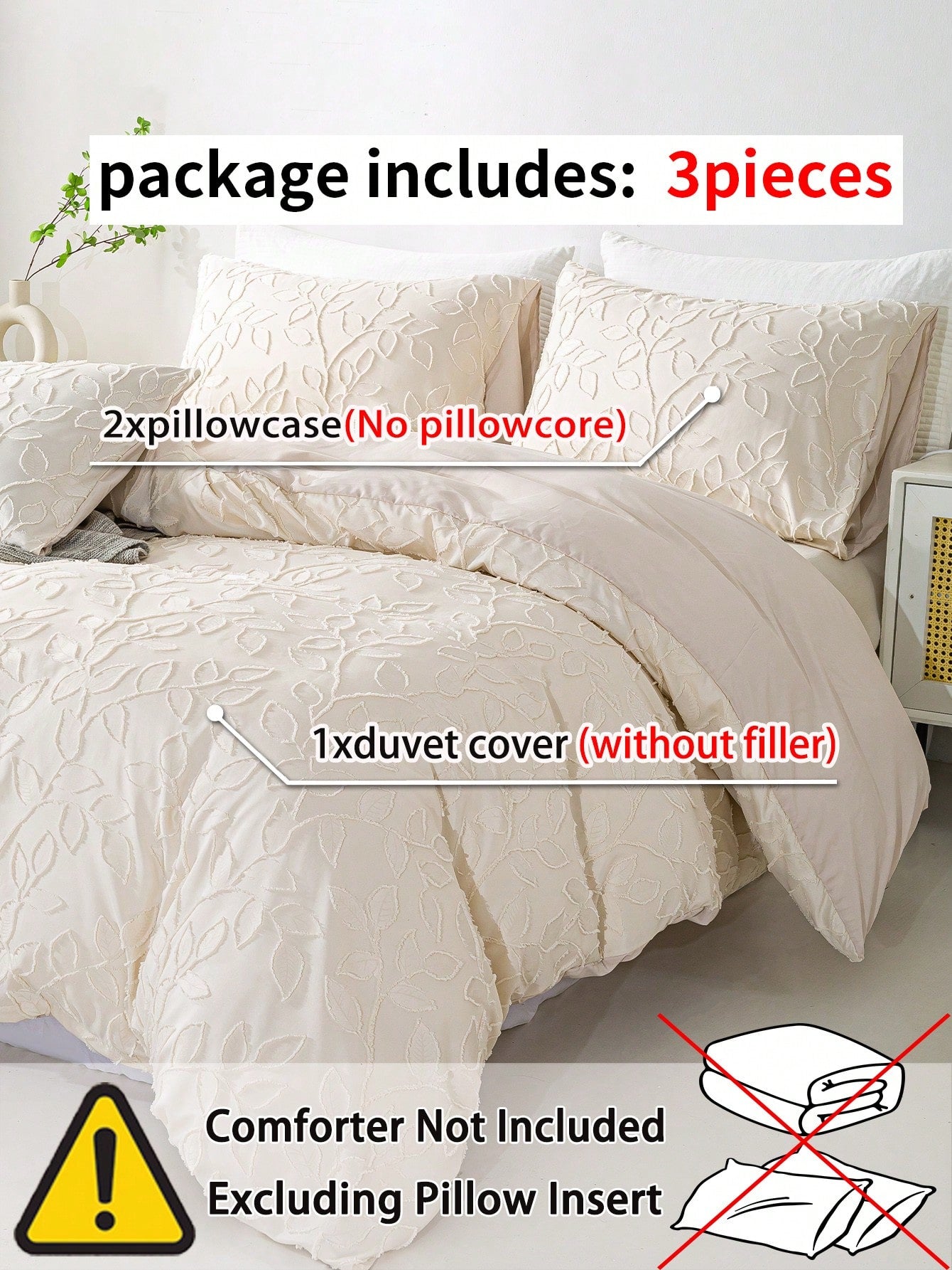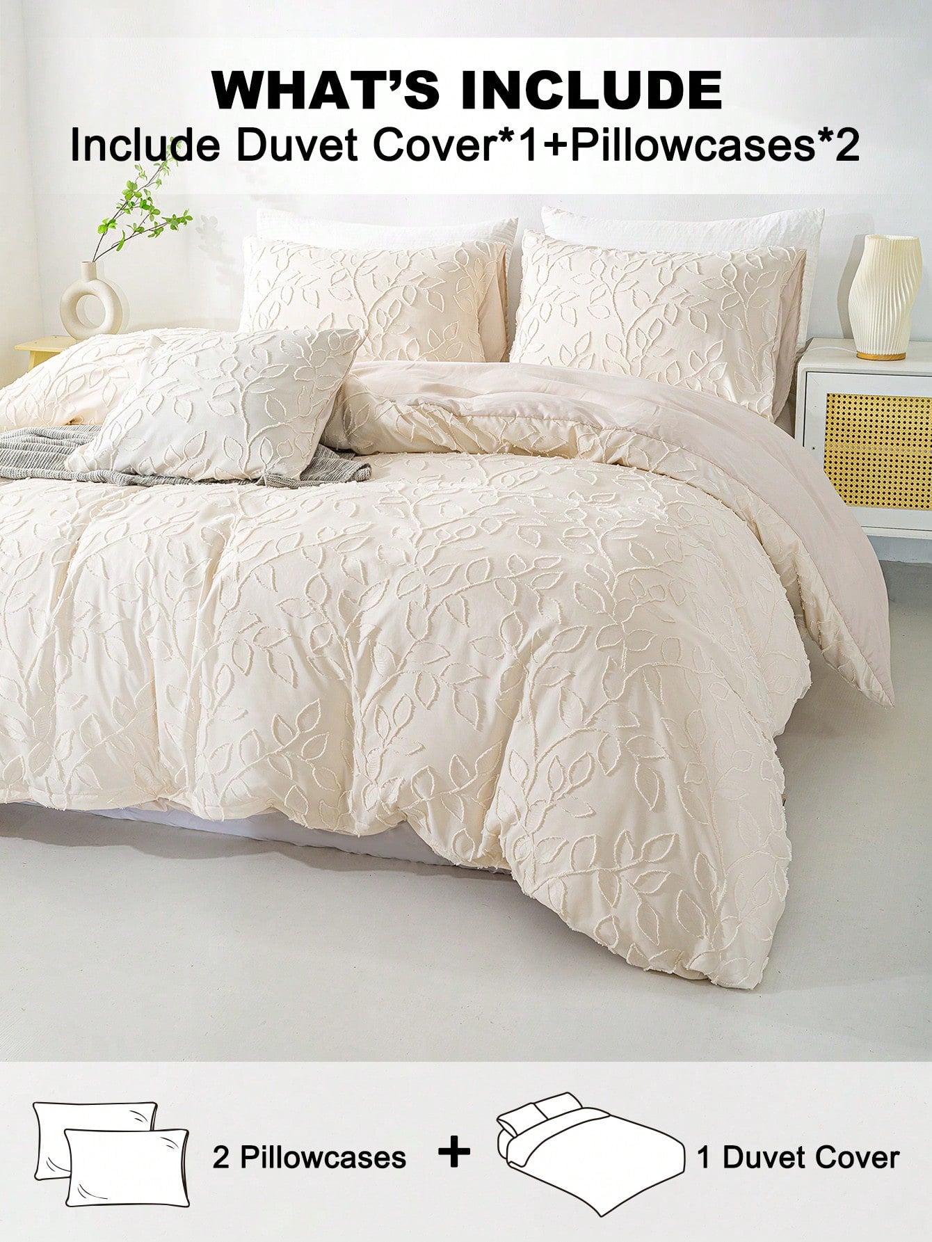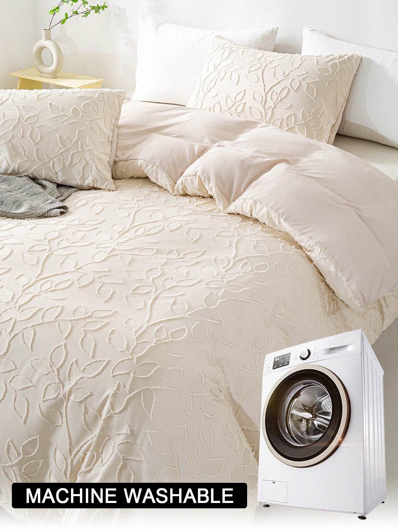 3pcs Cozy Tufted Microfiber Duvet Covers Sets(1 Duvet Cover & 2 Pillowcase)Lightweight Breathable Bed