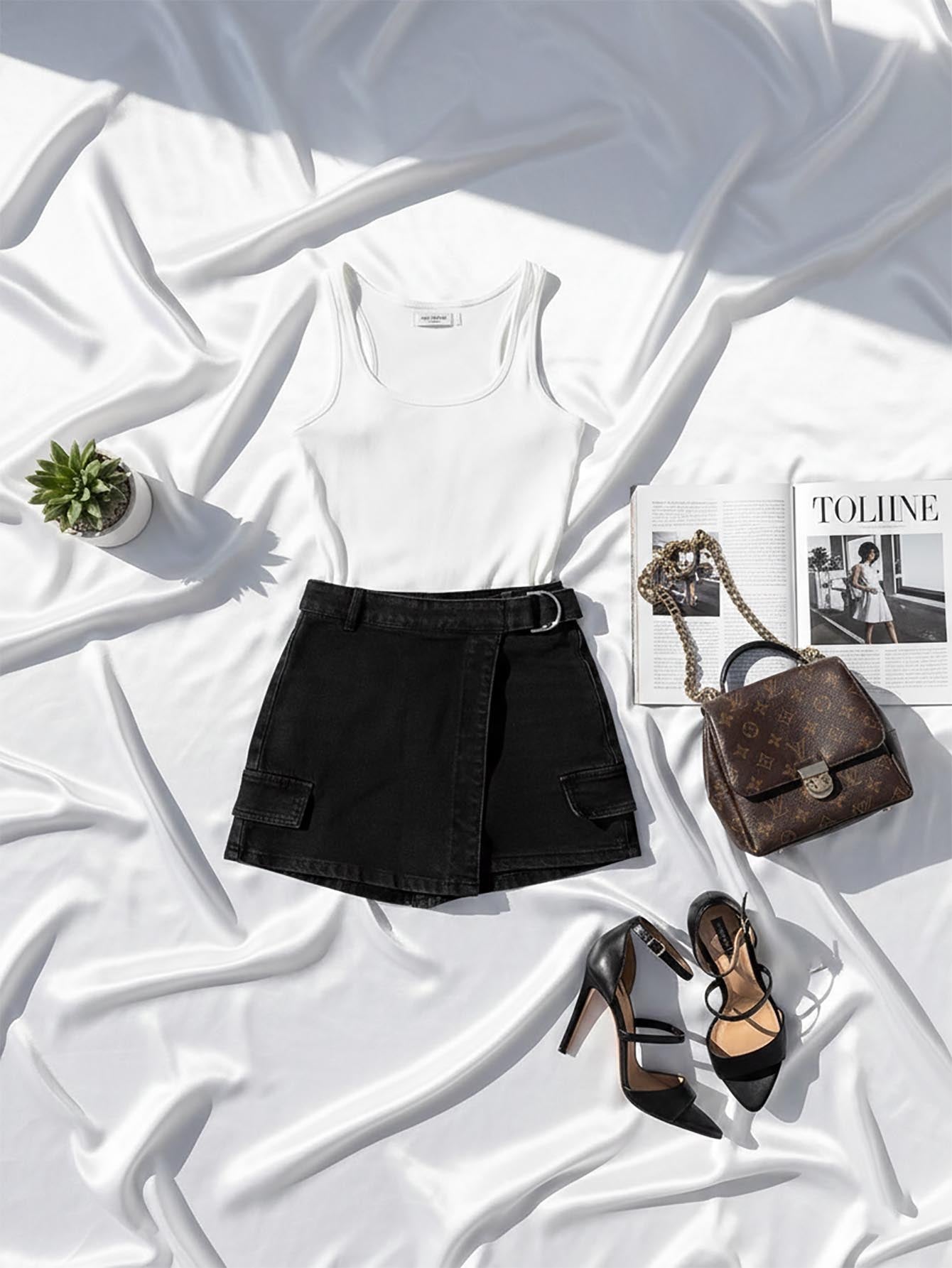 4 Season Plain Color Casual Elastic Waist Zipper Multi-Pocket Asymmetrical Hem Culottes Pants