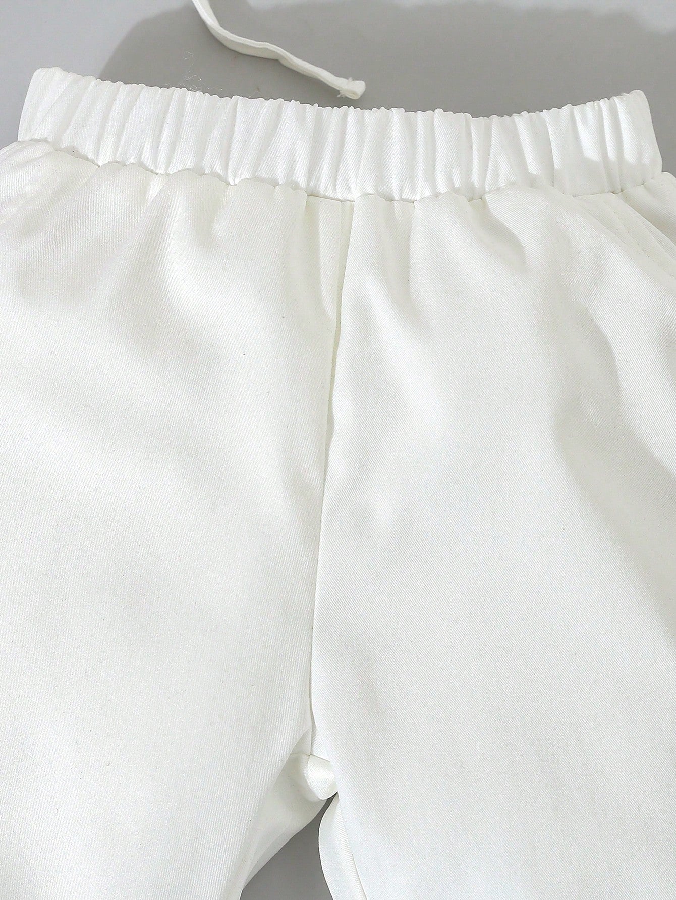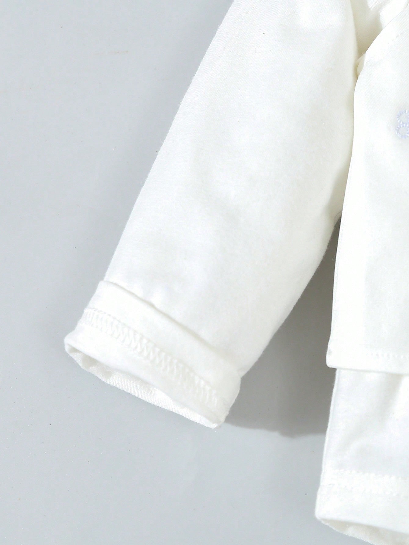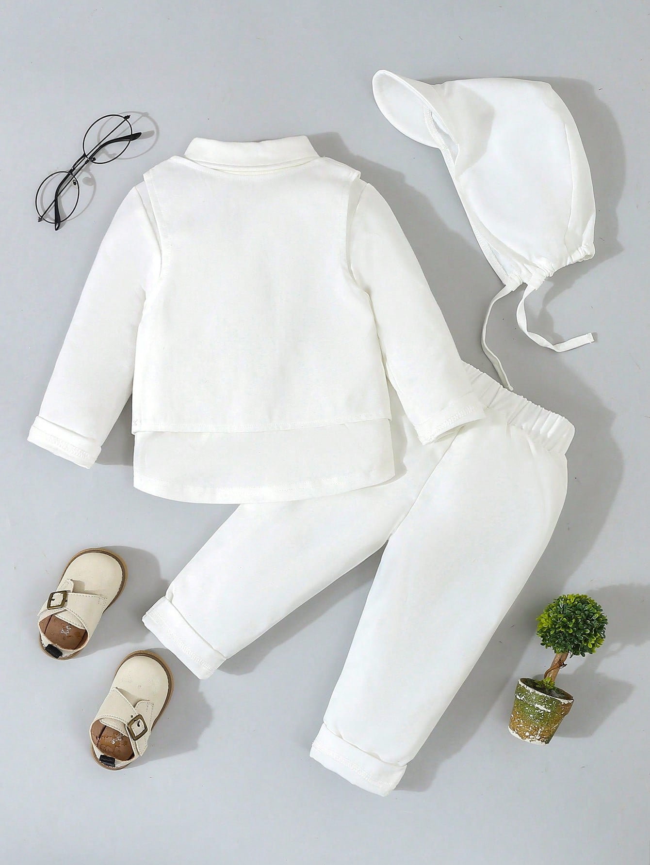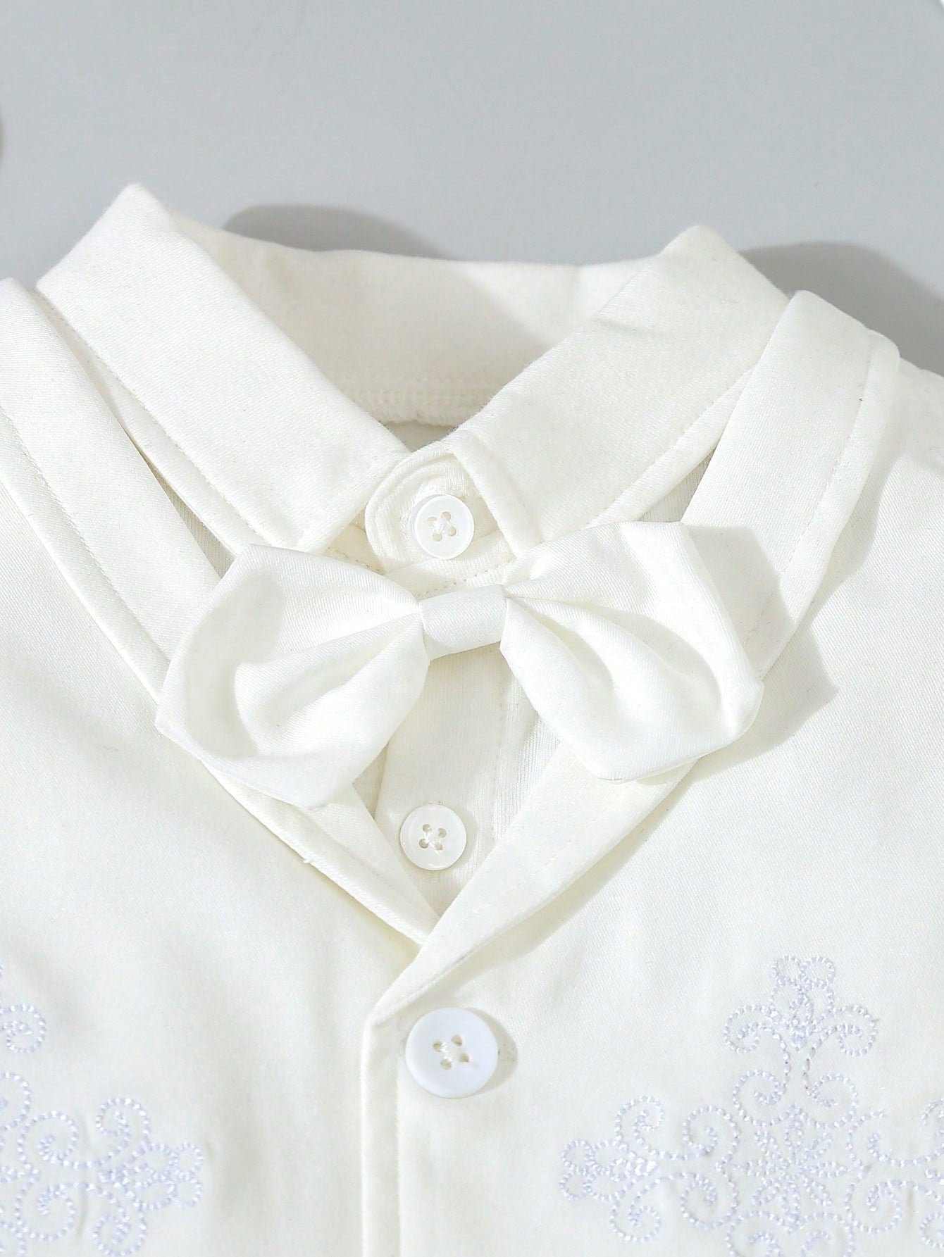 4pcs Christening Outfit Set For Baby Boys - Includes White Long Sleeve Shirt With Bow Tie