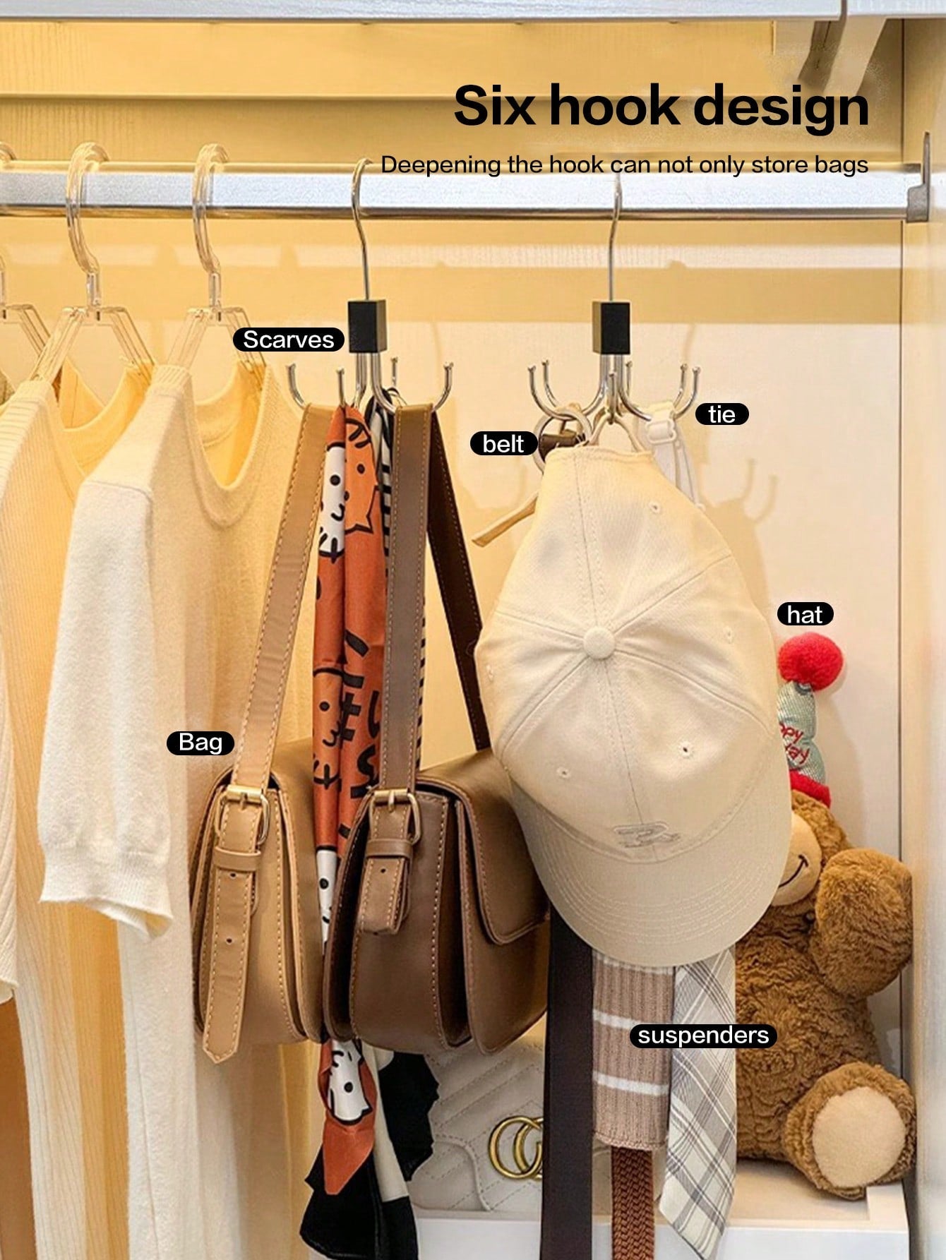 6 Hooks - Hanger - Wardrobe Organizer 360 آ° Rotatable Space-Saving Without Belt
