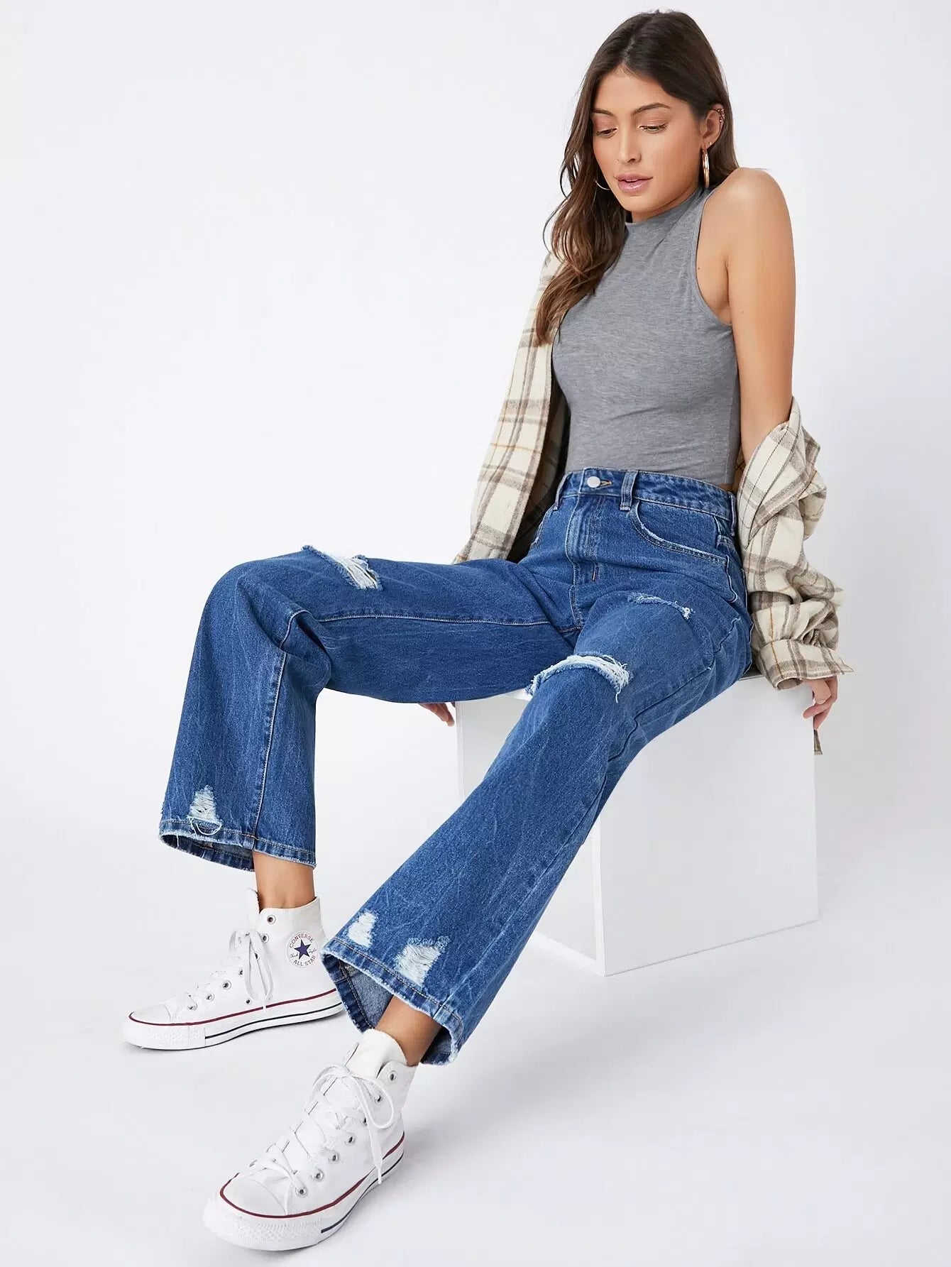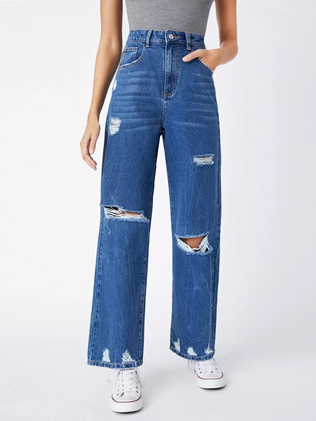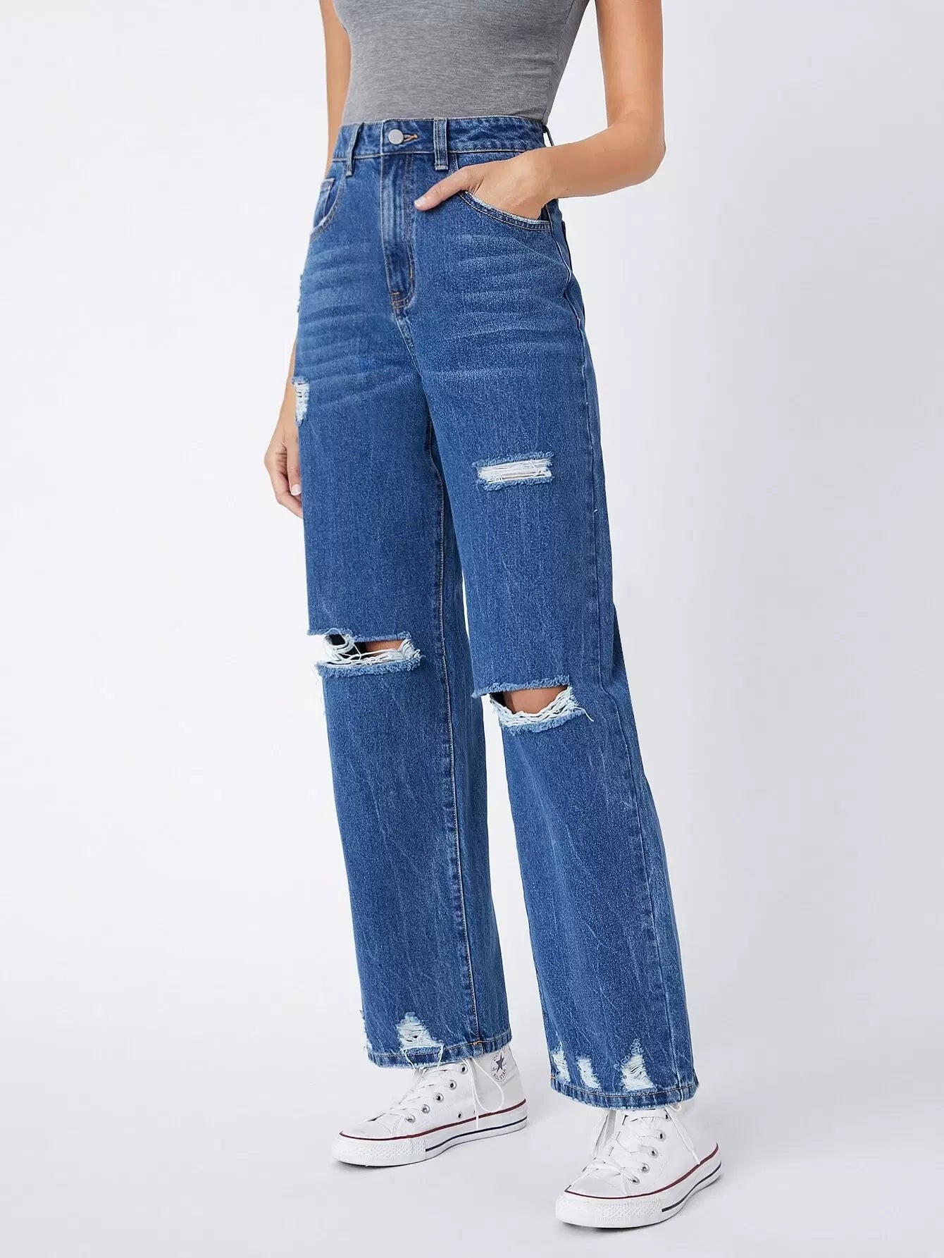 90s vintage High-Waist Denim Straight Boyfriend Jeans