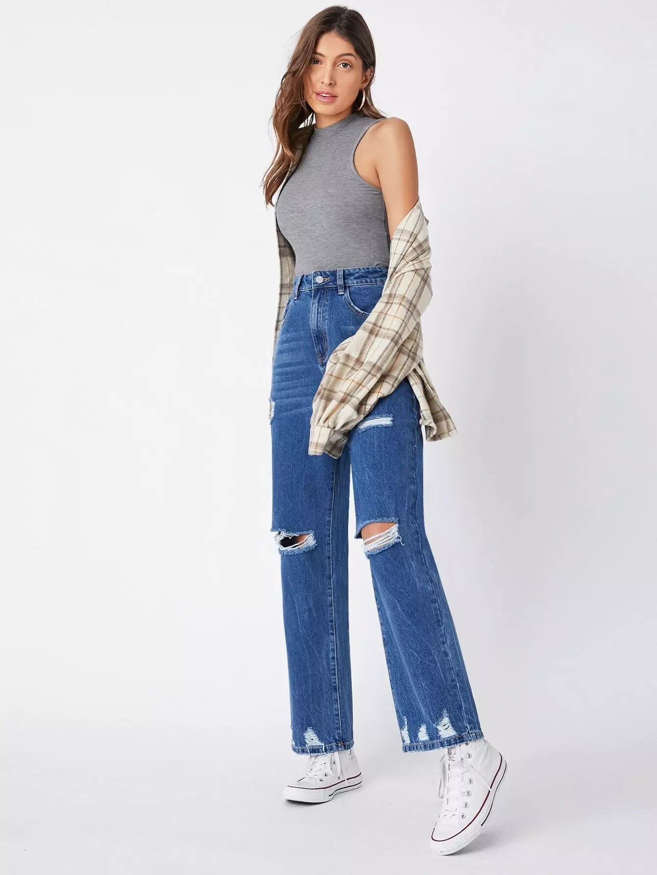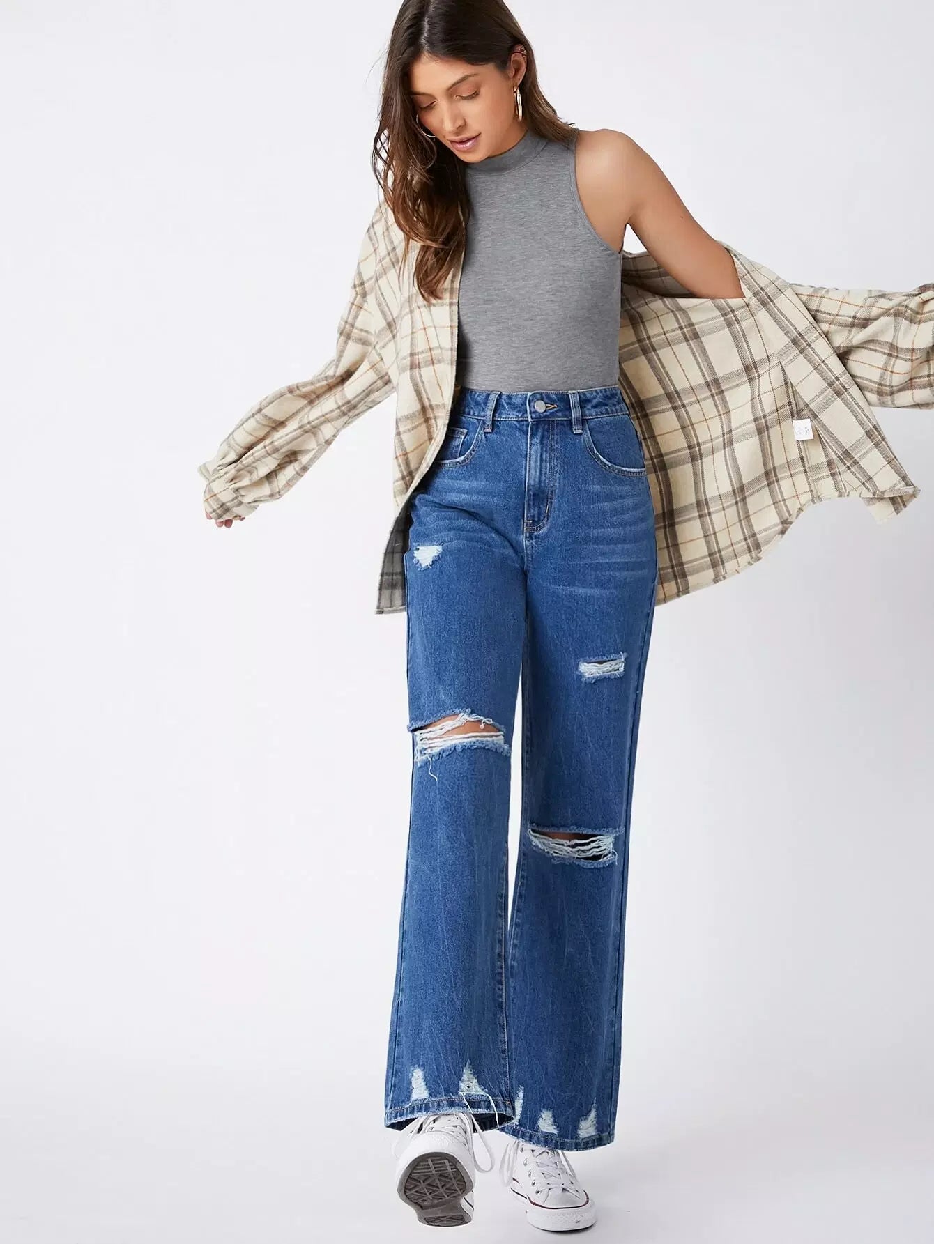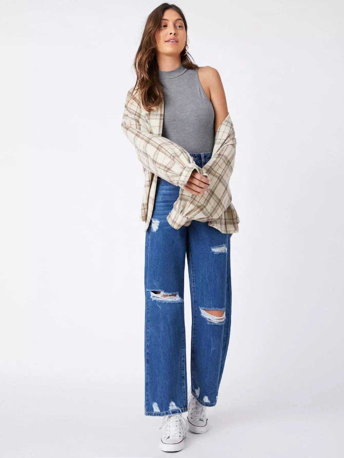 90s vintage High-Waist Denim Straight Boyfriend Jeans