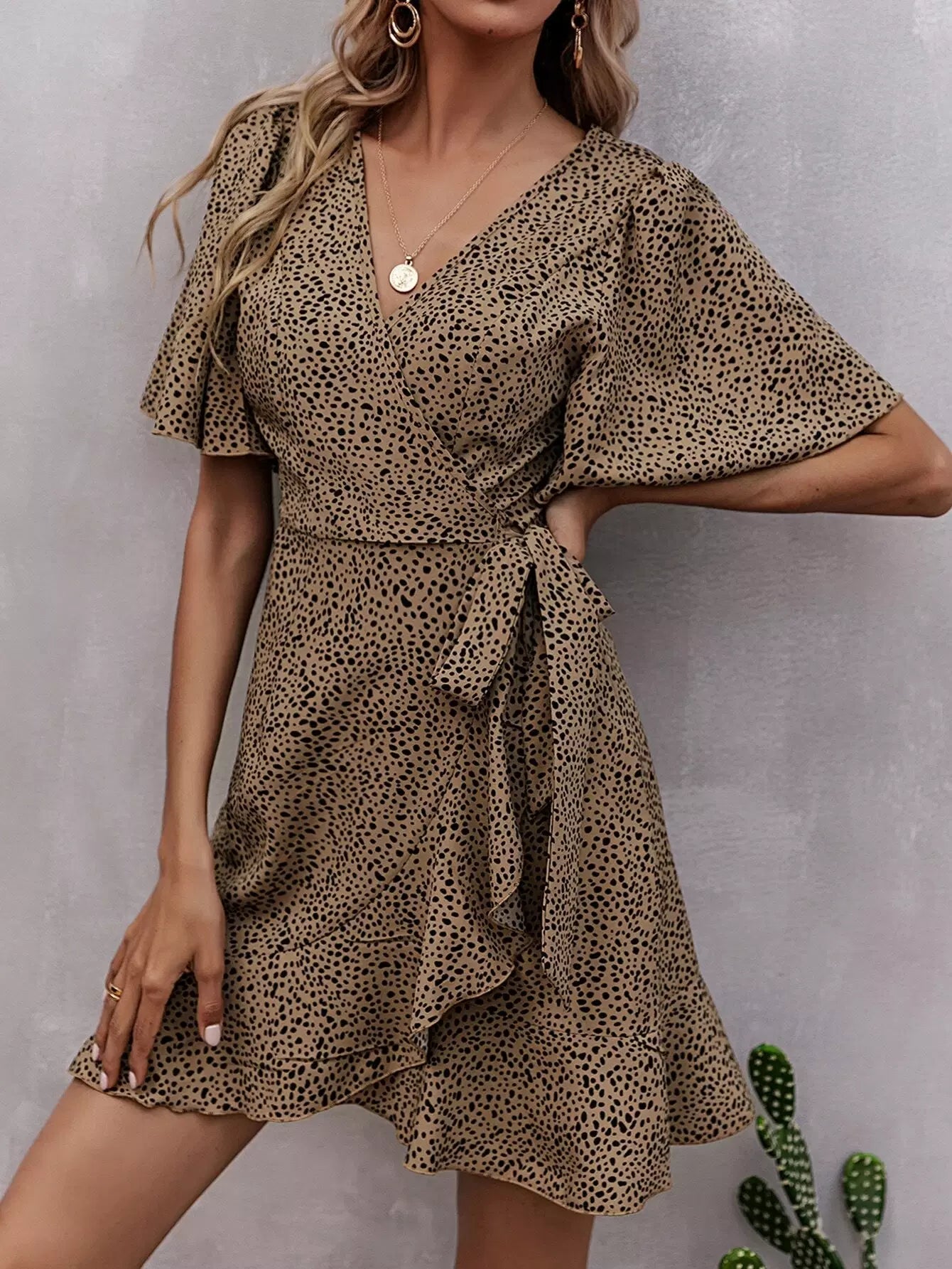 All Over Print Self Tie Wrap Dress