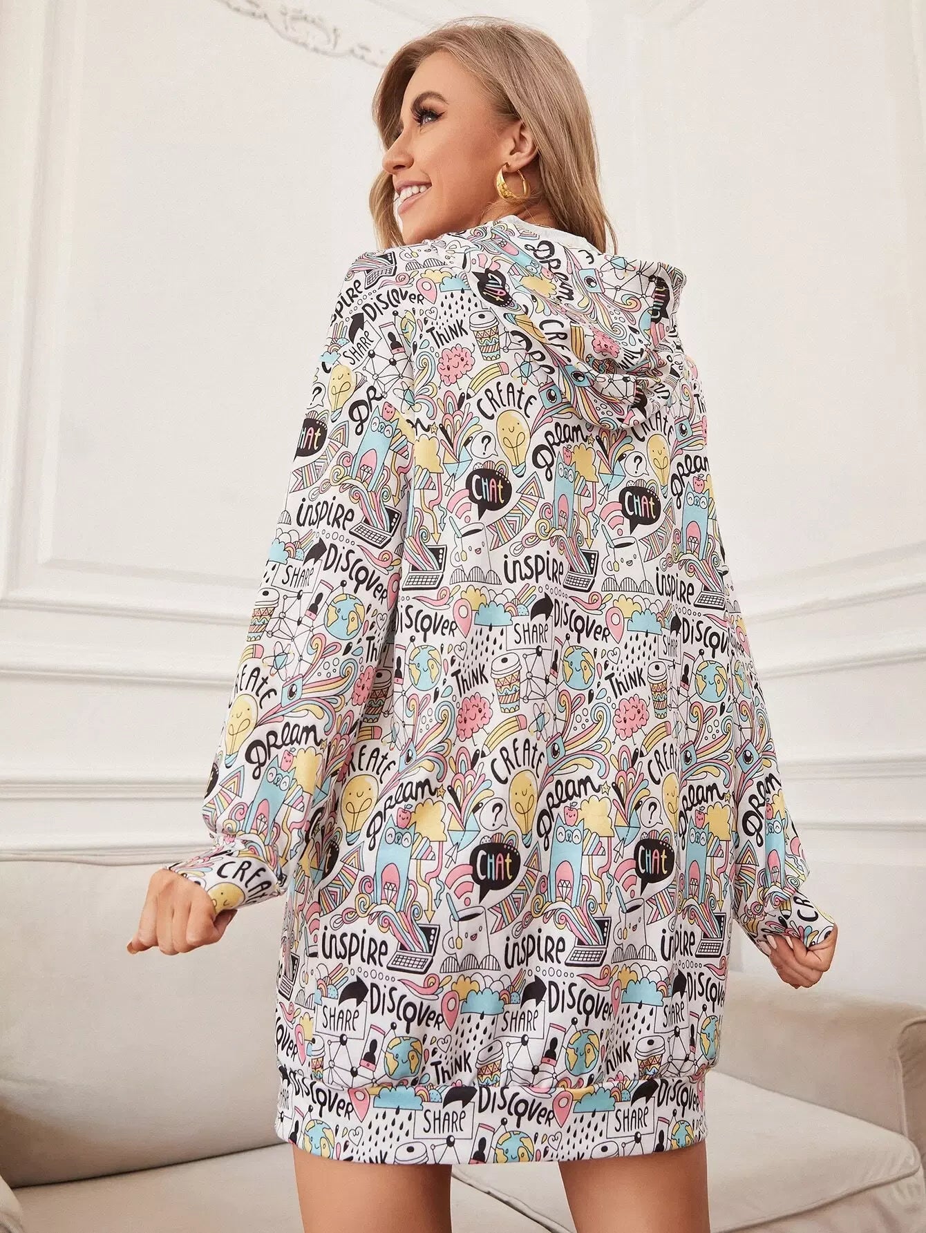 Allover Cartoon And Letter Graphic Sweatshirt Dress