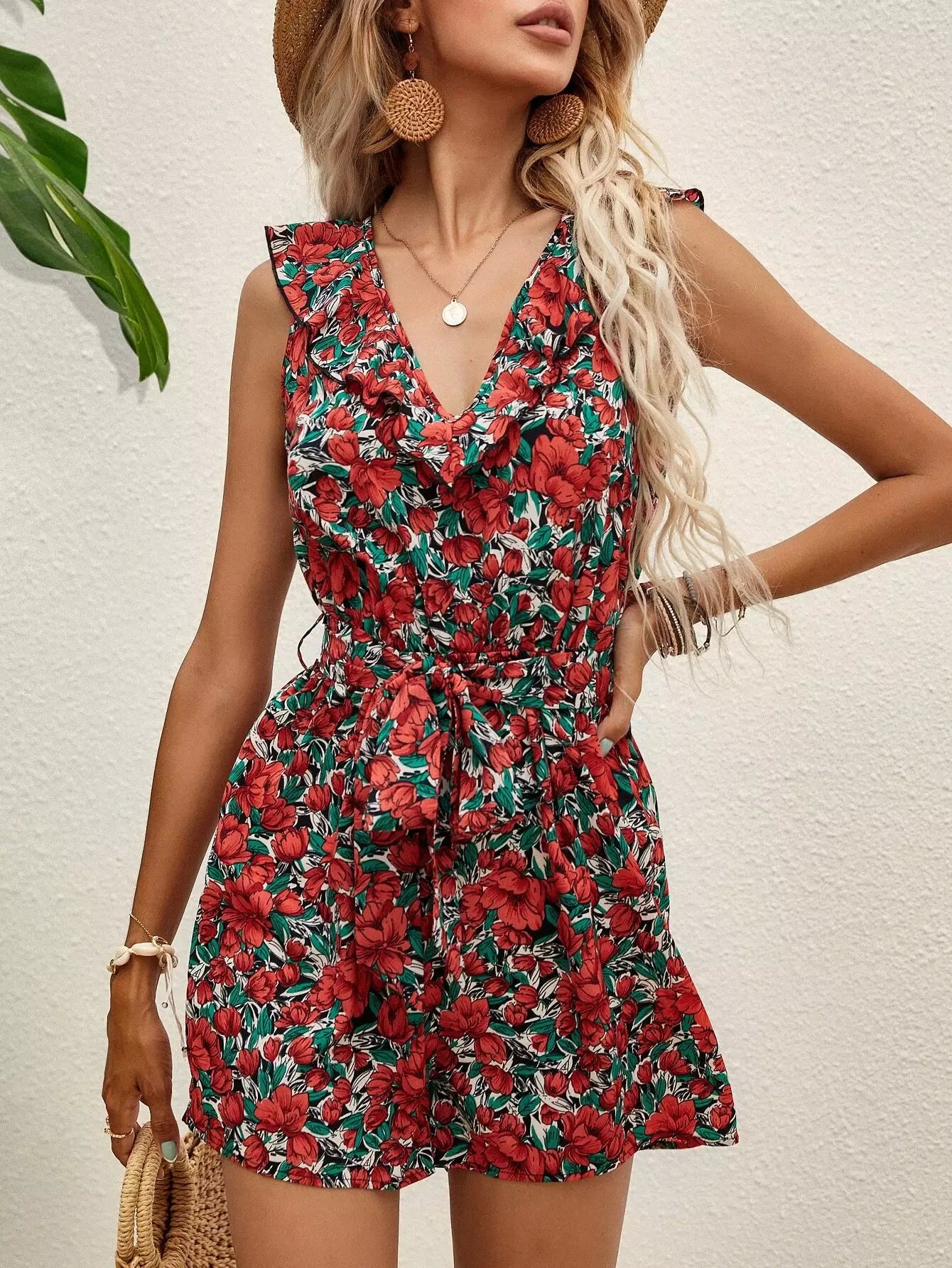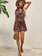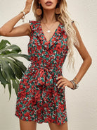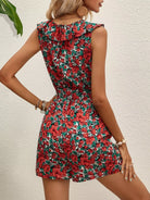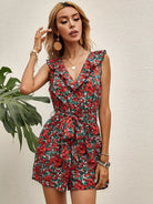 Allover Floral Ruffle Trim Romper Without Belt