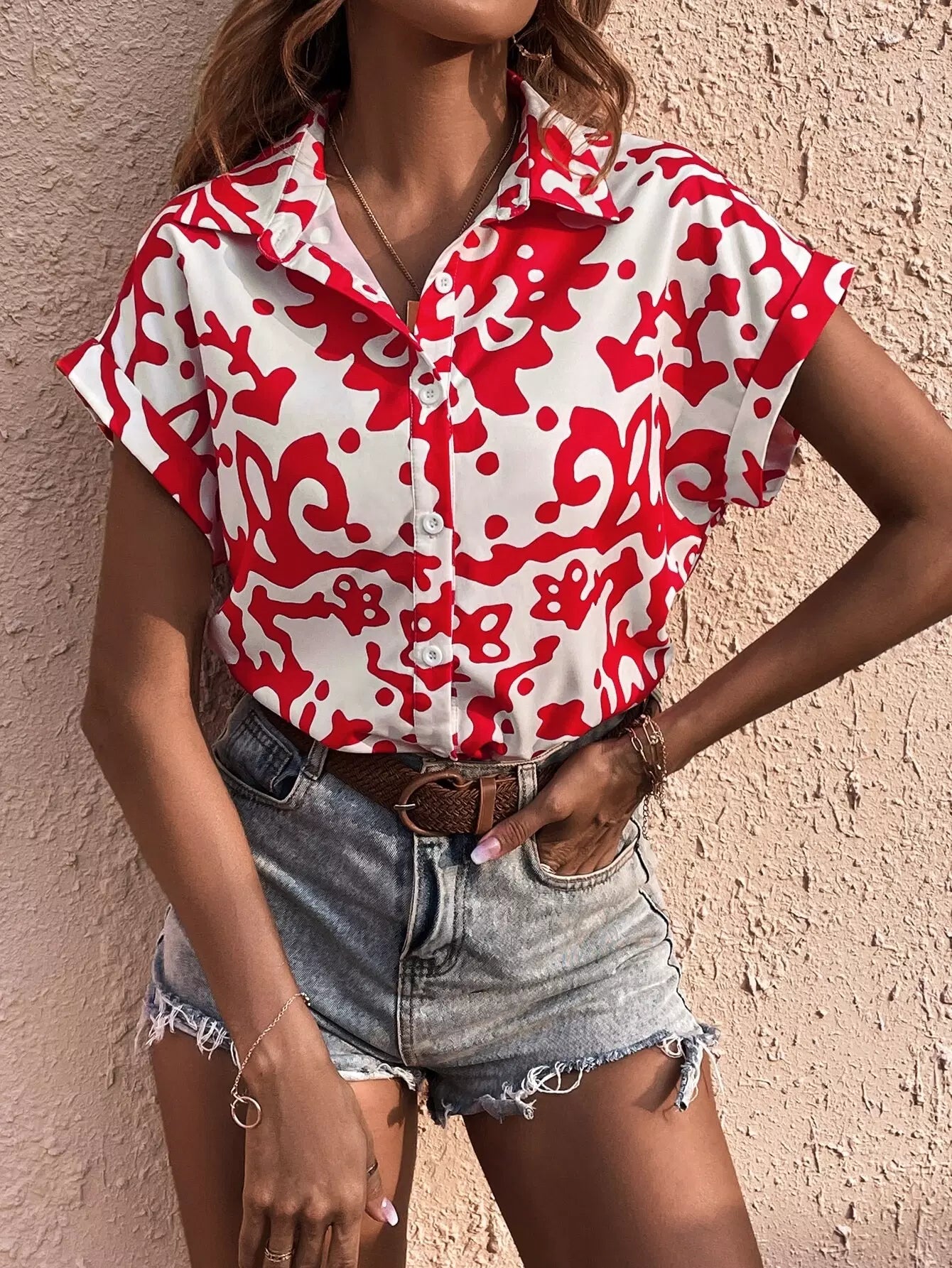 Allover Print Roll Up Sleeve Button Trough Shirt