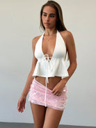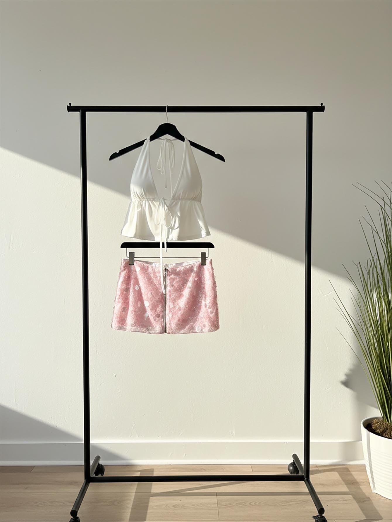 Aloruh Shiny Pink Sequin Embellished Low Waist Mini Shorts For Young Women