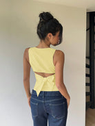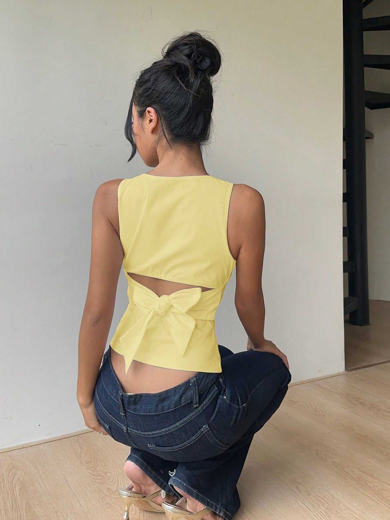 Aloruh Women's Commuting & Daily Wear Backless Bow Decor Round Neck Sleeveless Shirt
