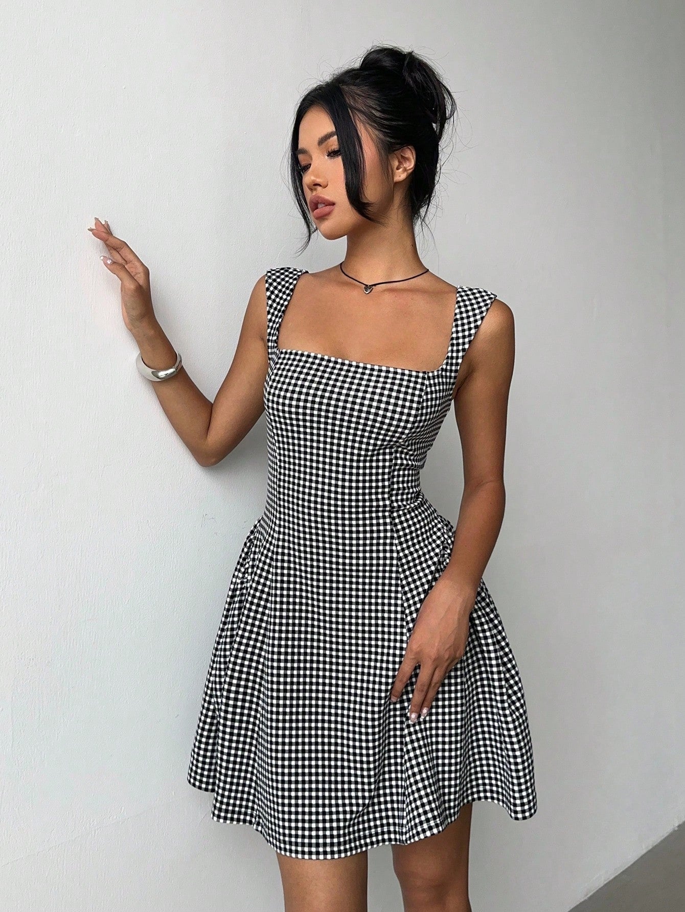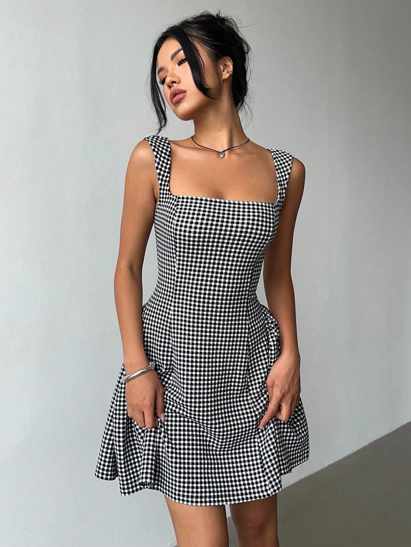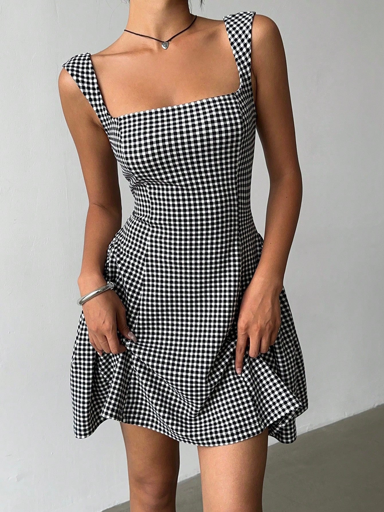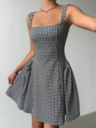 Aloruh Women's Summer Casual Plaid Cinched Waist Sleeveless Mini Dress