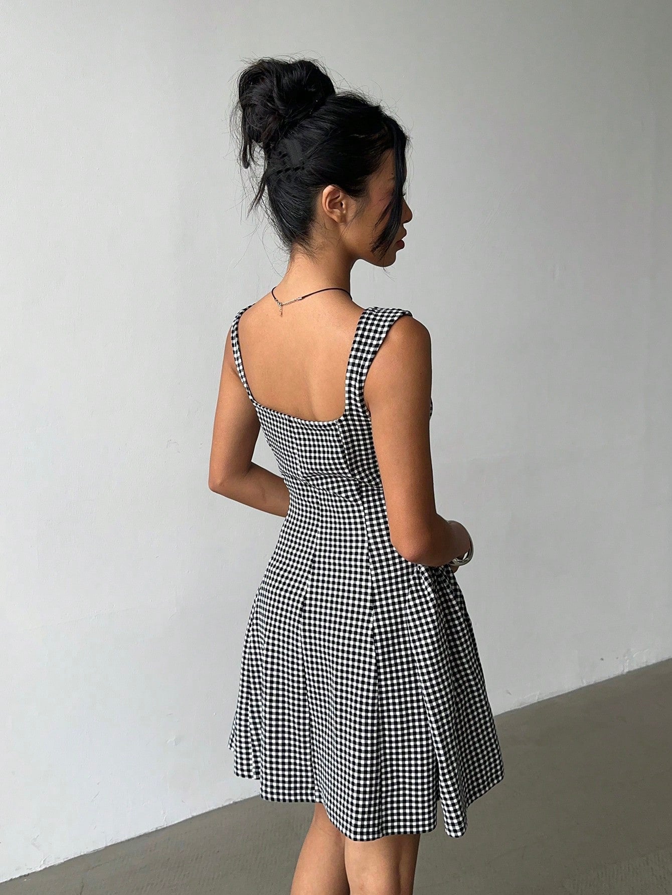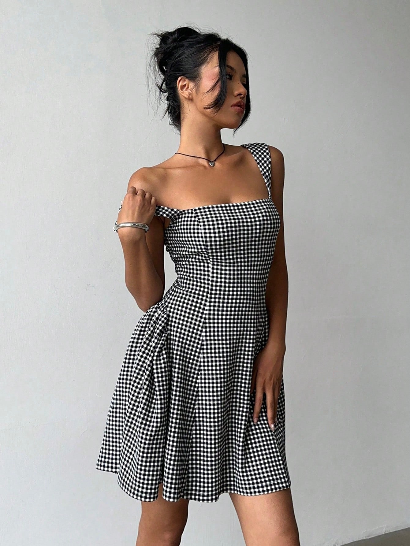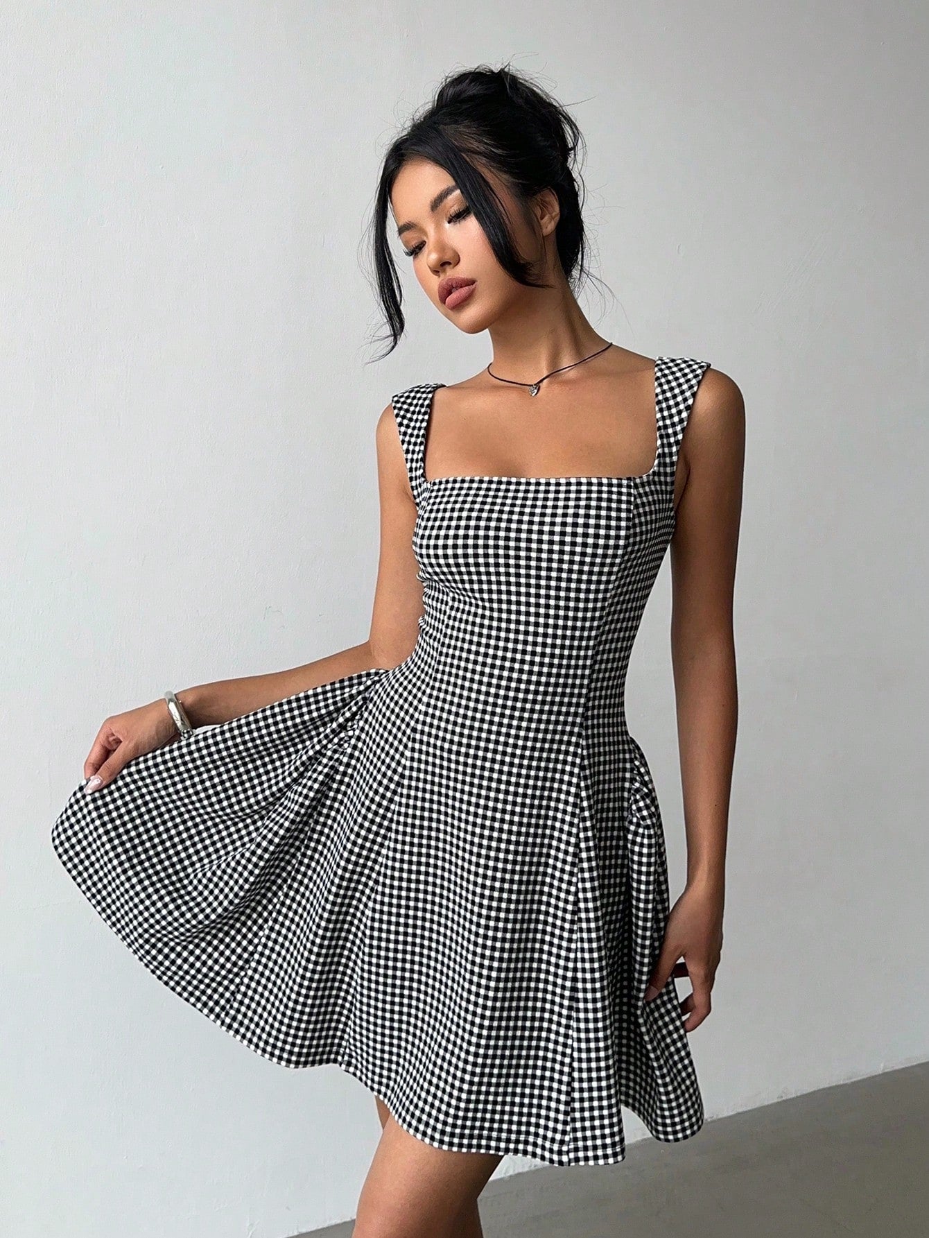 Aloruh Women's Summer Casual Plaid Cinched Waist Sleeveless Mini Dress