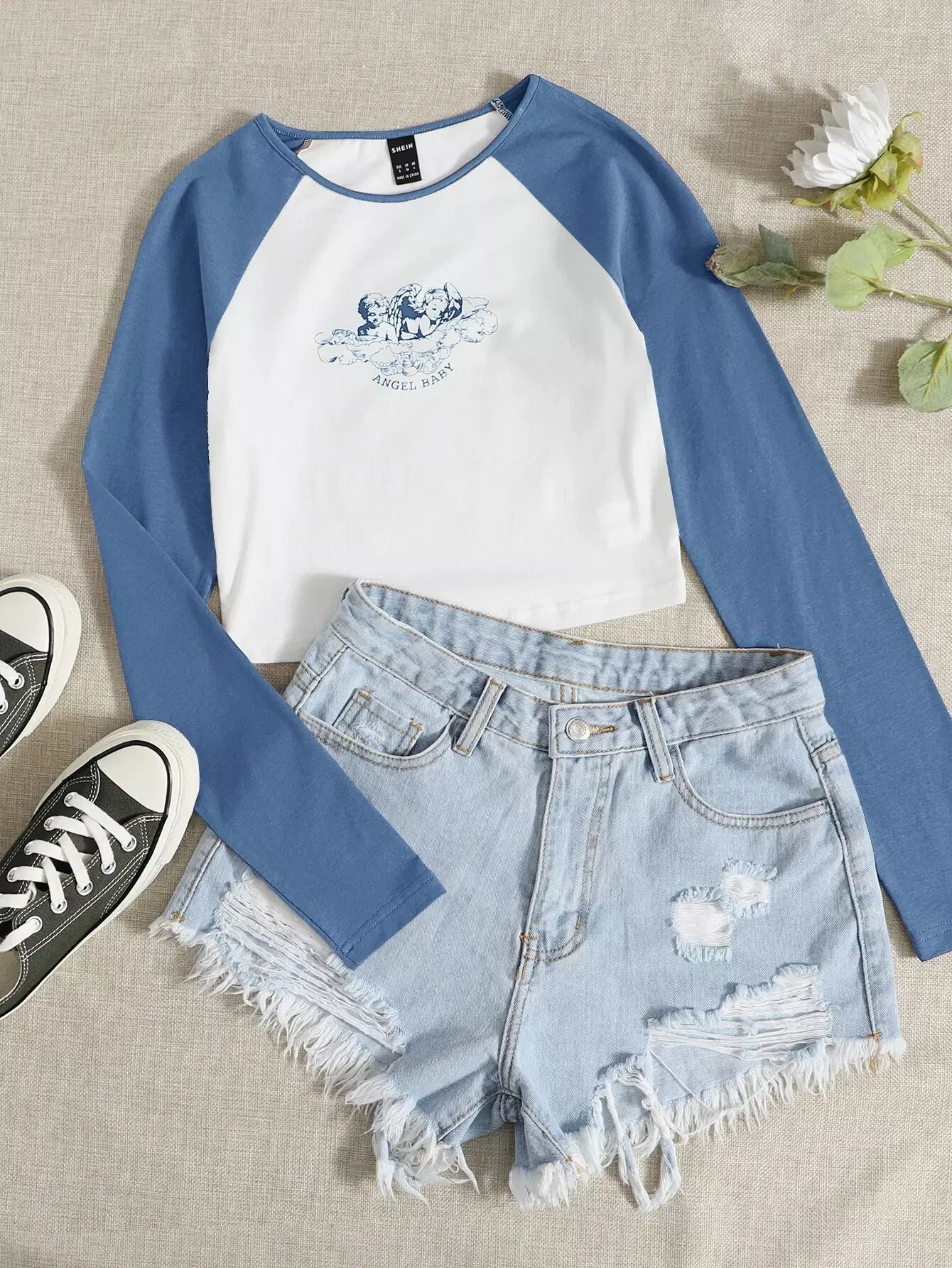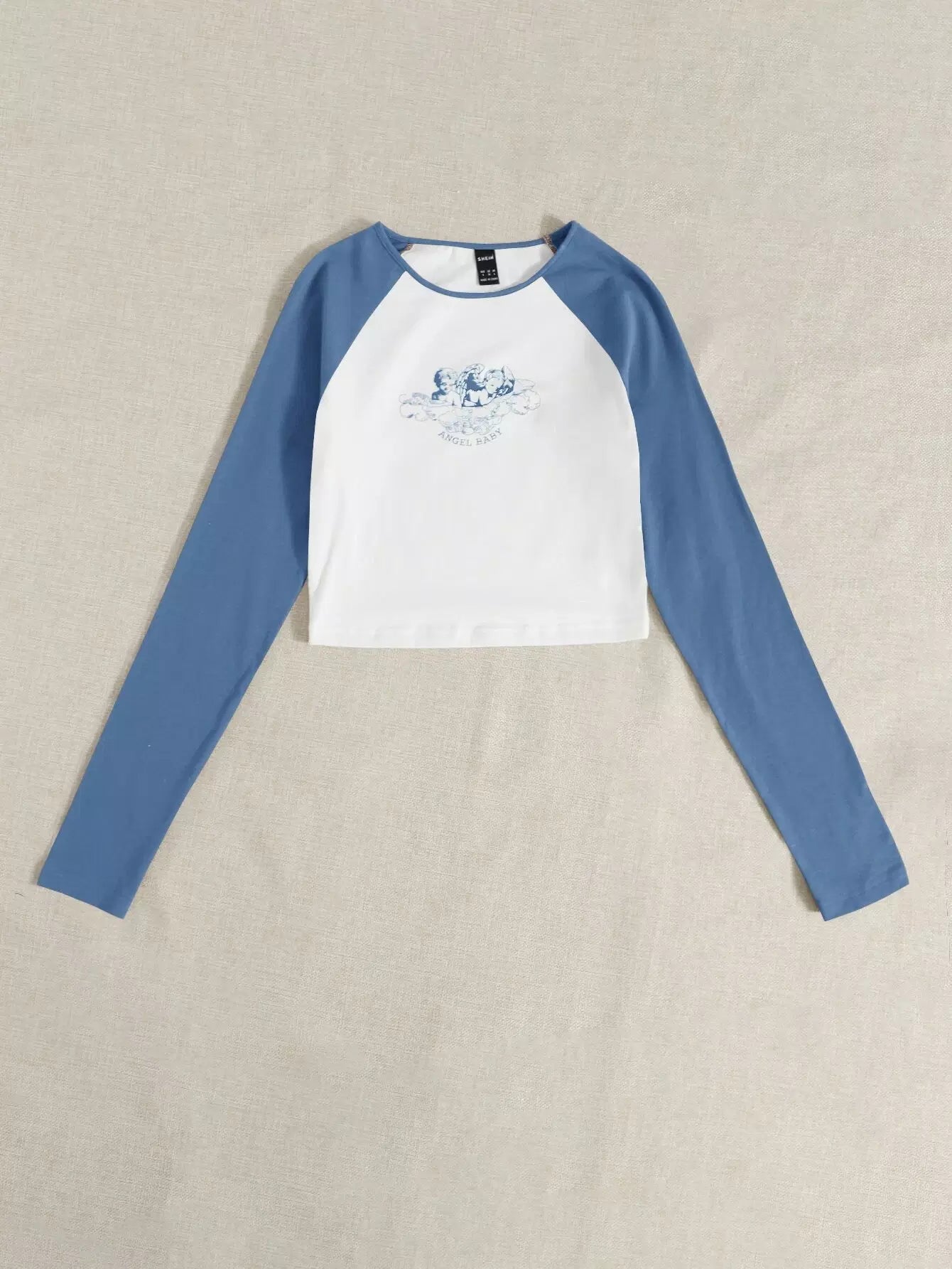 Women - Angel & Letter Graphic Raglan Sleeve Top