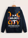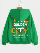 Argyle & Letter Graphic Drop Shoulder Drawstring Zipper Thermal Hoodie