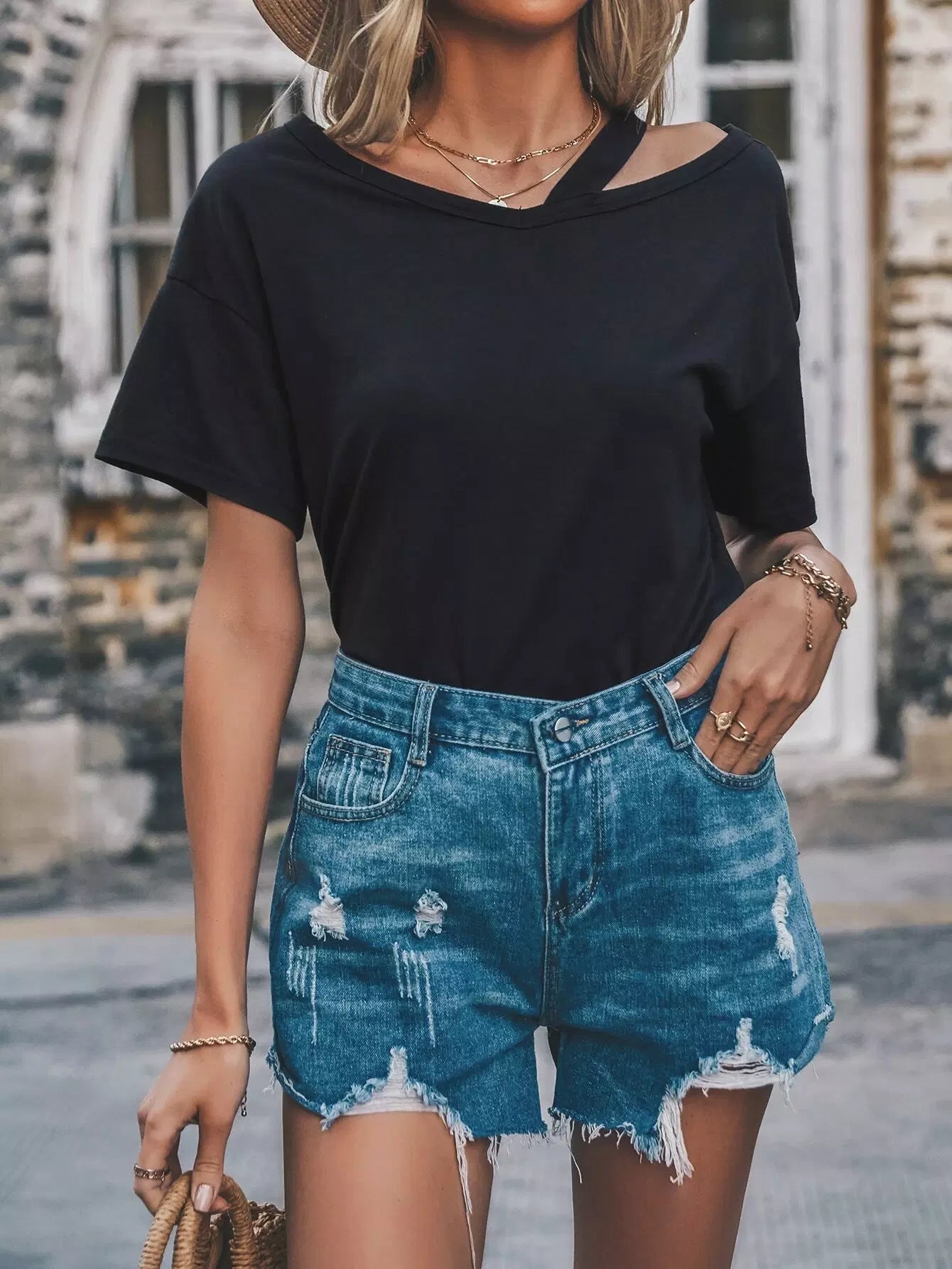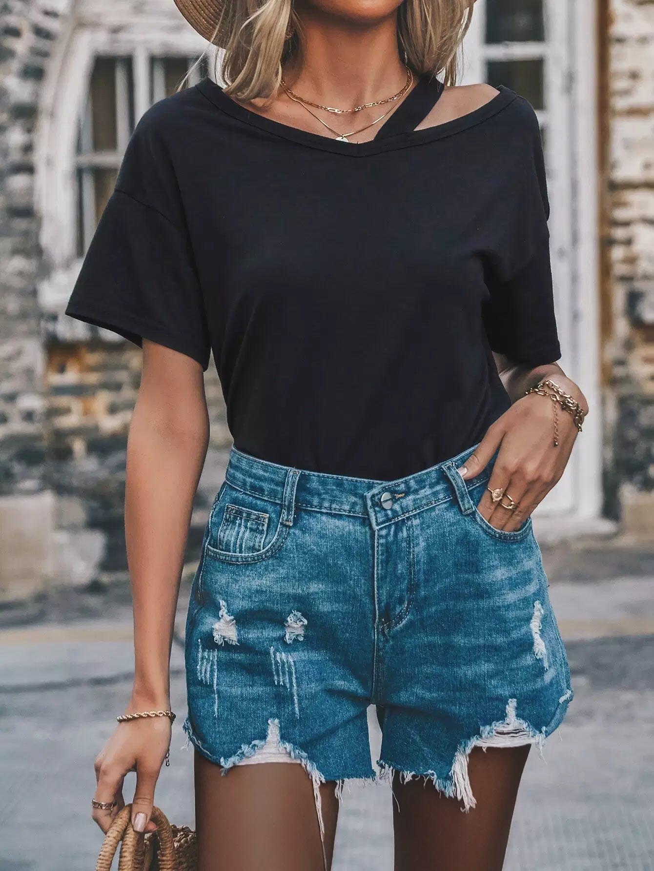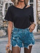 Asymmetrical Neck Drop Shoulder Tee