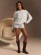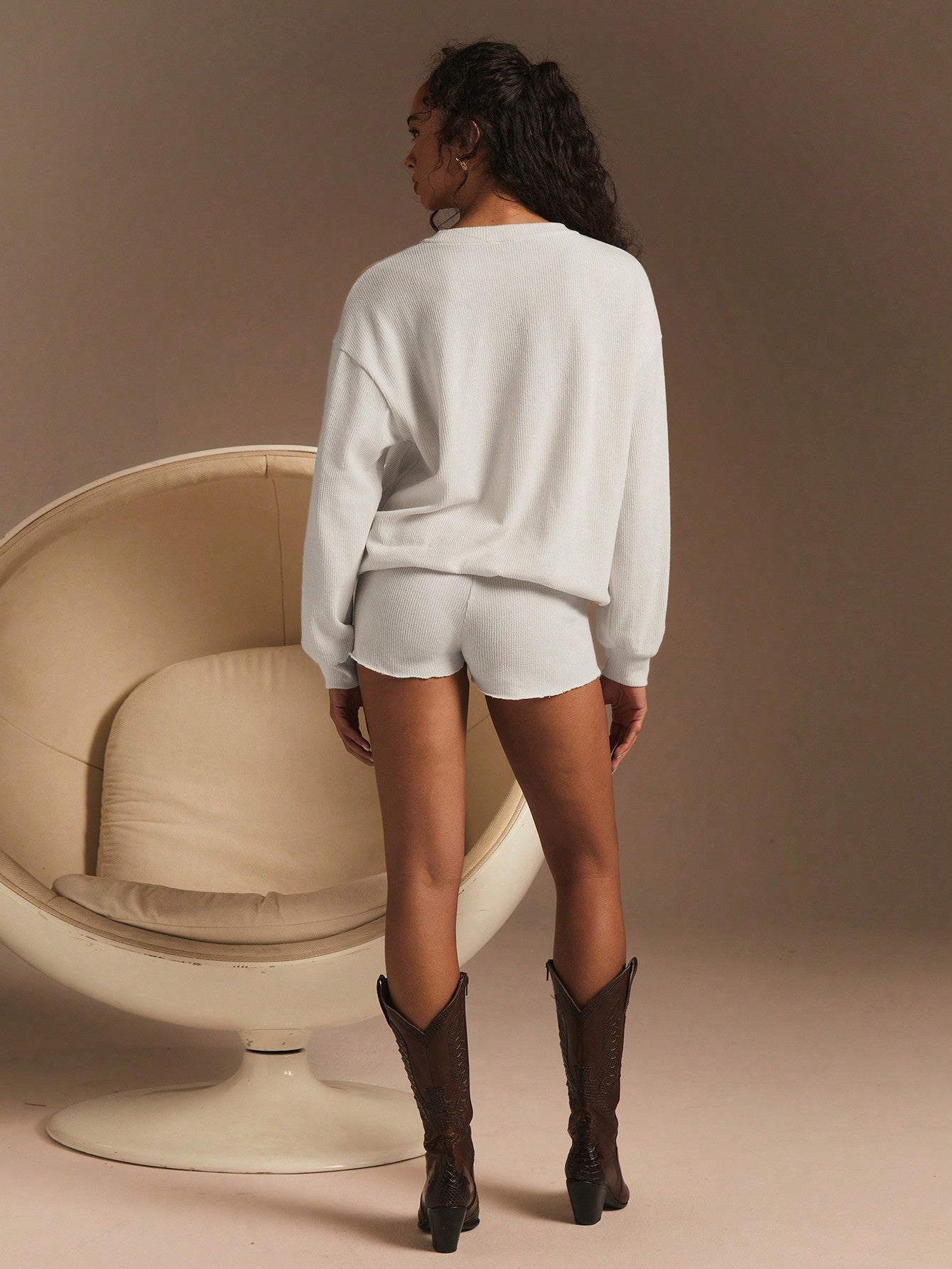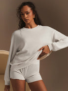 Ath?ral 2pcs Women Solid Color Long Sleeve Top And Shorts Set, Simple & Fashionable Casual Everyday Wear