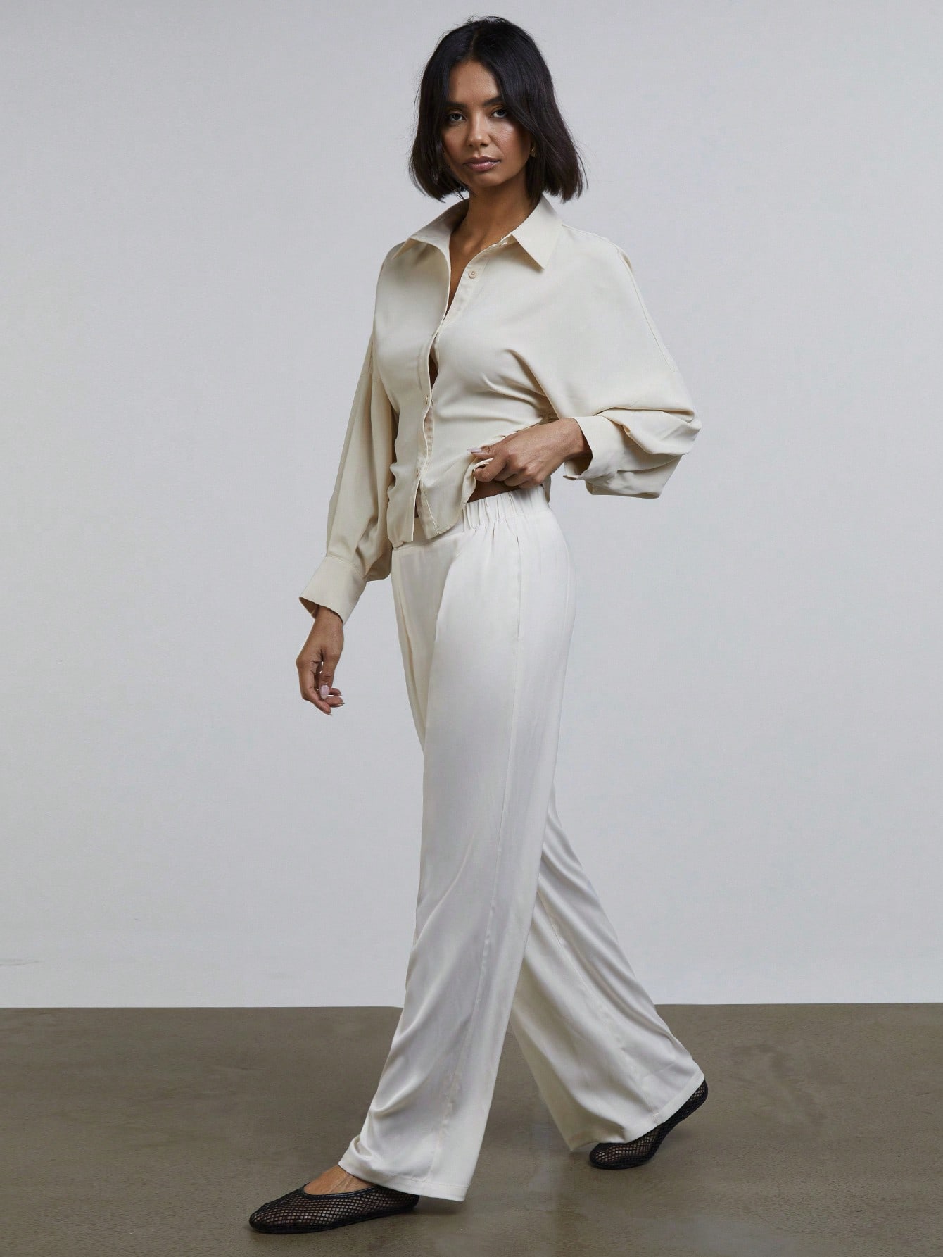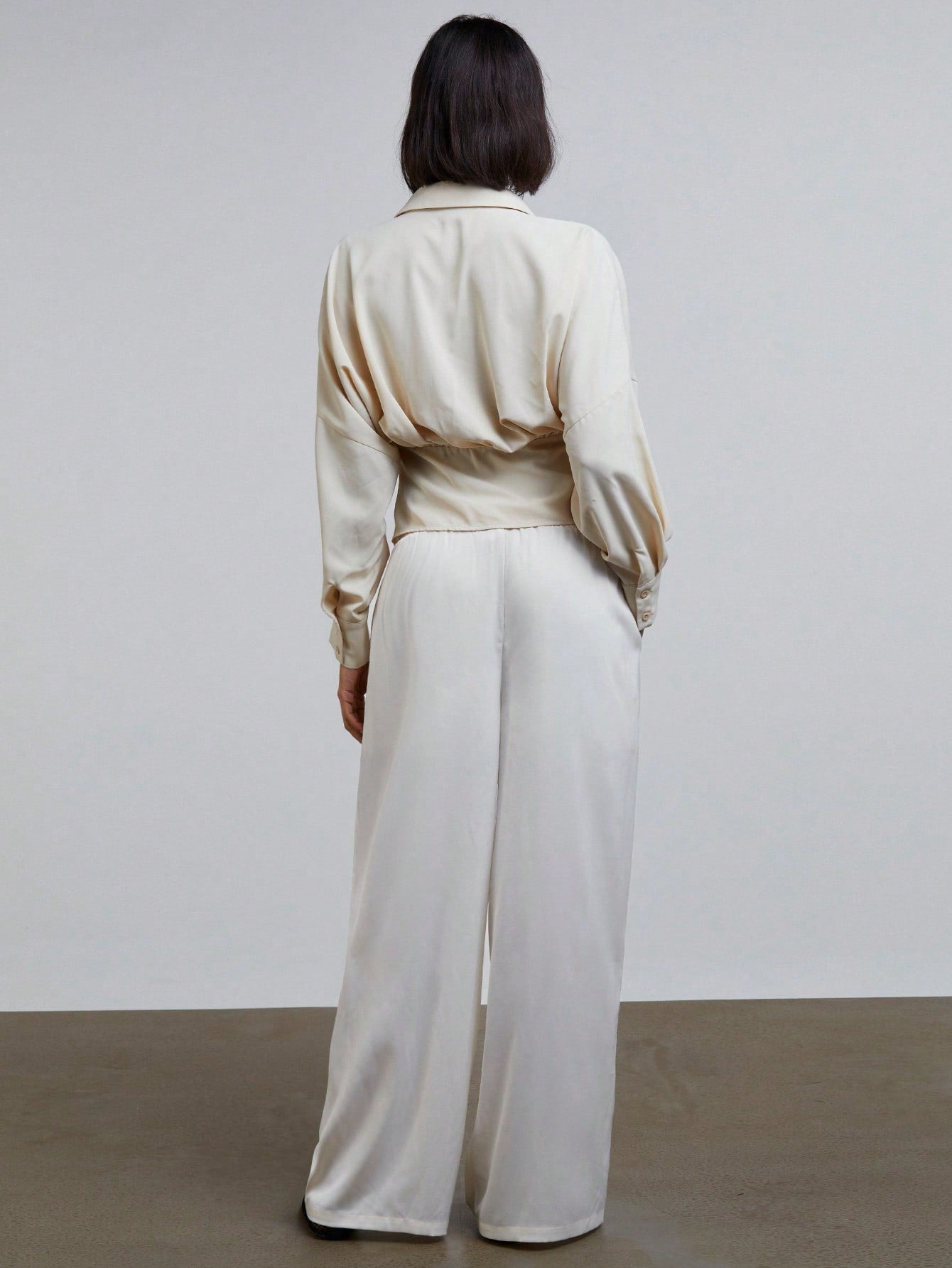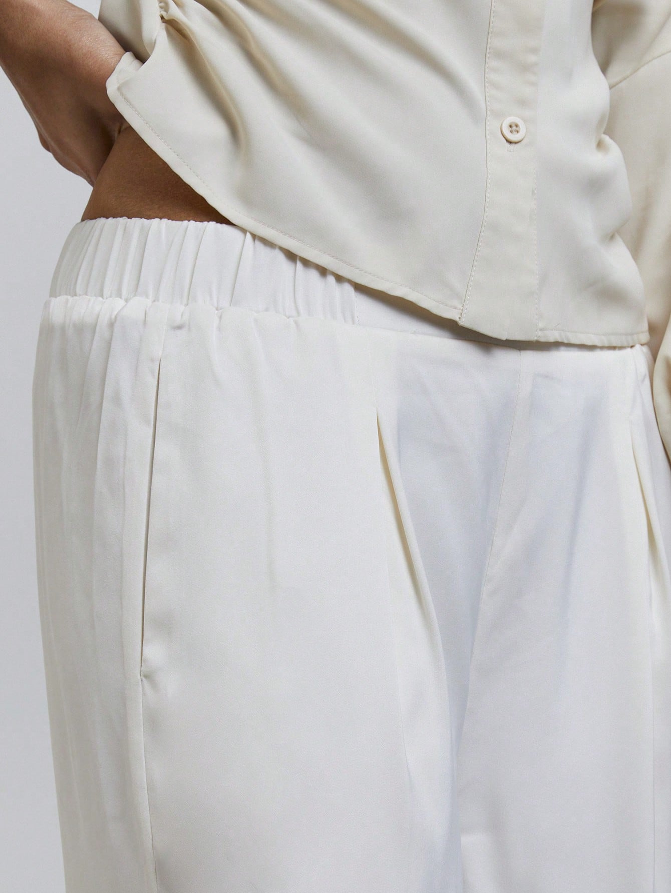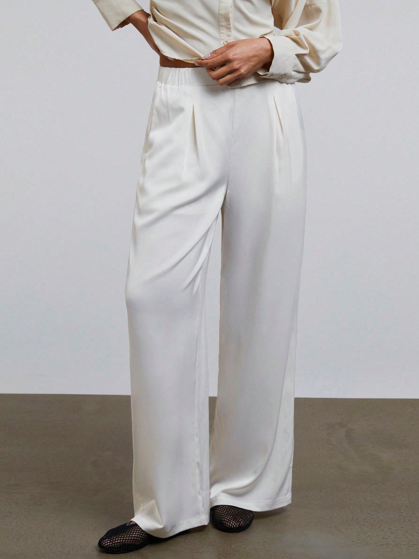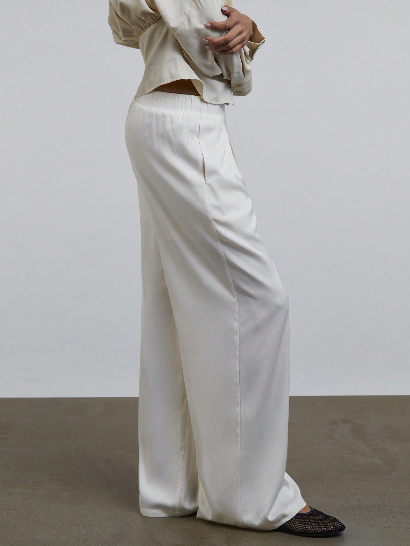 Athal Women's Satin Elastic Waist Loose Wide Leg Trouser Pants Old Money Aesthetic