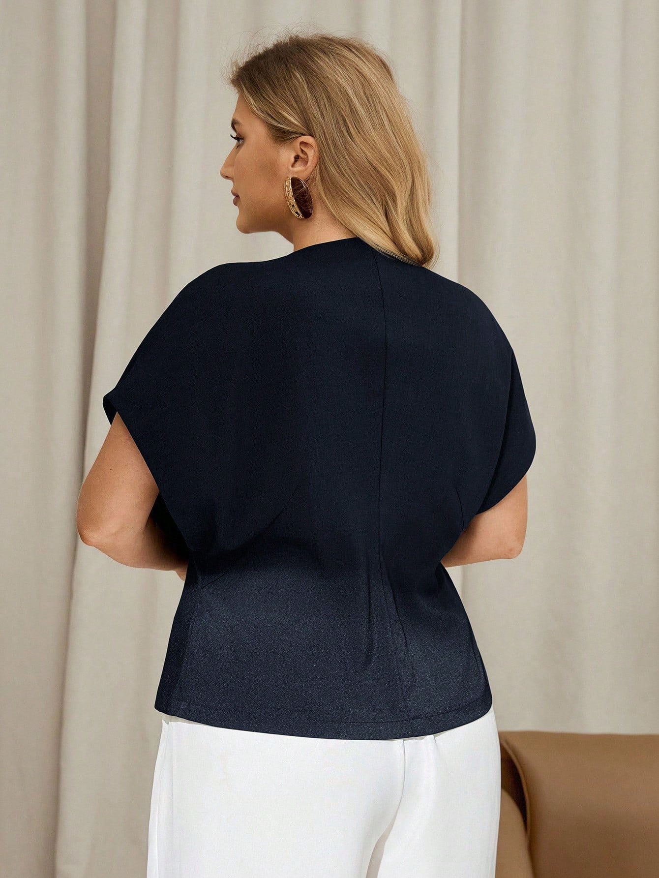 Auralis Plus Size Summer Fashion Commuter Solid Color Asymmetric Hem Top